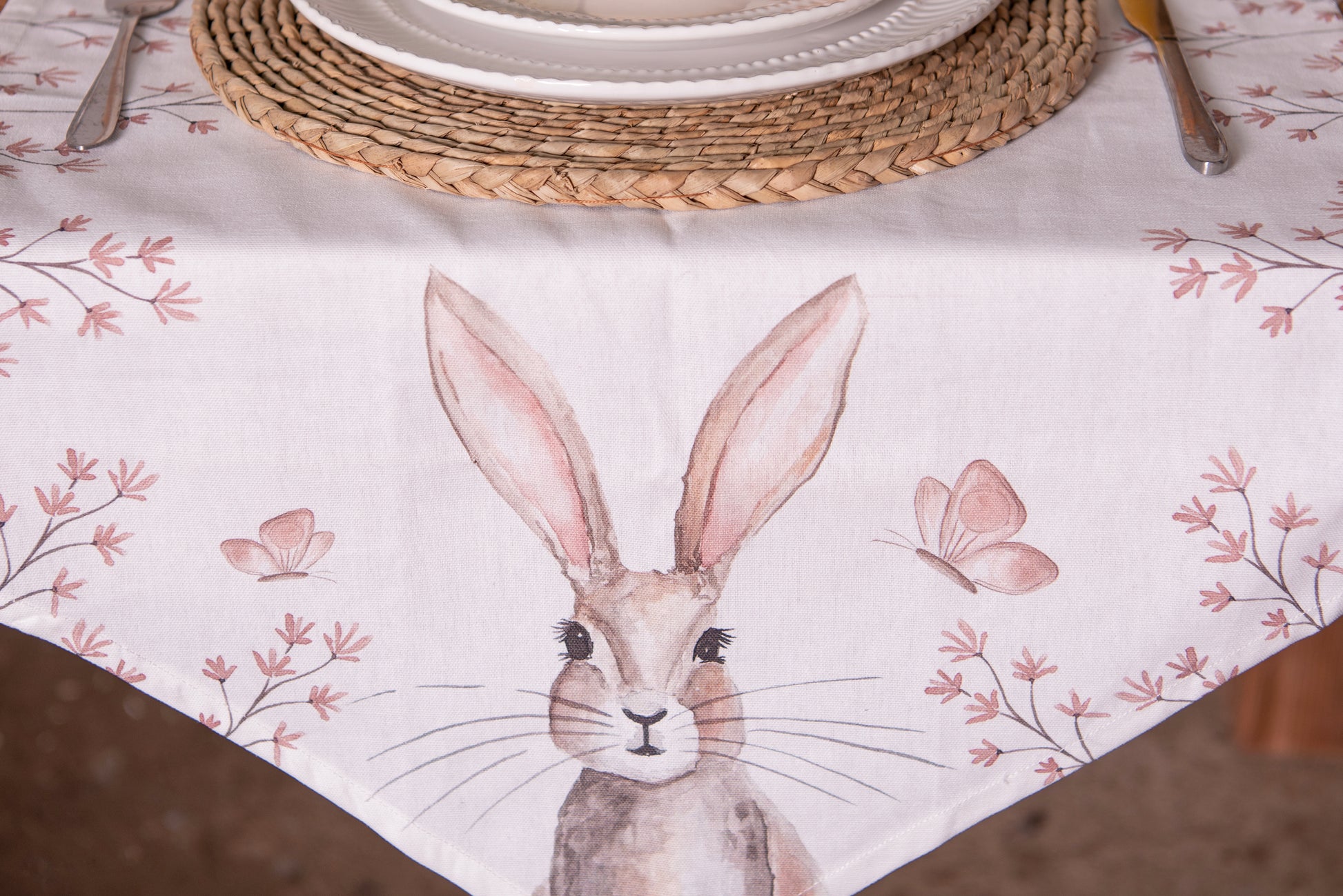 Tablecloth Easter Cotton White Beige Bunny Rabbit Spring