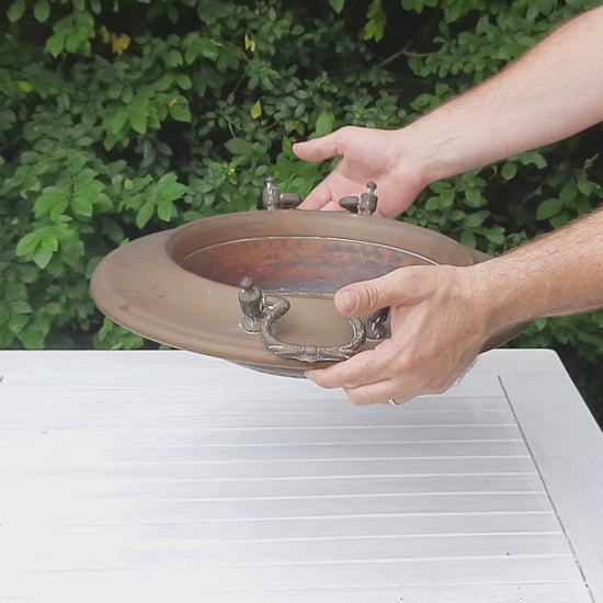 This vintage copper brazier is not only a real eye-catcher in the garden, but also corrosion-resistant and weatherproof. It easily withstands rain and sun, bringing a charming vintage look to your green oasis. A robust piece of jewelry that tells a story and adds a certain something to any garden, making it ideal for use in a variety of weather conditions.