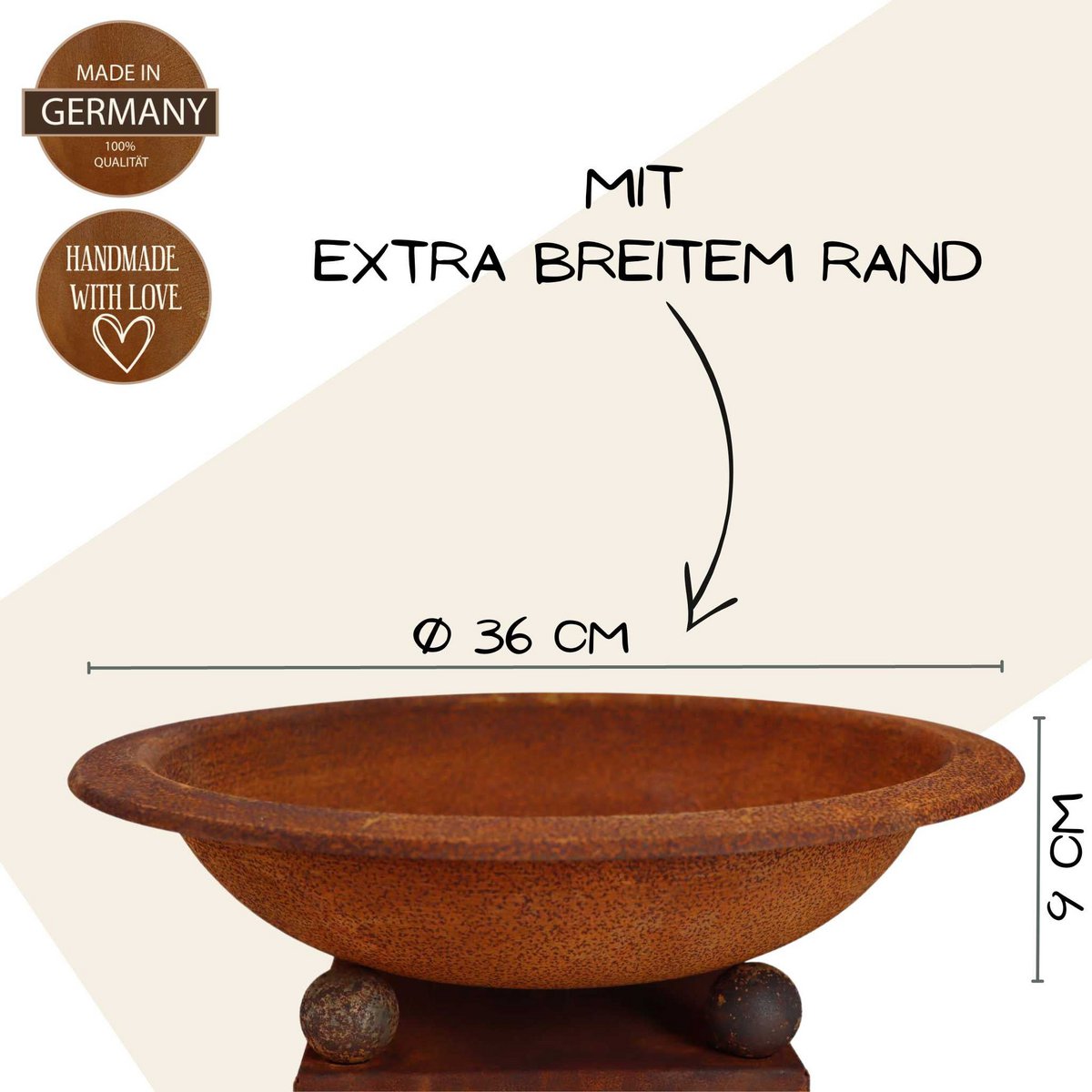• 𝗥𝗼𝘀𝘁𝗽𝗿𝗼𝗱𝘂𝗸𝘁𝗲: Diese Produkte sind Naturprodukte und entwickeln sich im Laufe der Zeit weiter. Eine Reinigung ist in der Regel nicht erforderlich, da der Rost ein natürlicher Prozess ist, der dem Produkt seinen einzigartigen Charakter verleiht.