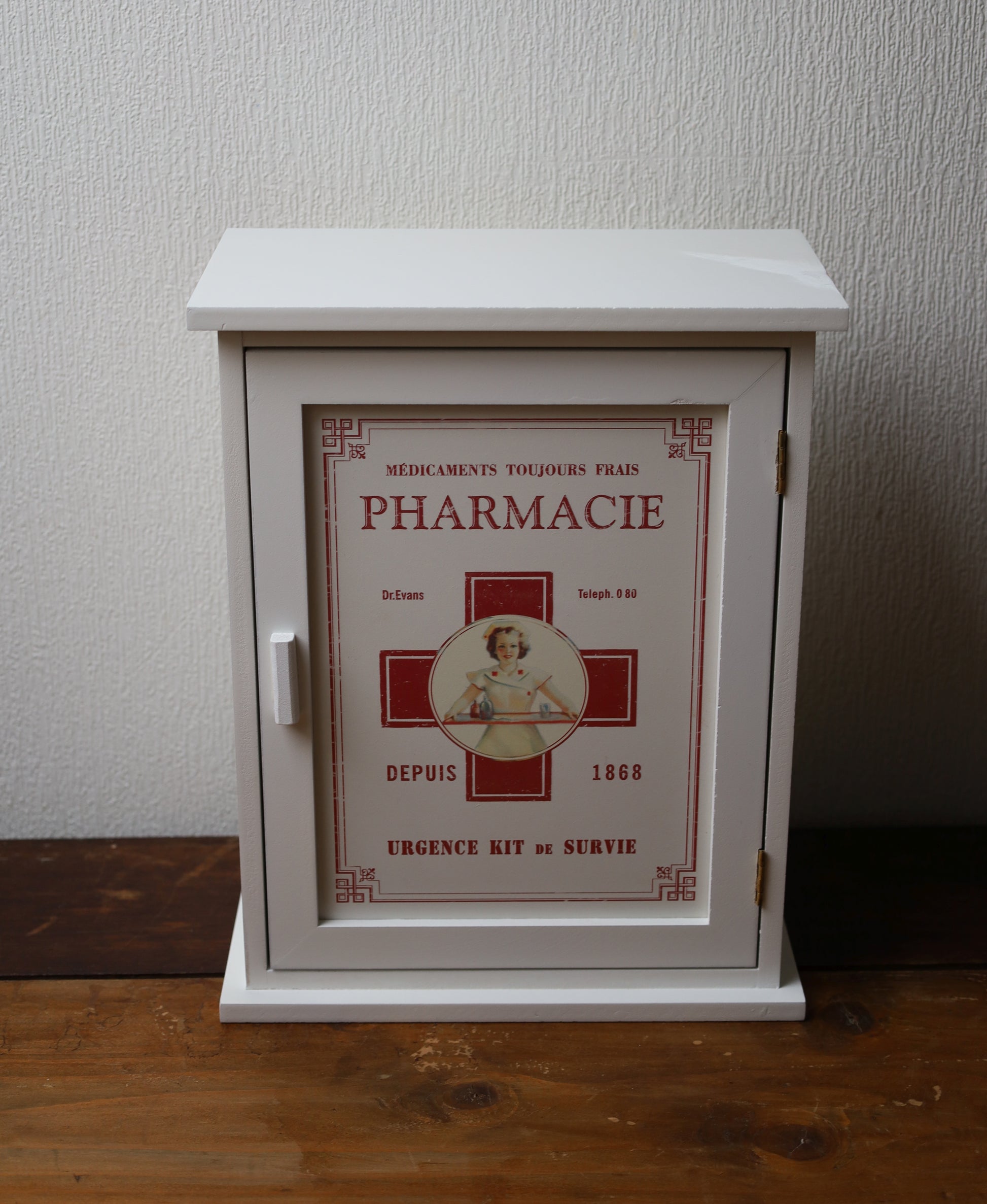 Wooden medicine cabinet, white and red - vintage apothecary cabinet, country style