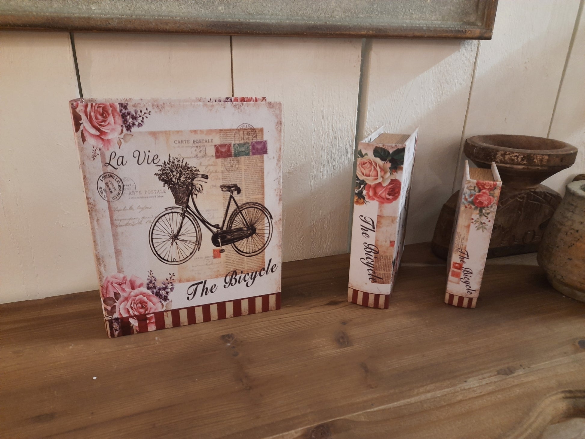 Drei elegante Aufbewahrungsboxen im Buch-Design für zeitlose Ordnung. Die gestaffelten Größen (27, 22 und 17 cm) passen perfekt ineinander und nutzen jeden Platz effizient. Jede Box zeigt romantische, nostalgische Motive – ideal zum Verstauen von Kleinteilen, Erinnerungen oder Dekoration. Hochwertige Verarbeitung trifft auf charmantes Vintage-Flair. Ein praktisches Set, das sich harmonisch in jeden Cottage- und Shabby-Chic-Raum einfügt.