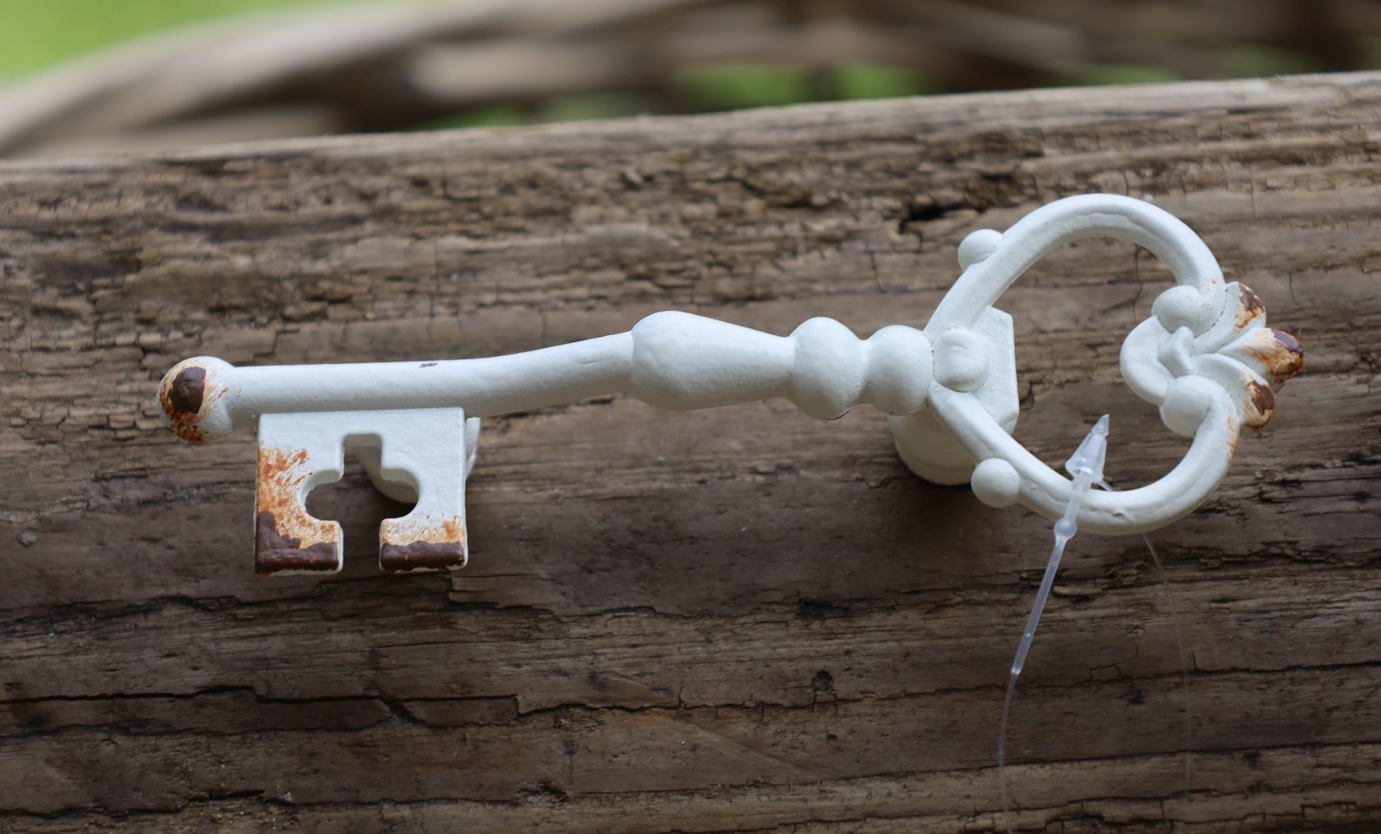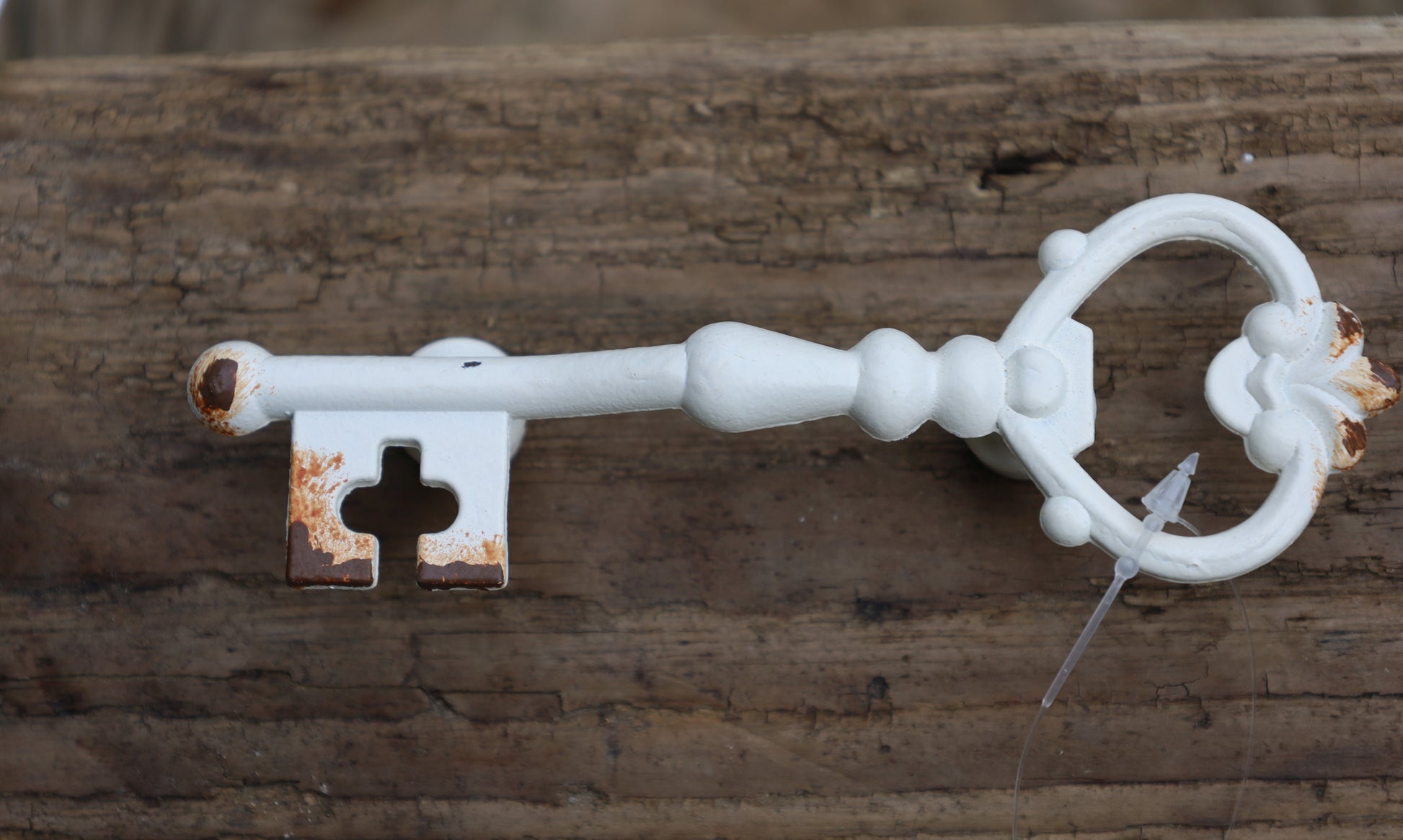 Vintage Möbelknauf Schlüssel - Shabby Chic Schubladengriff Weiß