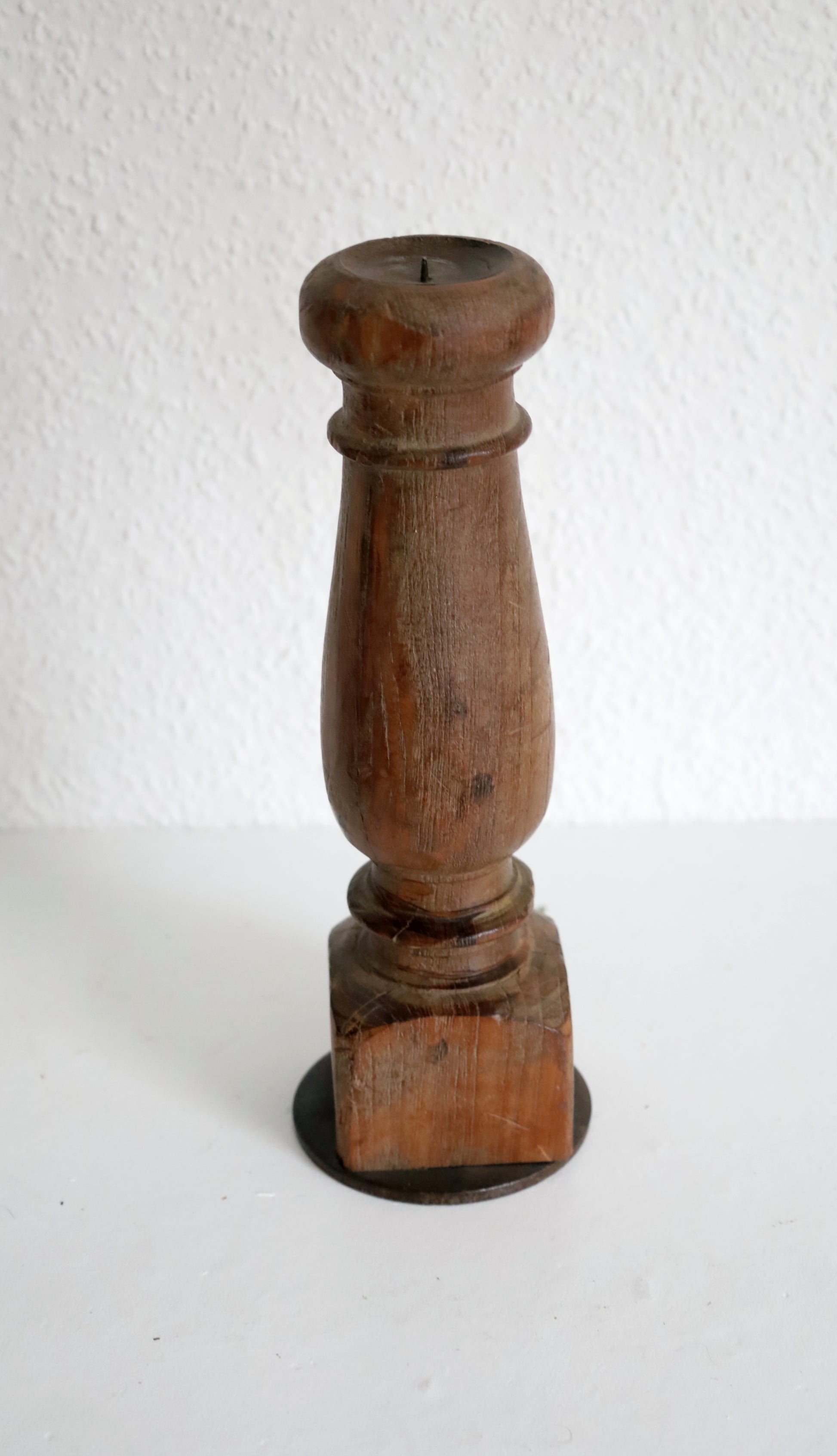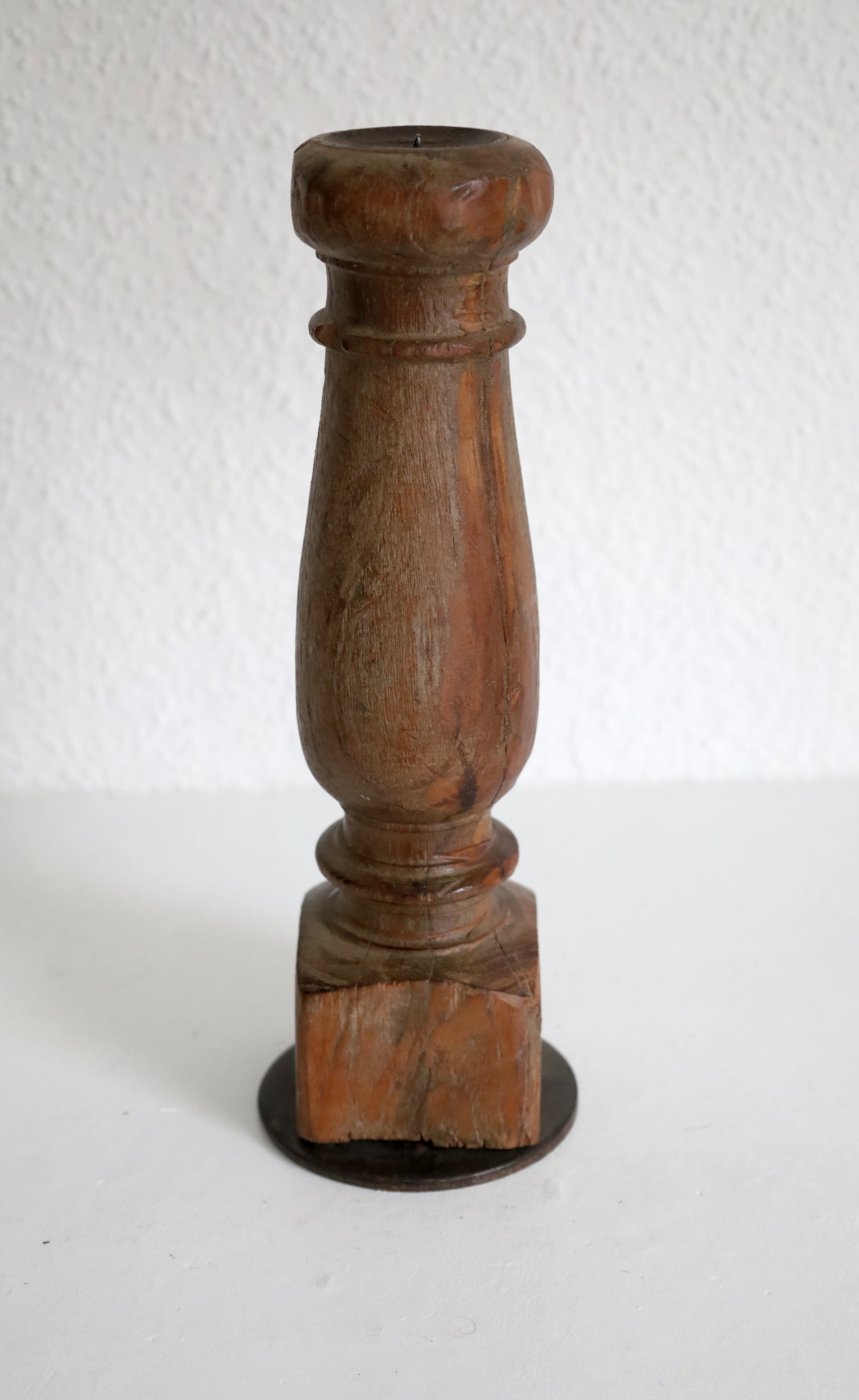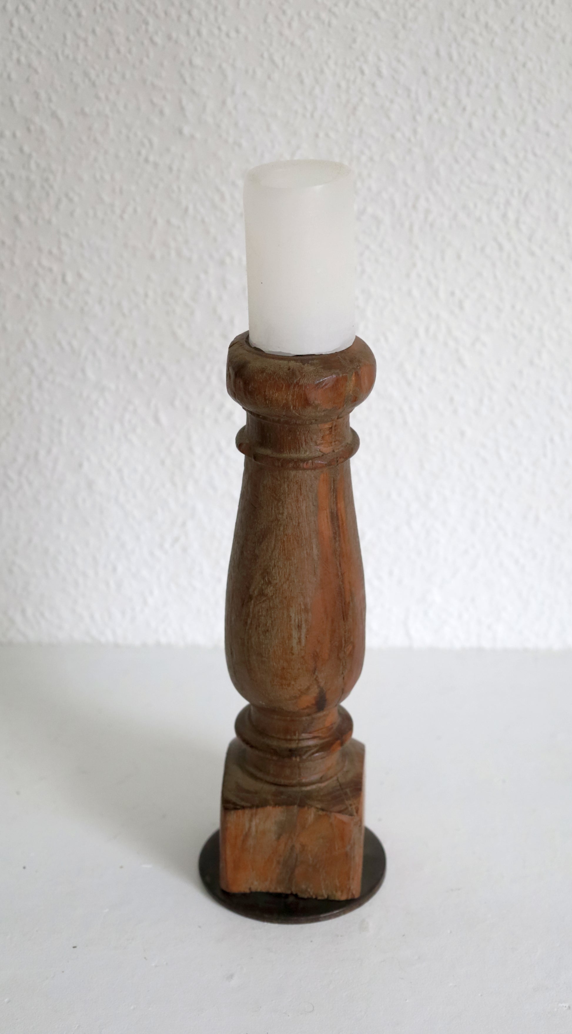 Dieser exklusive Kerzenhalter ist aus einem historischen Zierbalken oder Zierpfosten gefertigt und jedes Stück ein unverwechselbares Einzelstück. Mit einer Höhe von etwa 30 cm ist er ideal für Stumpenkerzen mit einem Durchmesser von bis zu 5 cm. Ein edles Dekorationsobjekt, das Wärme und Charakter in jeden Raum bringt.