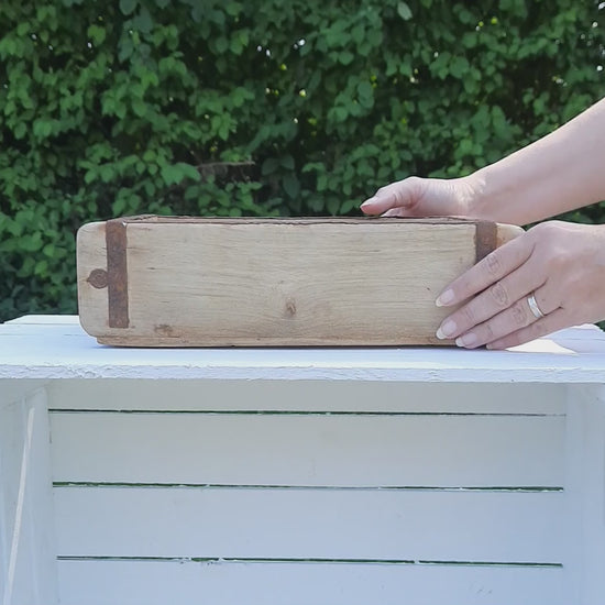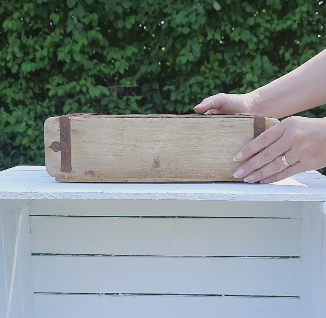 Diese alte, rustikale Ziegelform aus Holz bringt authentischen Vintage-Charme in Ihr Zuhause. Mit den Maßen 30 x 15 x 10 cm ist sie vielseitig einsetzbar – nutzen Sie sie als dekoratives Wandregal, praktische Ablage für Früchte und Kerzen oder stilvolle Ordnungsbox im Bad für Seifen und Gästehandtücher. Jede Holzkiste erzählt ihre eigene Geschichte und verleiht Ihrem Interieur eine warme, rustikale Note.