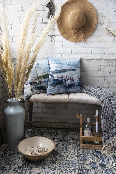 Gemütliche Baumwolldecke im klassischen Blau-Weiß-Zickzackmuster – perfekt für entspannte Stunden im Landhaus-Stil. Die hochwertige 100% Baumwolle schmiegt sich angenehm an und eignet sich ideal zum Kuscheln auf dem Sofa oder als dekoratives Element im Schlafzimmer. Mit ihrem zeitlosen Shabby-Chic-Design bringt diese Decke wärmende Gemütlichkeit und nostalgischen Charme in jedes Zuhause.