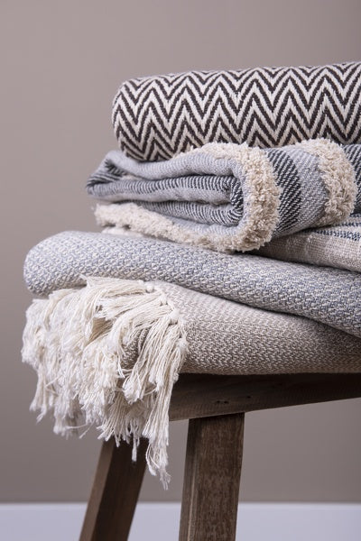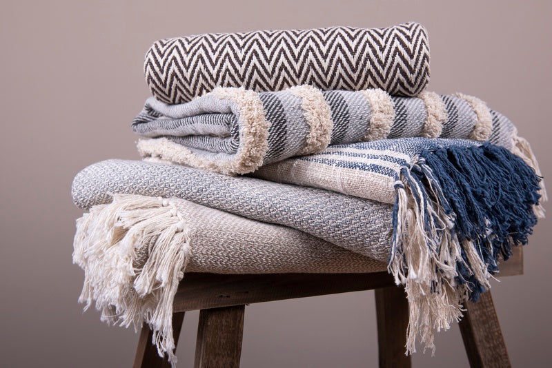 Baumwolldecke Blau-Weiß Zickzack 150x125cm - Plaid Landhausstil
