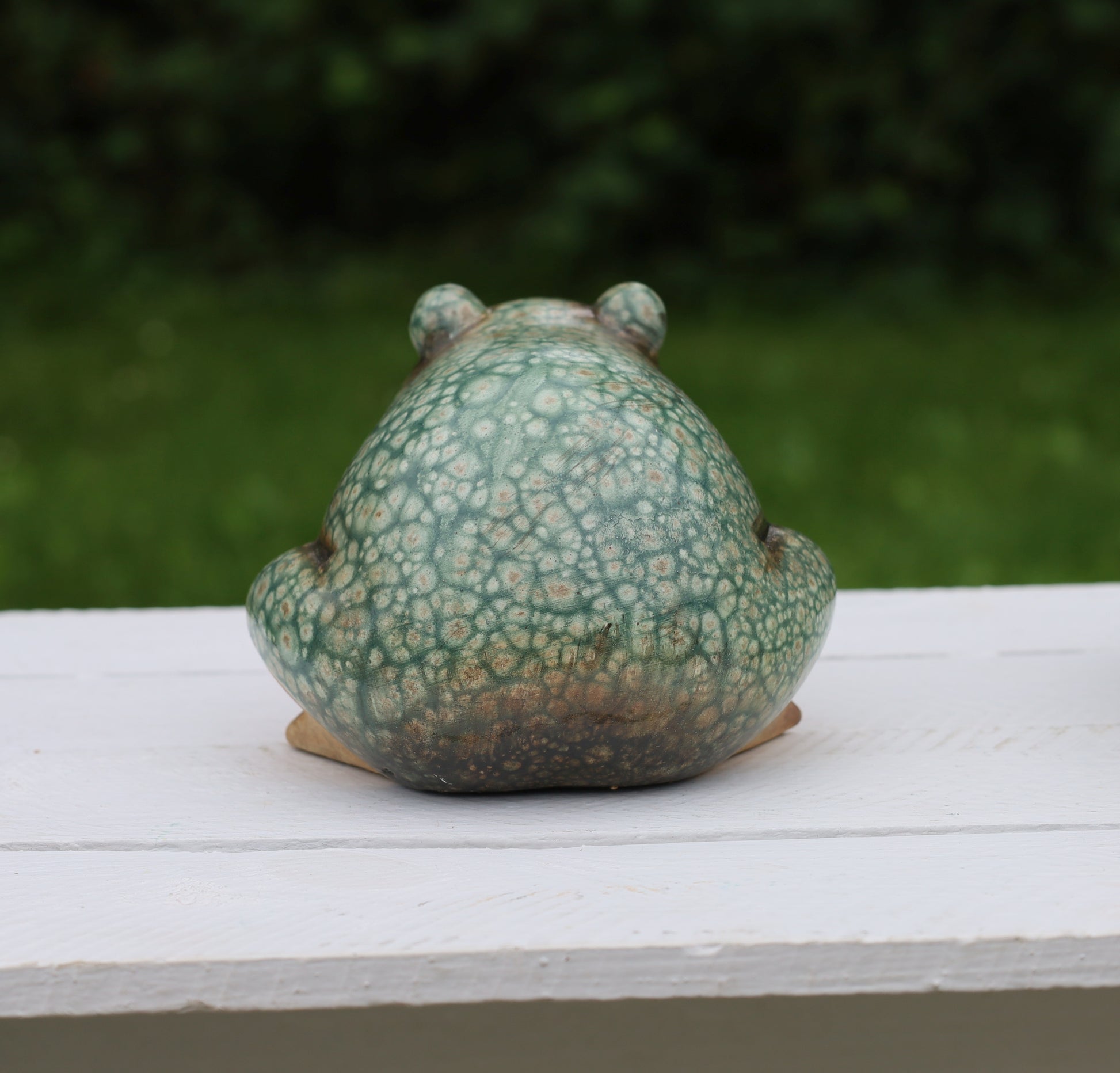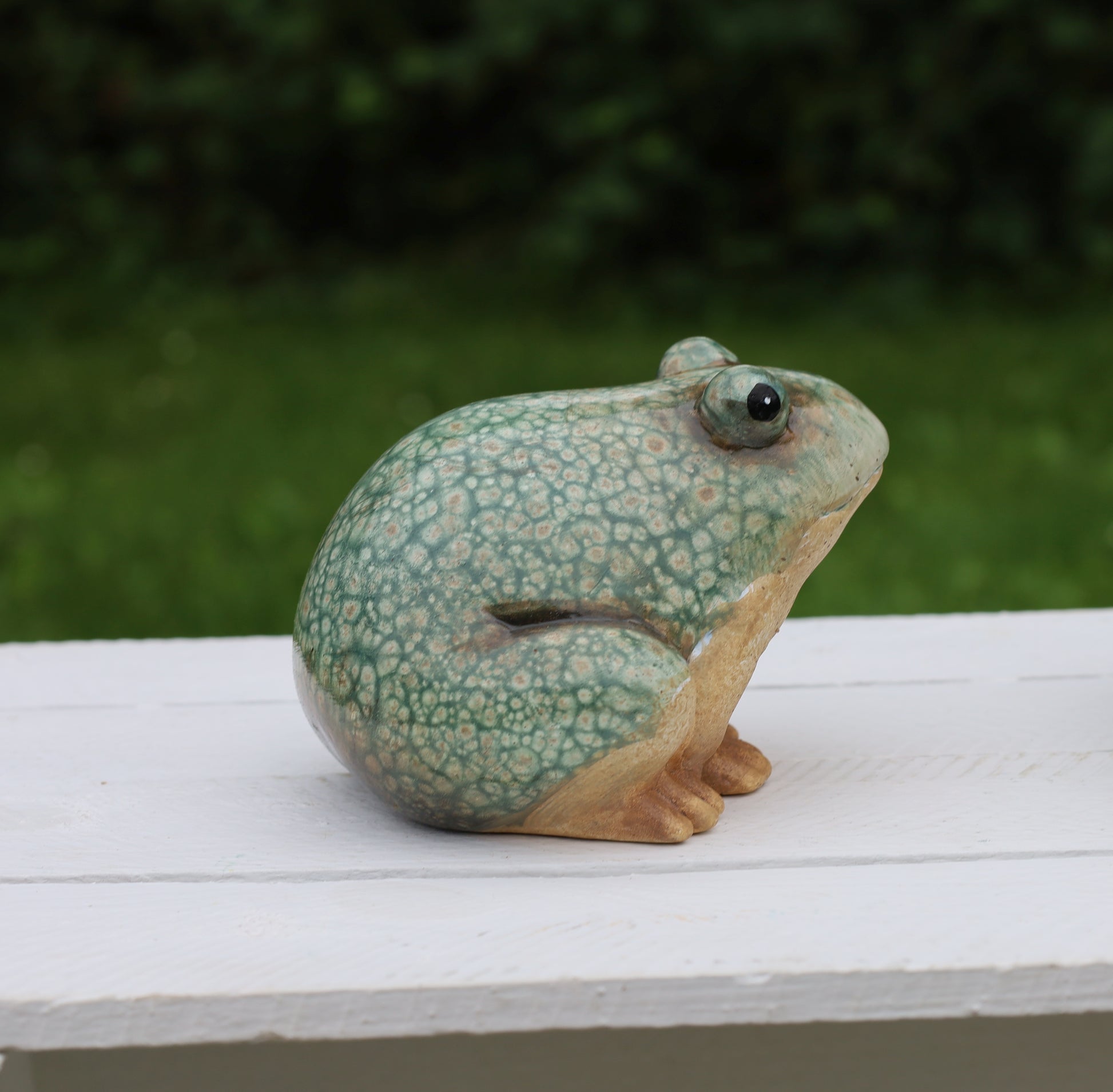Keramik Frosch Grün-Braun - Deko Figur Landhausstil für Garten & Haus