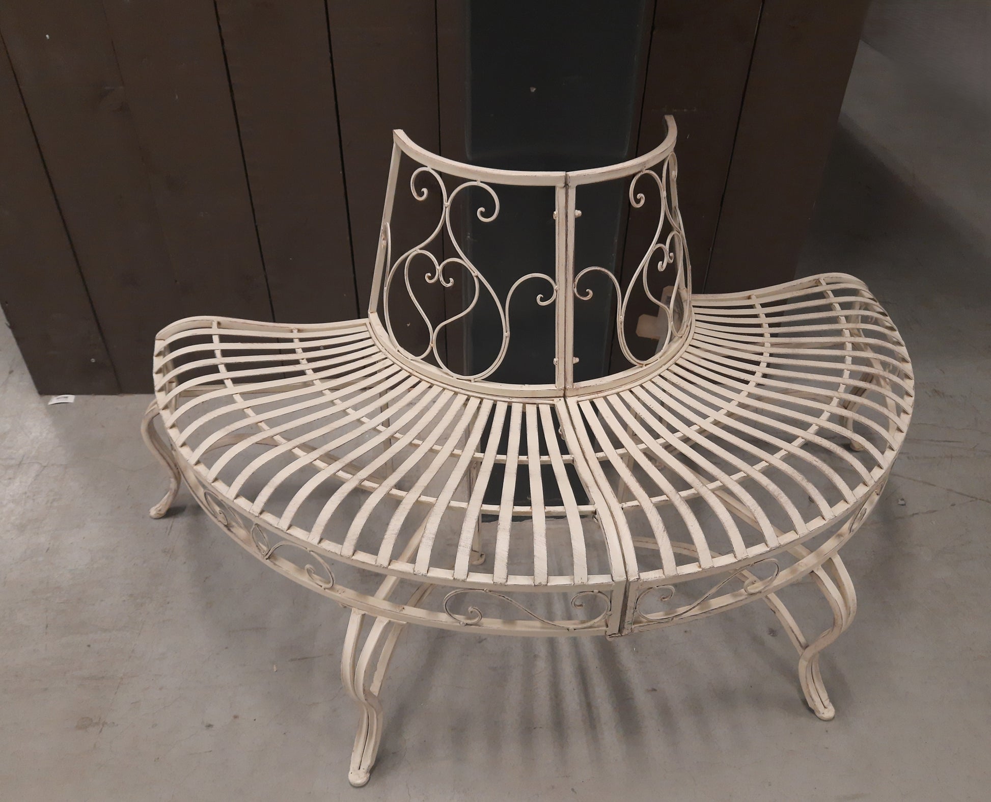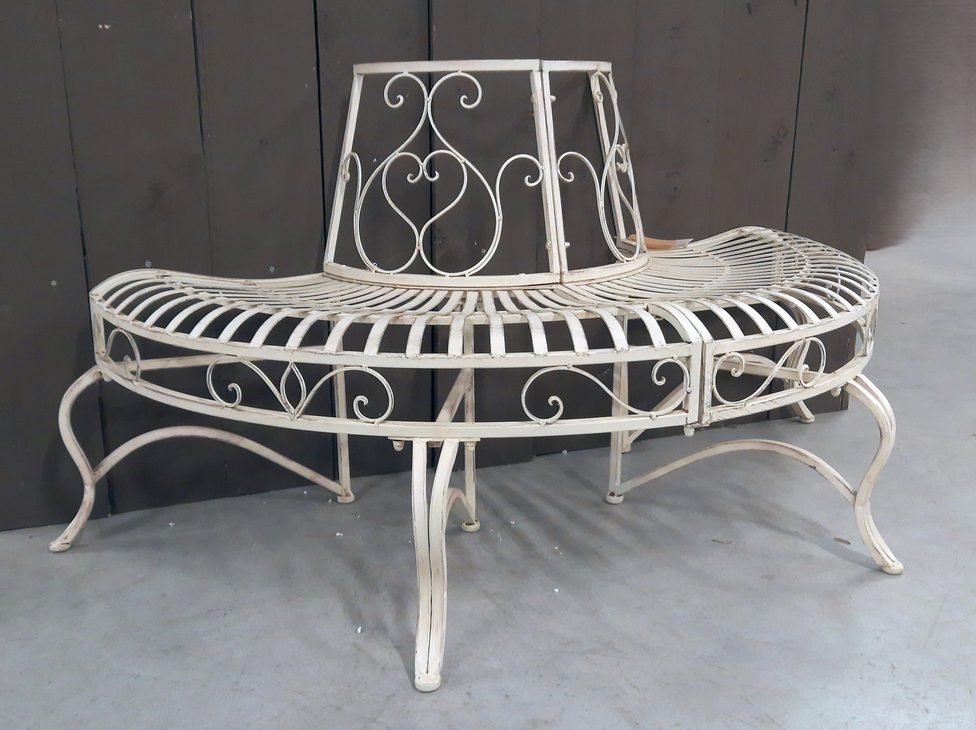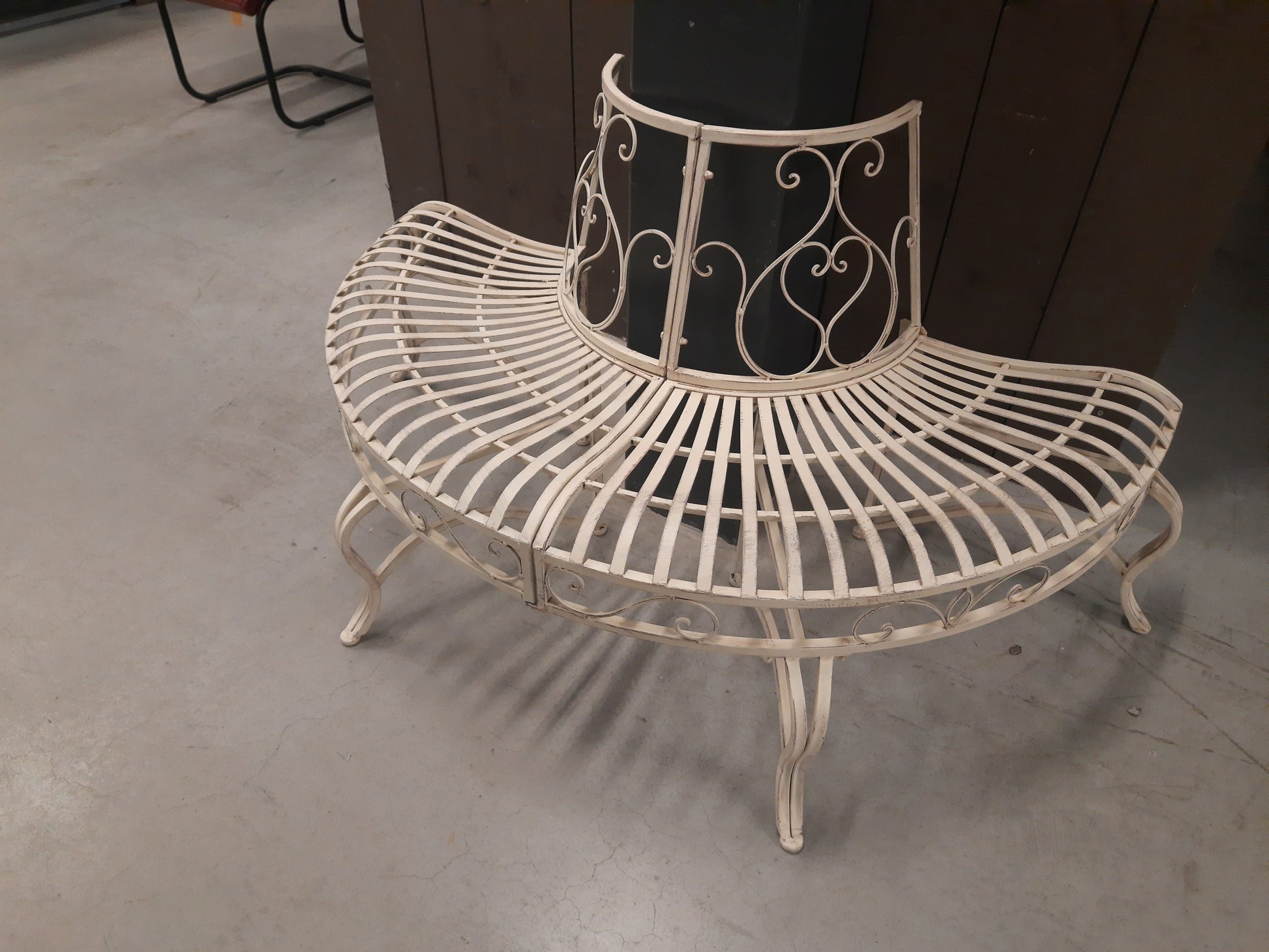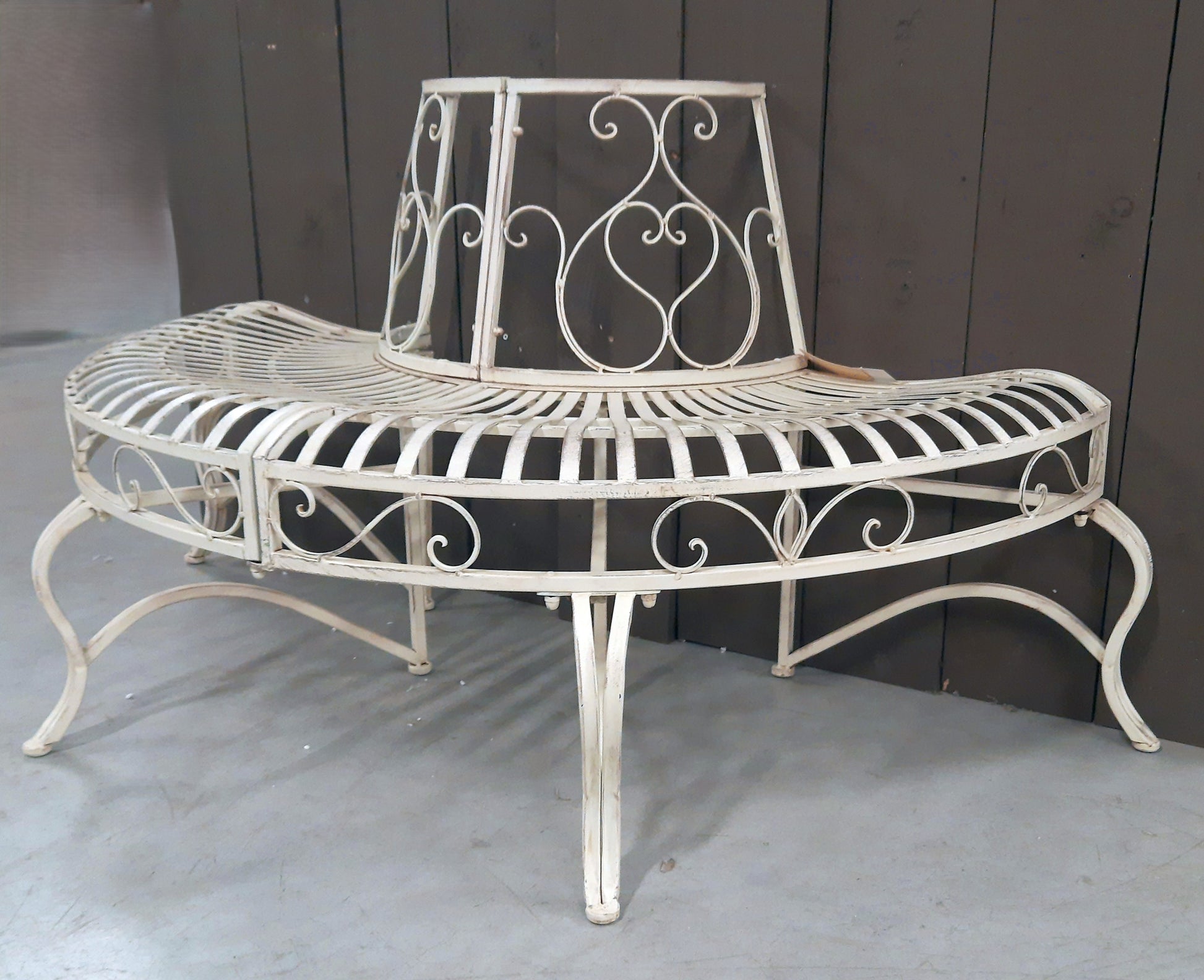 Halbrunde Baumbank Antikweiß - Gartenbank Eisen Landhausstil