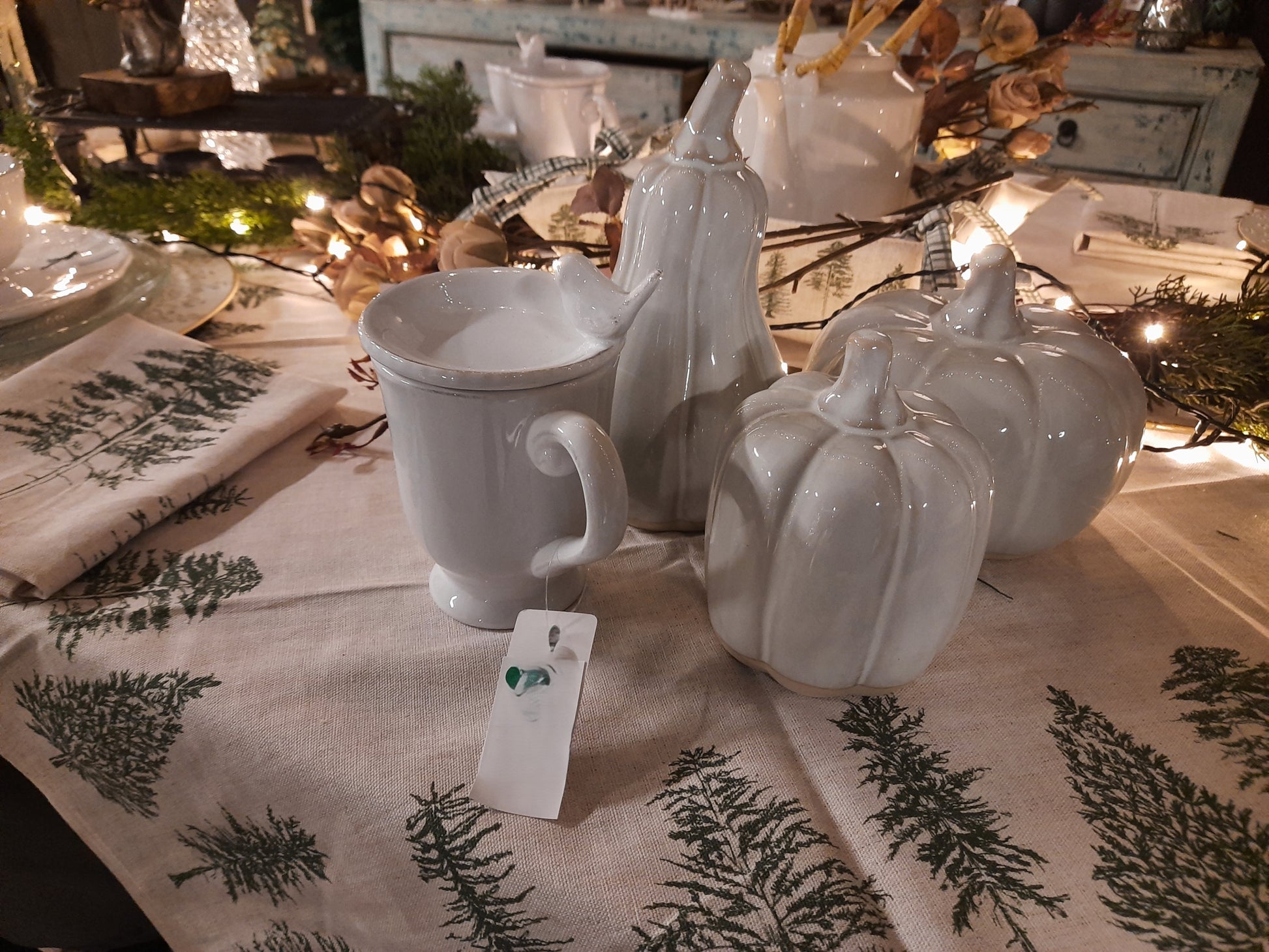 Kürbis Deko Porzellan Grau-Weiß - Herbstdekoration im Landhausstil