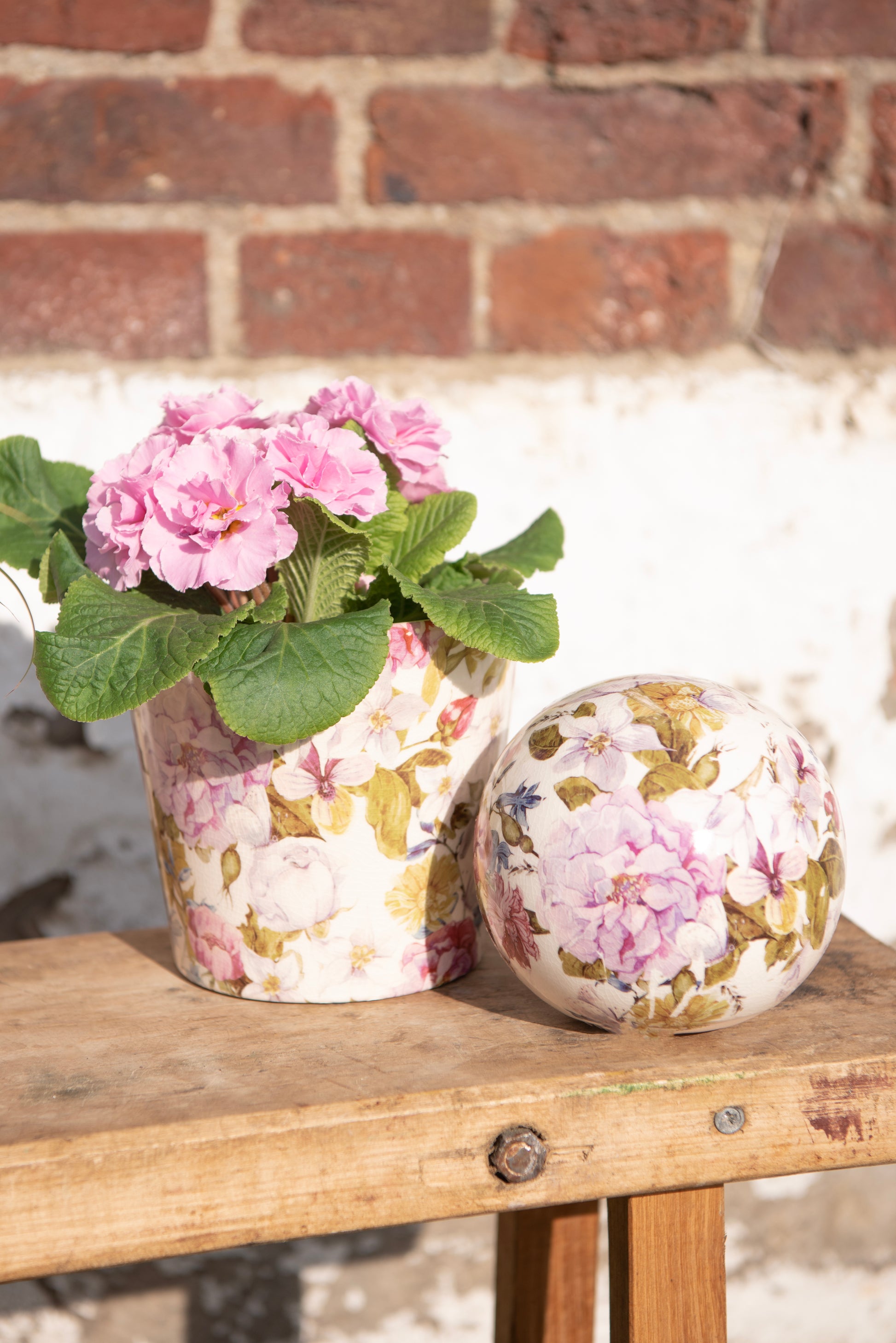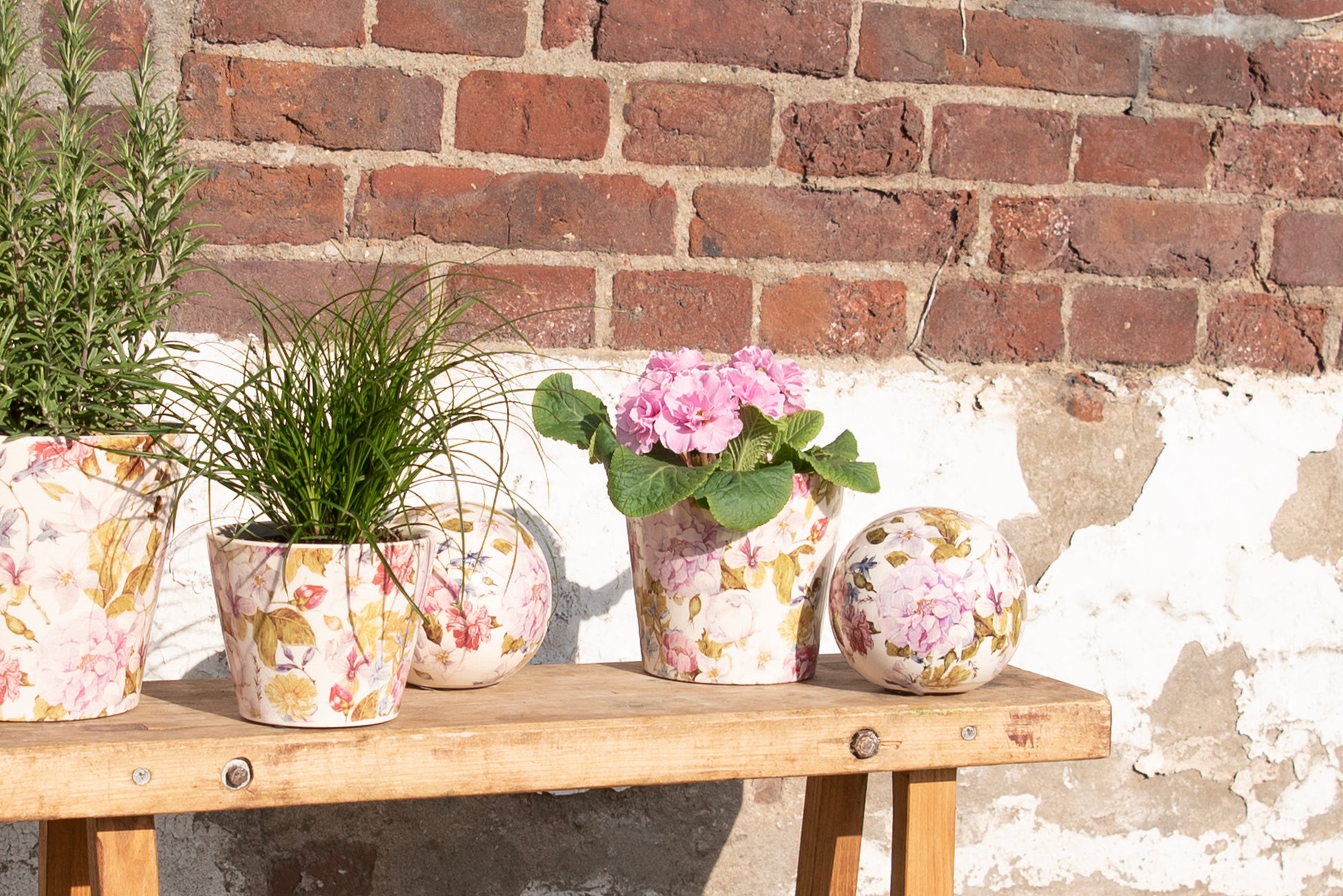 Dieser wunderbare Keramik-Blumentopf besticht durch sein verspieltes Pfingstrosenmotiv in Lila und Grün – eine sommerliche Farbkombination, die jeden Pflanzenfreund erfreut. Der hochwertige Übertopf eignet sich hervorragend für Ihre liebsten Blüher und Grünpflanzen. Mit seinem charmanten Landhaus-Design wird er zum Blickfang auf Fensterbank, Balkon oder Terrasse und verleiht Ihrer grünen Ecke einen Hauch von Nostalgie und Eleganz.