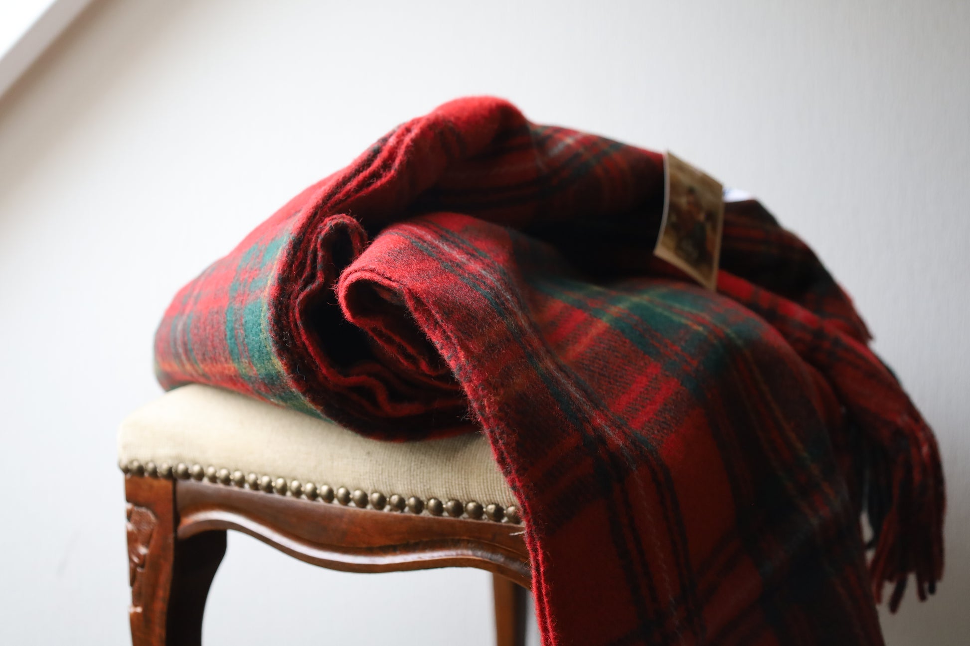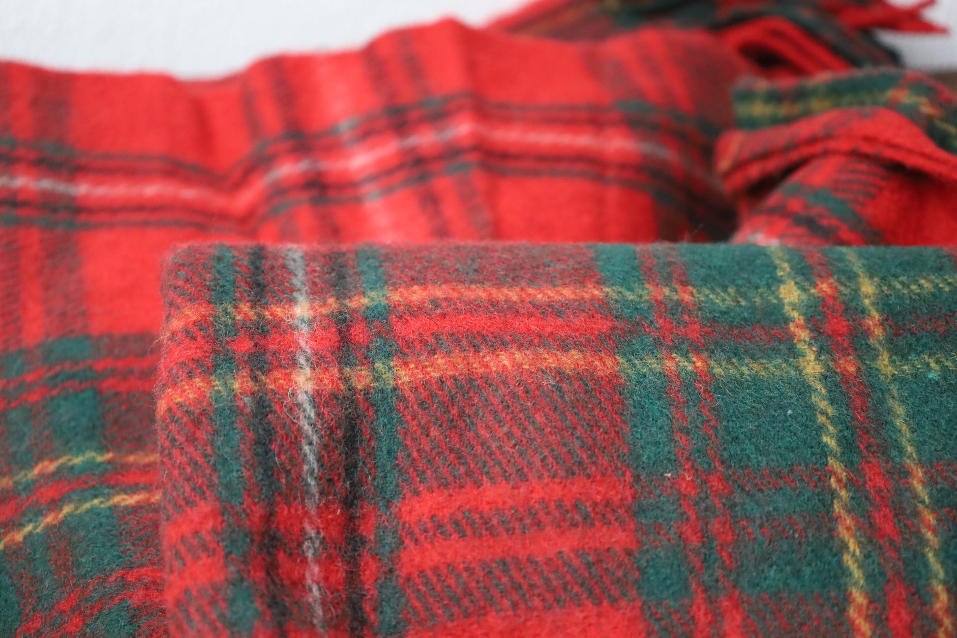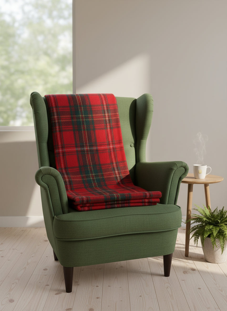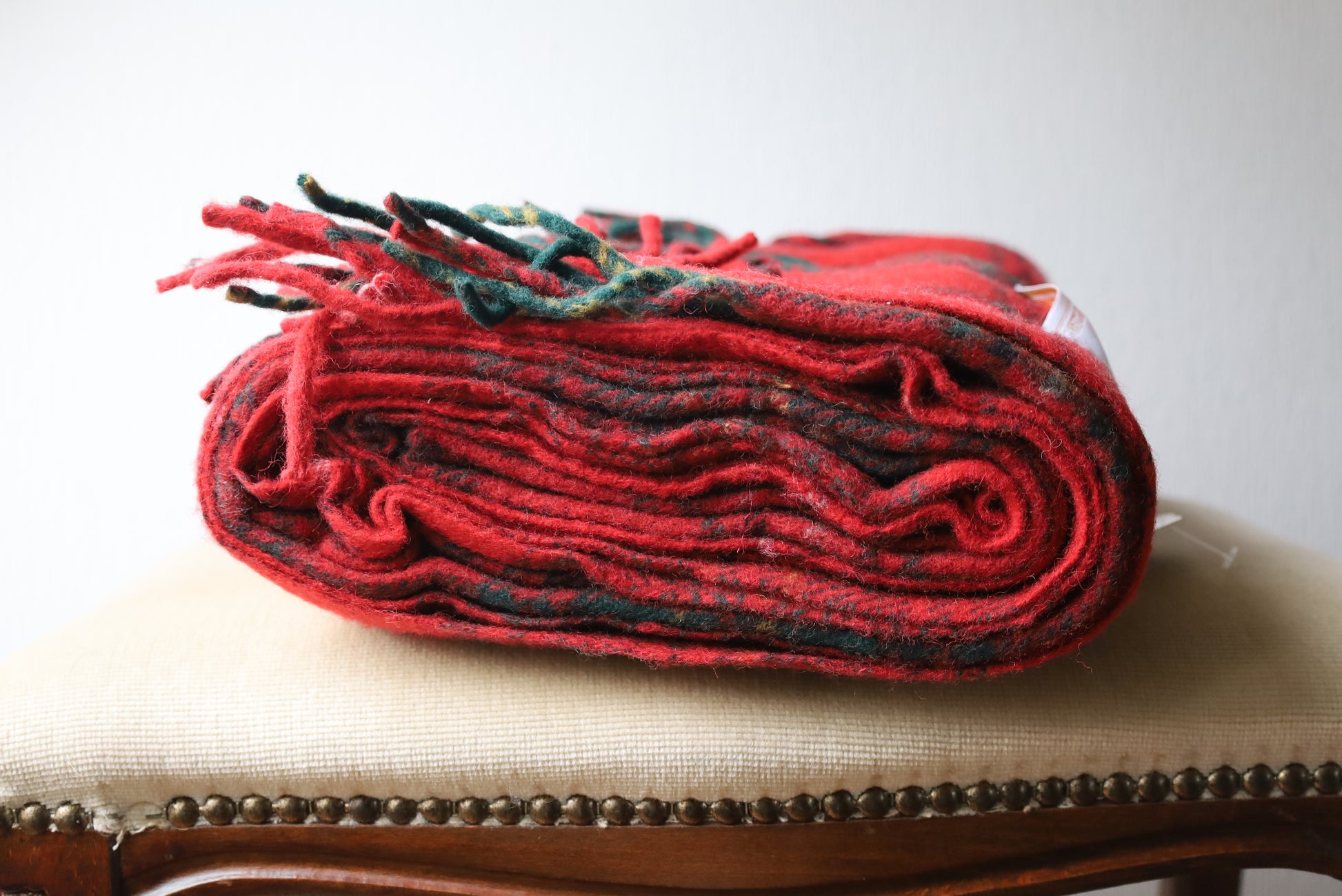 Wolldecke Schottenkaro 180x150cm - 100% Recycelte Wolle Rot/Grün