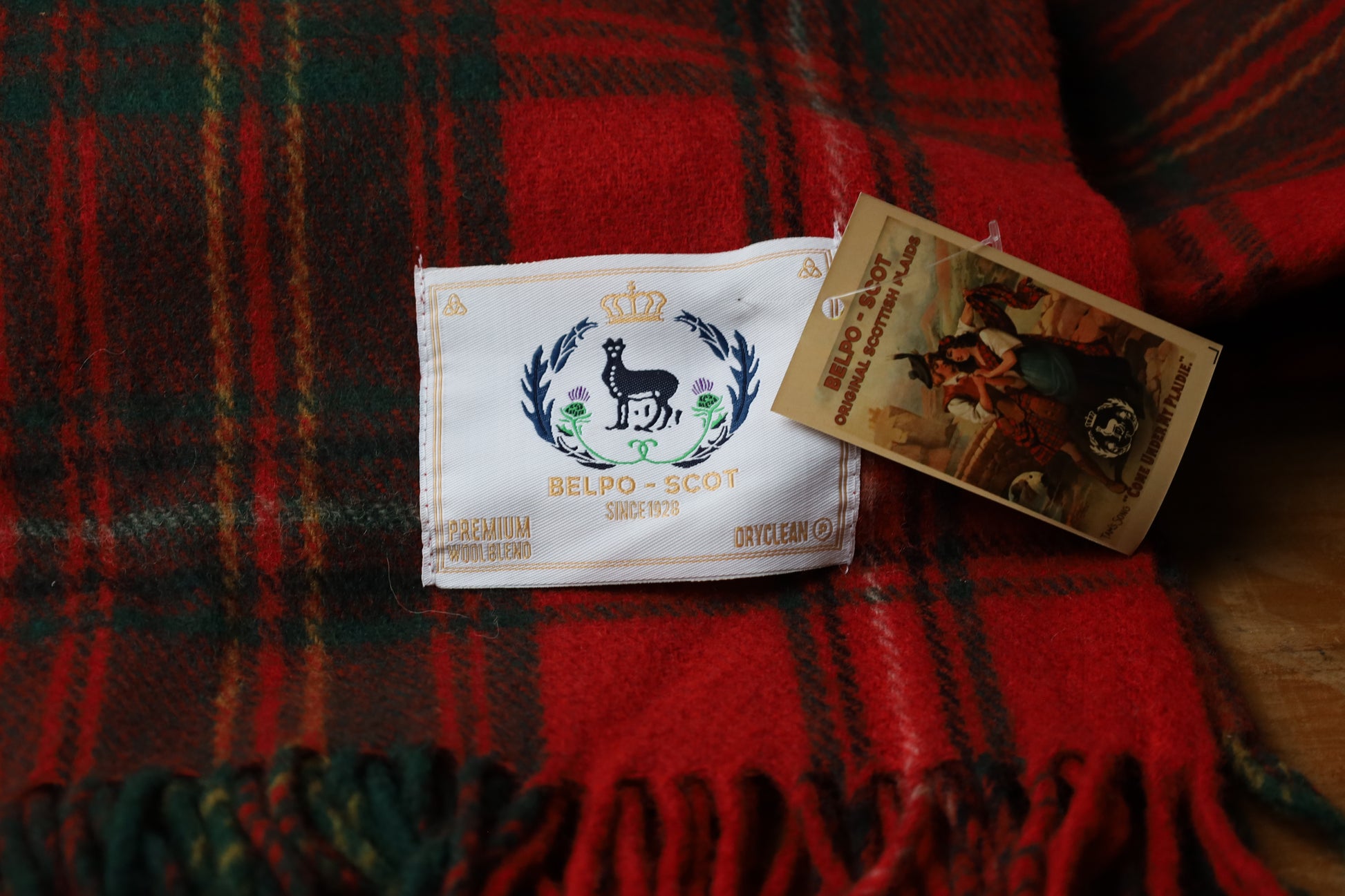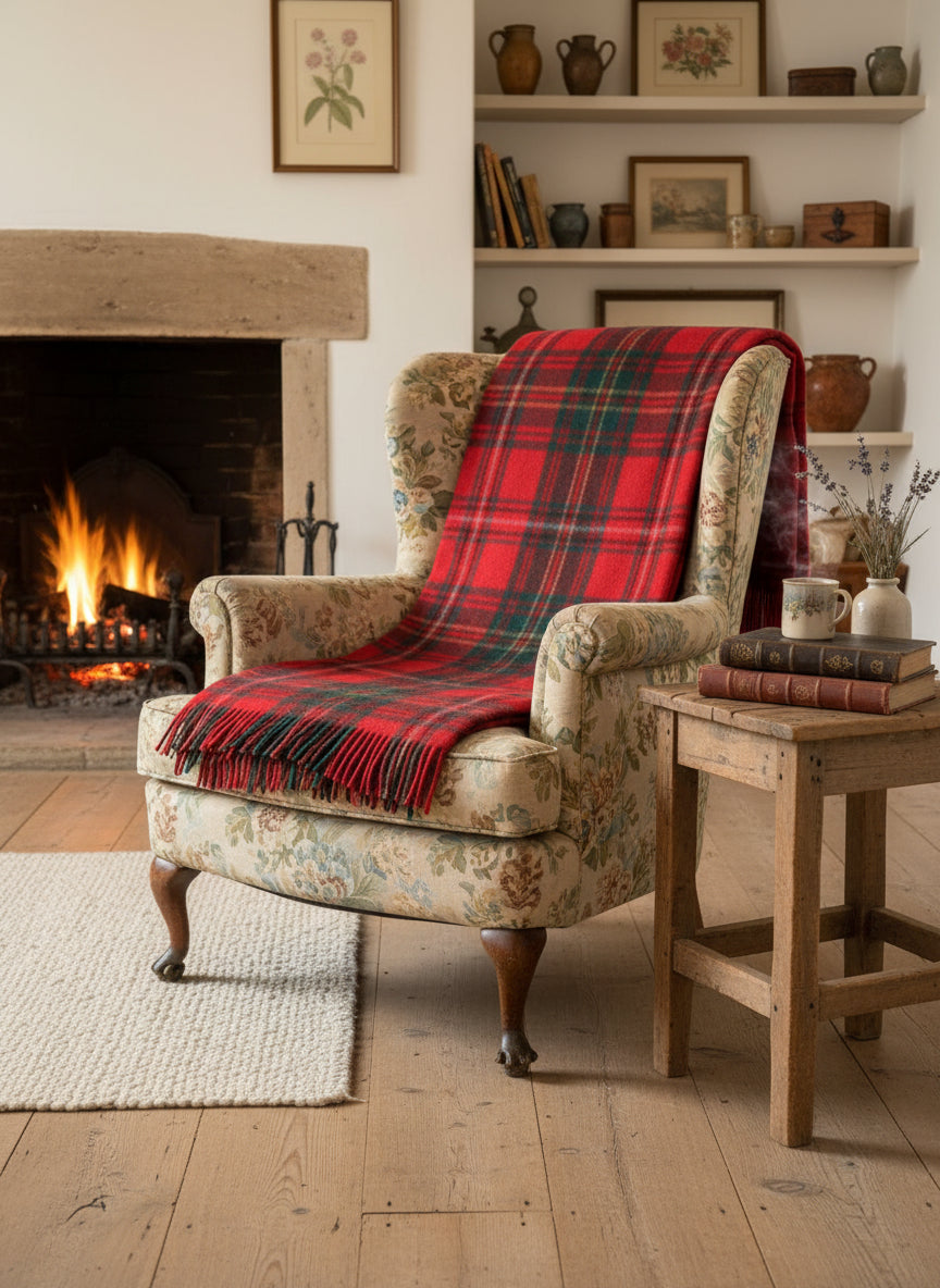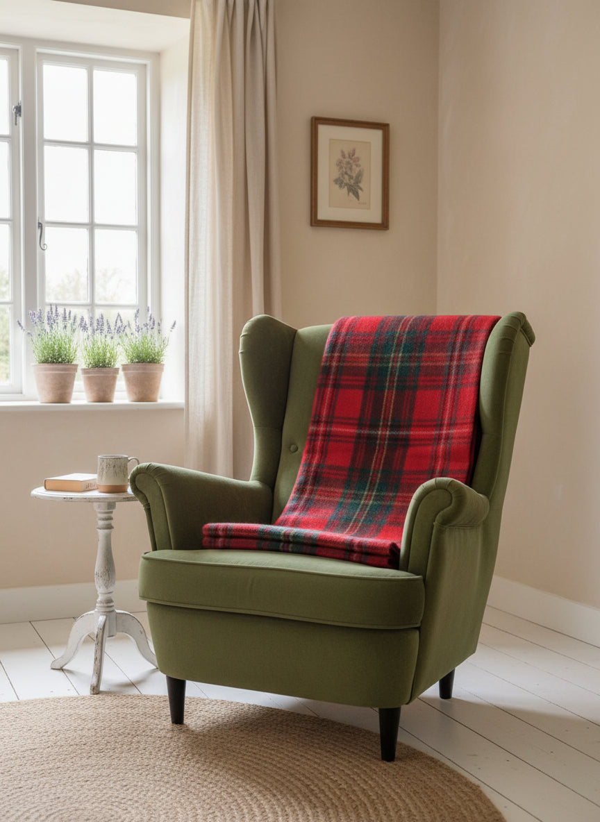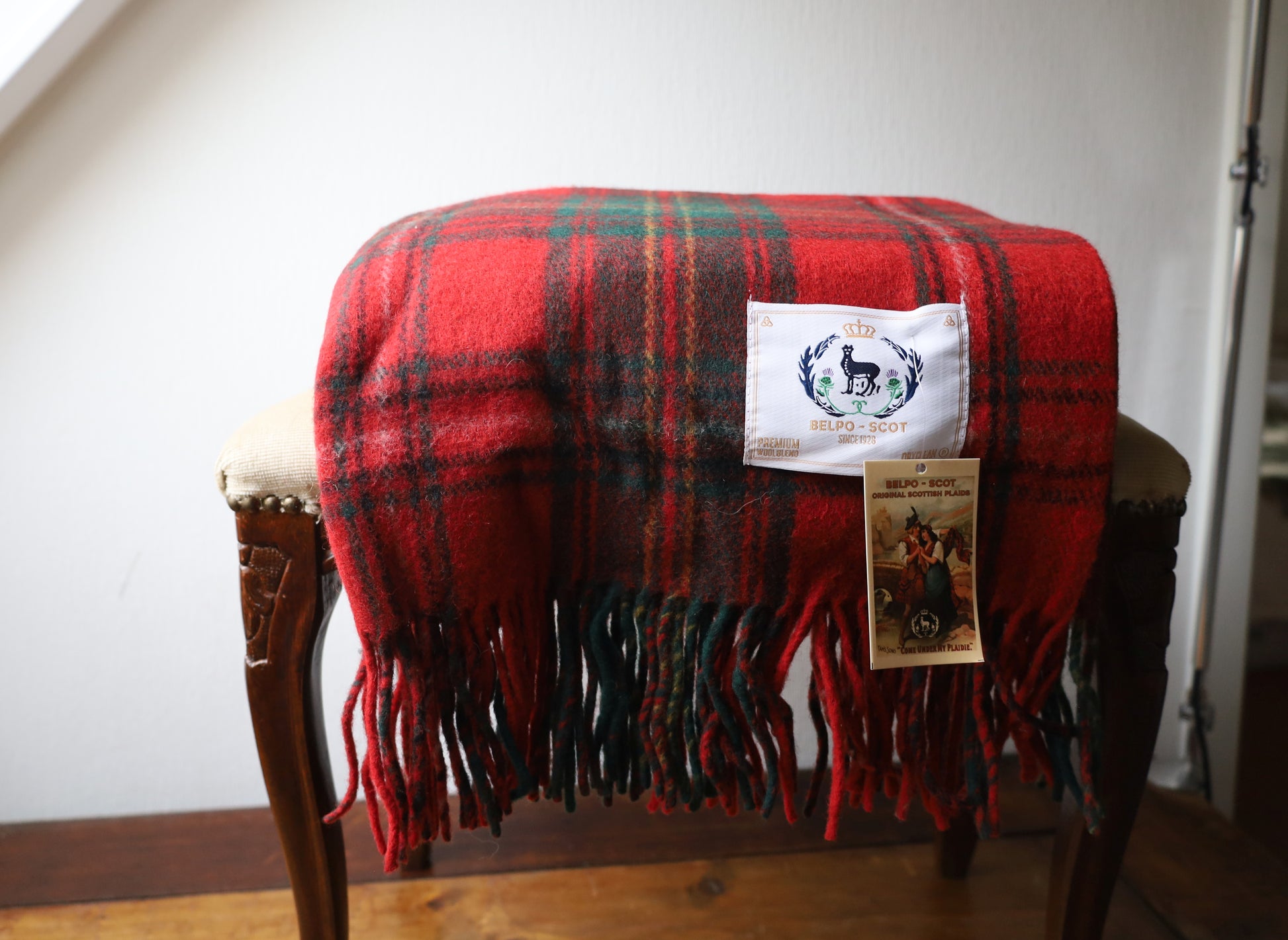 Wolldecke Schottenkaro 180x150cm - 100% Recycelte Wolle Rot/Grün