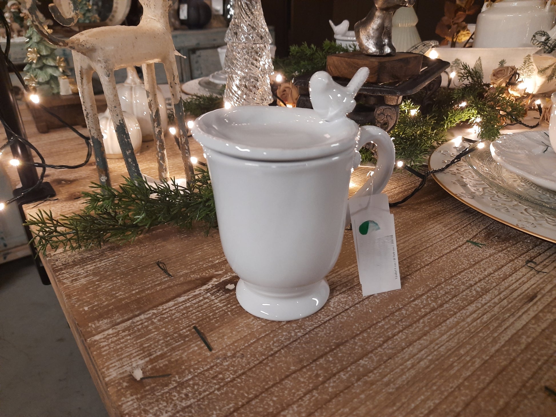 Gemütliche Teetasse aus feiner Keramik in zartem Weiß – perfekt für entspannte Teemomente in der kalten Jahreszeit. Mit praktischer Ablage für Teebeutel und passendem Deckel, um Ihren Tee länger warm zu halten. Die zierliche Vogelmotiv-Verzierung verleiht dieser 300-ml-Tasse einen charmanten, naturverbundenen Charakter. Ein wunderschönes Accessoire für gemütliche Winterabende oder als durchdachtes Geschenk für Teeliebhaber.