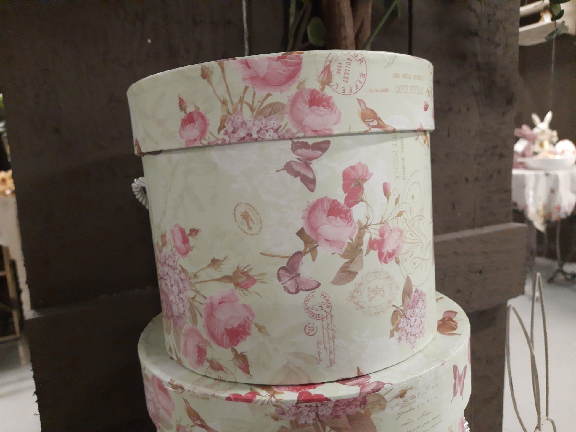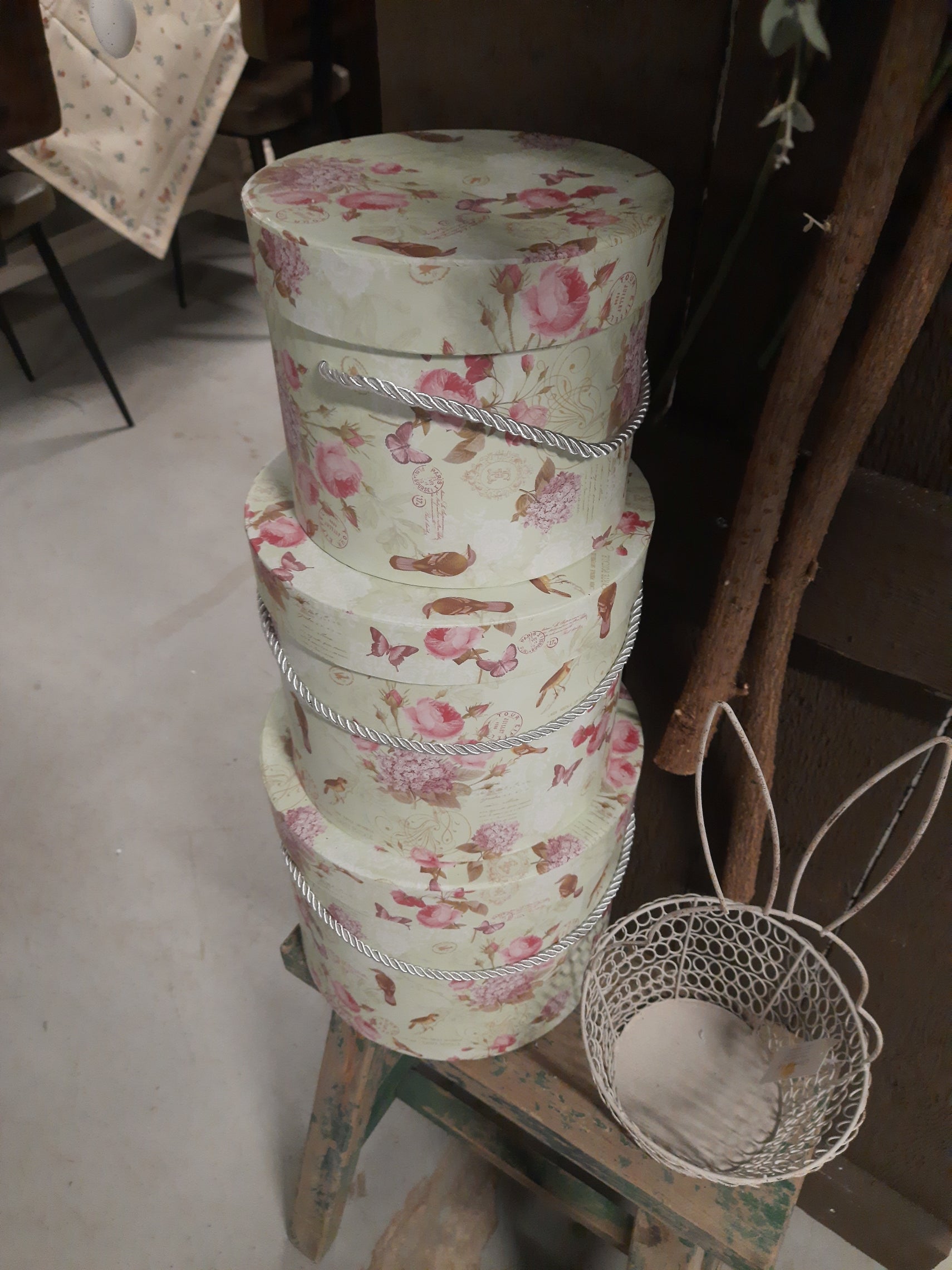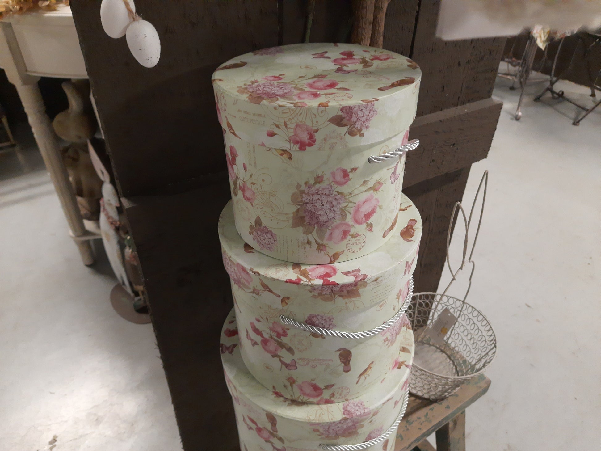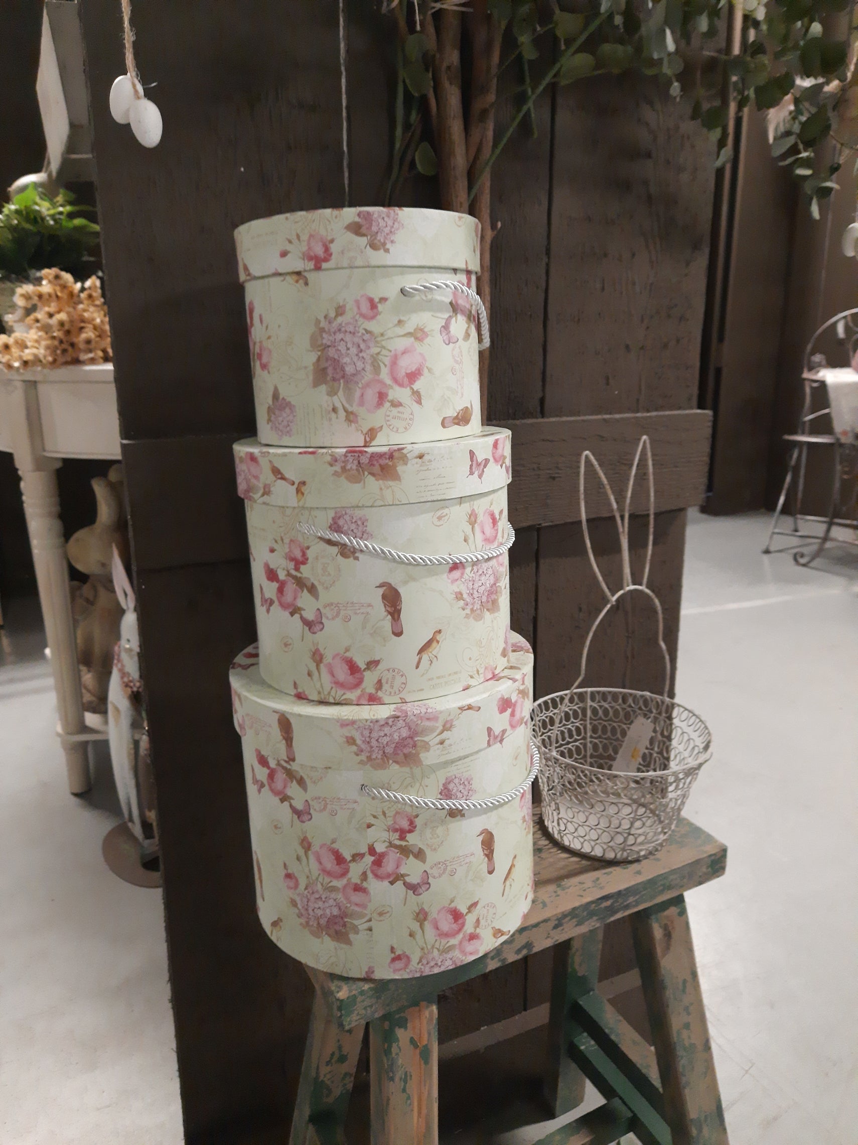 Aufbewahrungsbox Blumen grün rosa 3er Set - Landhausstil Geschenkbox Pappe