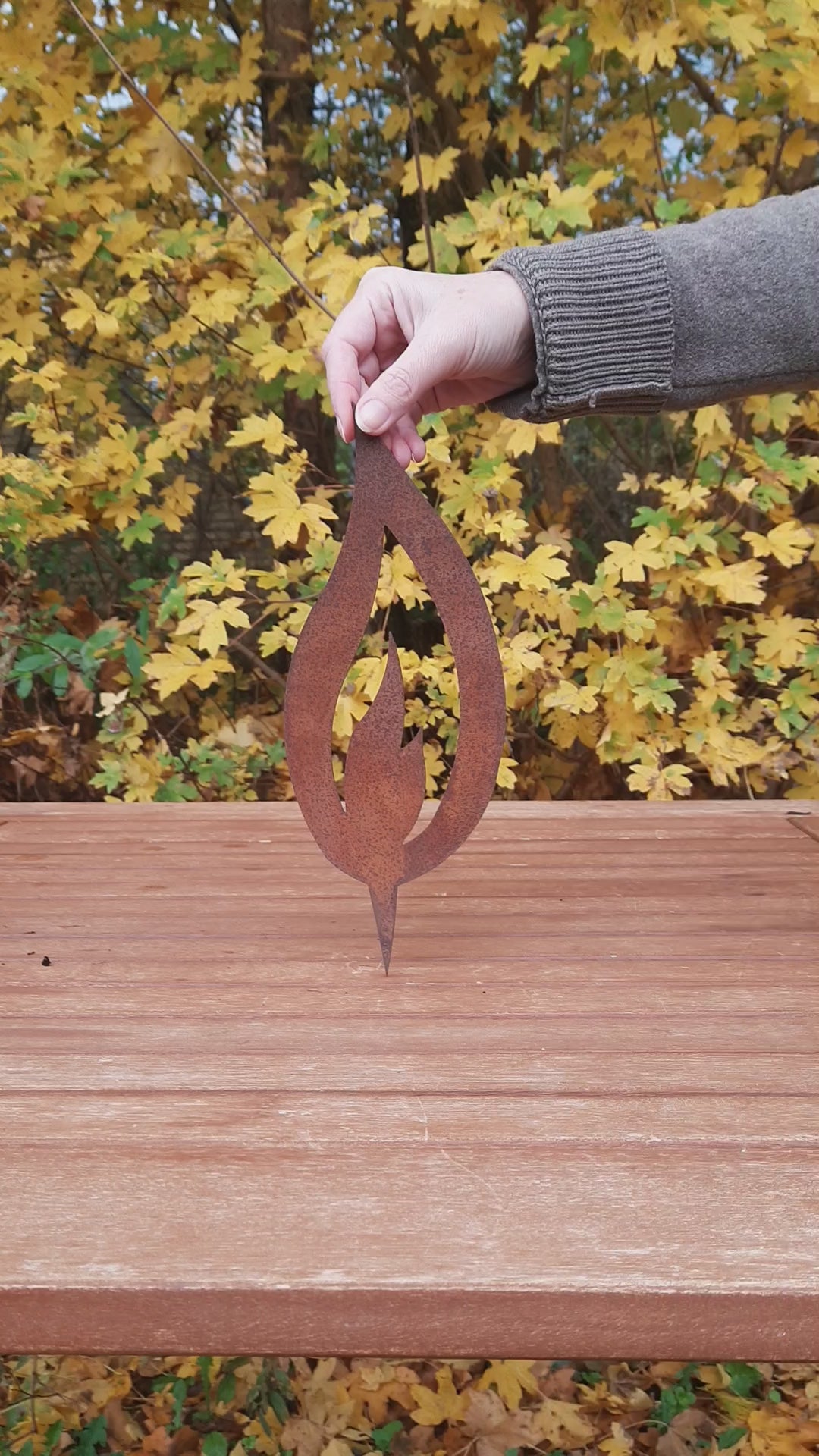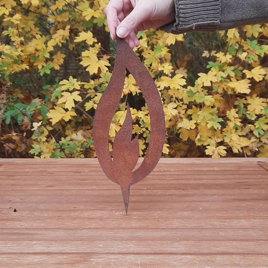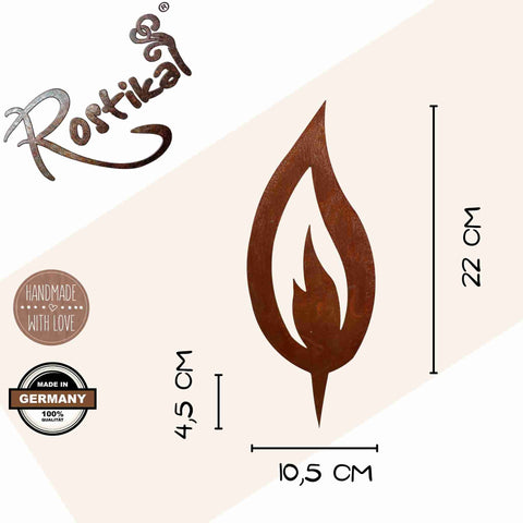 Metalldeko-Flammen in 5 verschiedenen Größen. Gestalten Sie Ihre Weihnachtsdeko selbst. Die Flammen im Landhausstil werden handgefertigt und erhalten ein besonderes Finish, das die einzigartige Rost-Patina hervorhebt.