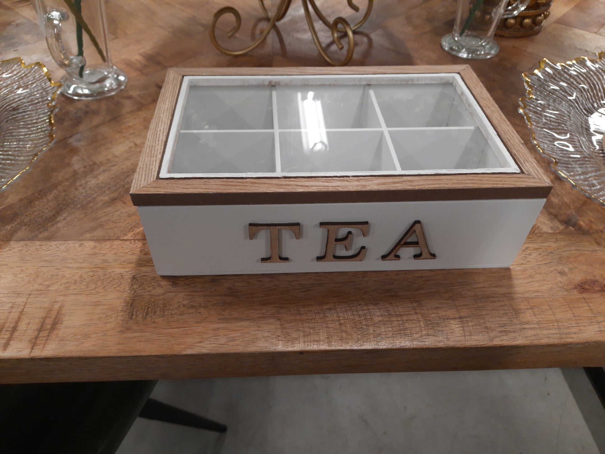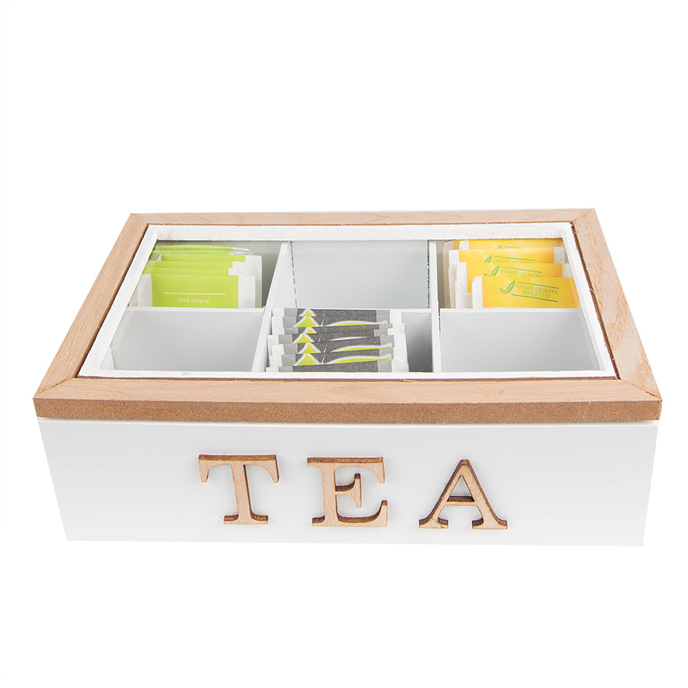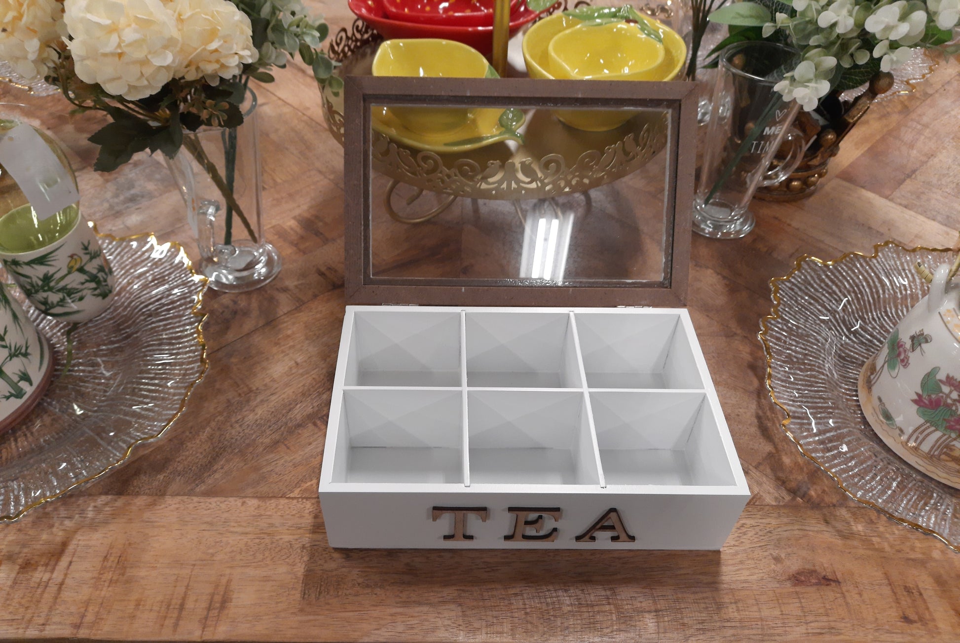 Teebox mit 6 Fächern - Rechteckig Weiß/Braun 23x17x8 cm