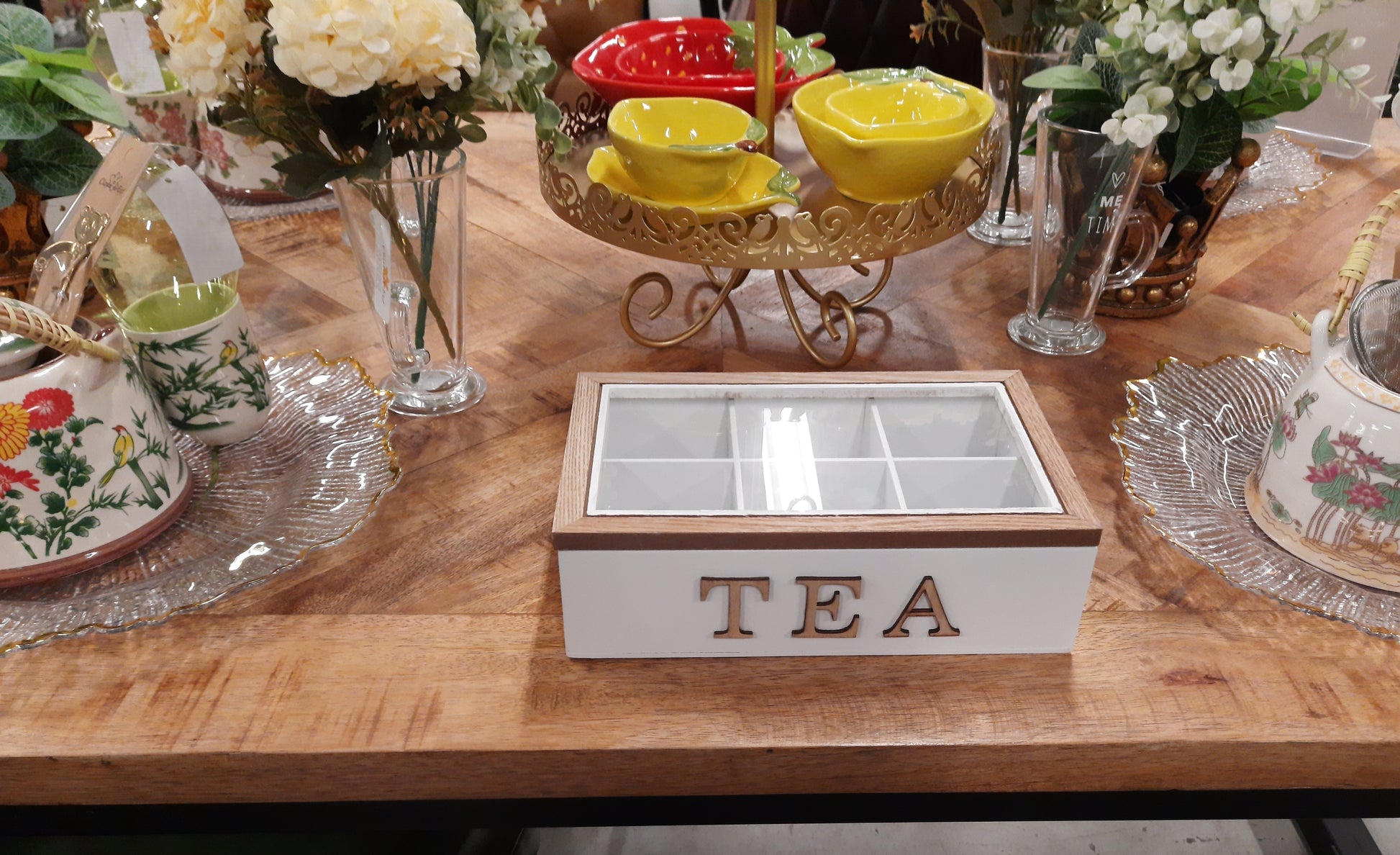Organisieren Sie Ihre Teesammlung mit dieser charmanten Teebox. Das rechteckige Design in Weiß und Braun passt perfekt in jede Küche und schafft eine warme, einladende Atmosphäre. Mit 6 praktischen Fächern halten Sie verschiedene Teesorten übersichtlich sortiert und griffbereit. Ob als Teekiste oder Teebeutelspender – dieses vielseitige Accessoire vereint Funktionalität mit zeitlosem Charme. Die kompakten Maße (23x17x8 cm) machen es zum idealen Begleiter für entspannte Teegenuss-Momente.