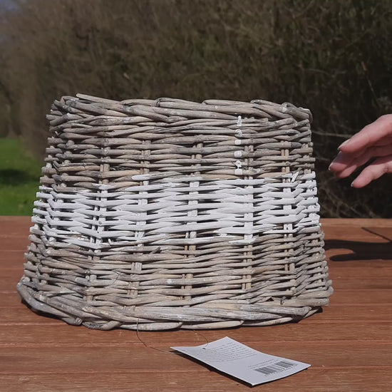 Bringen Sie mit diesem charmanten Lampenschirm aus Rattan in Braun und Weiß maritimen Landhausflair in Ihr Zuhause! Perfekt für Tisch-, Steh- oder Hängelampen, lässt er sich in verschiedenen Größen wunderbar kombinieren und sorgt für gemütliche Wohlfühlatmosphäre – ganz spielerisch und natürlich.