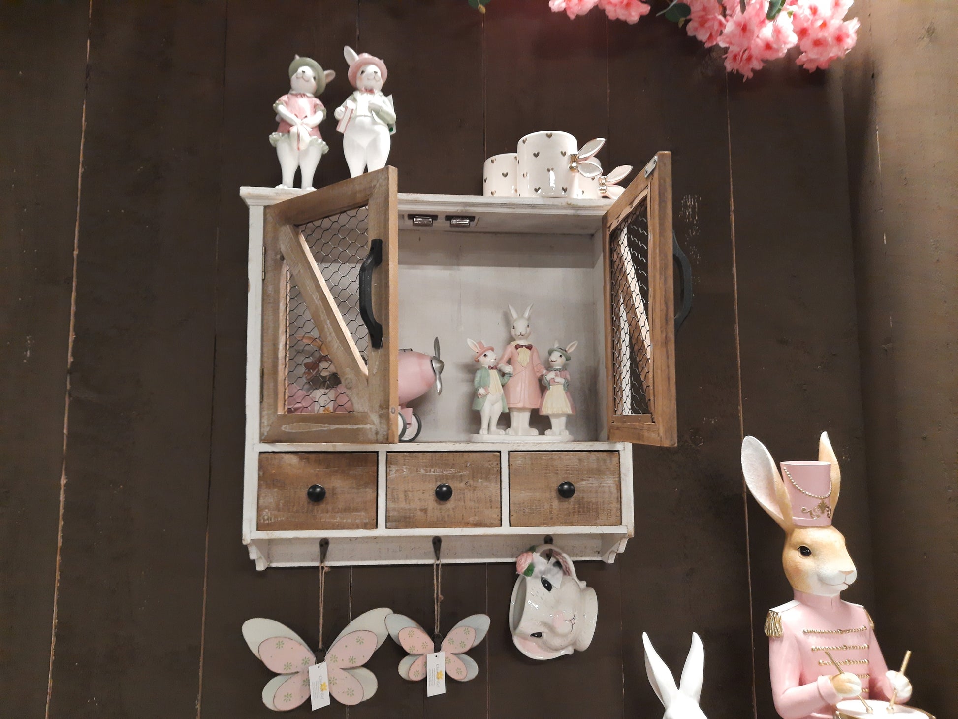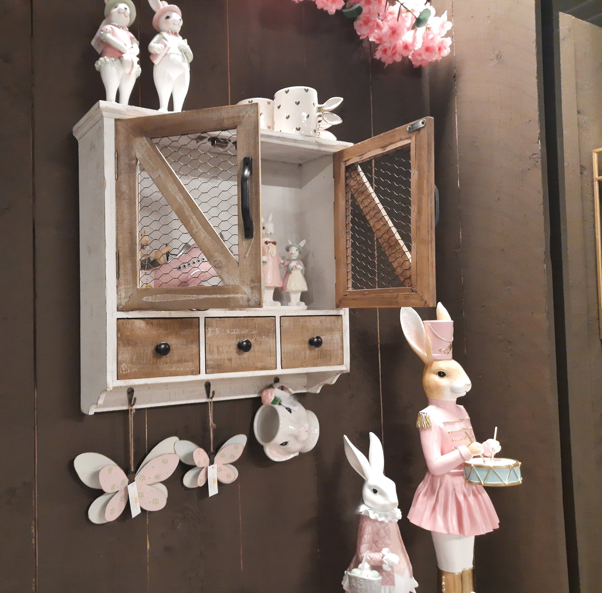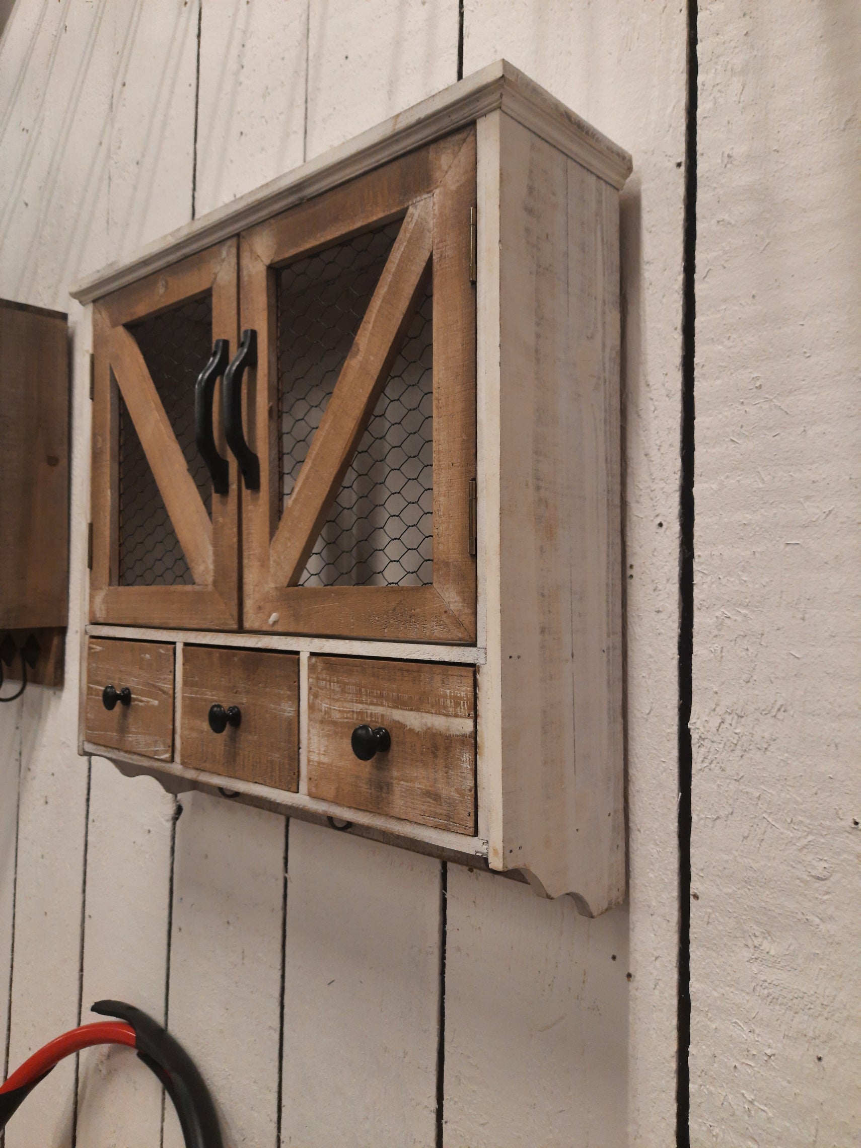 Wandregal mit Haken und Schubladen - Landhausstil Holz Braun-Weiß 53cm