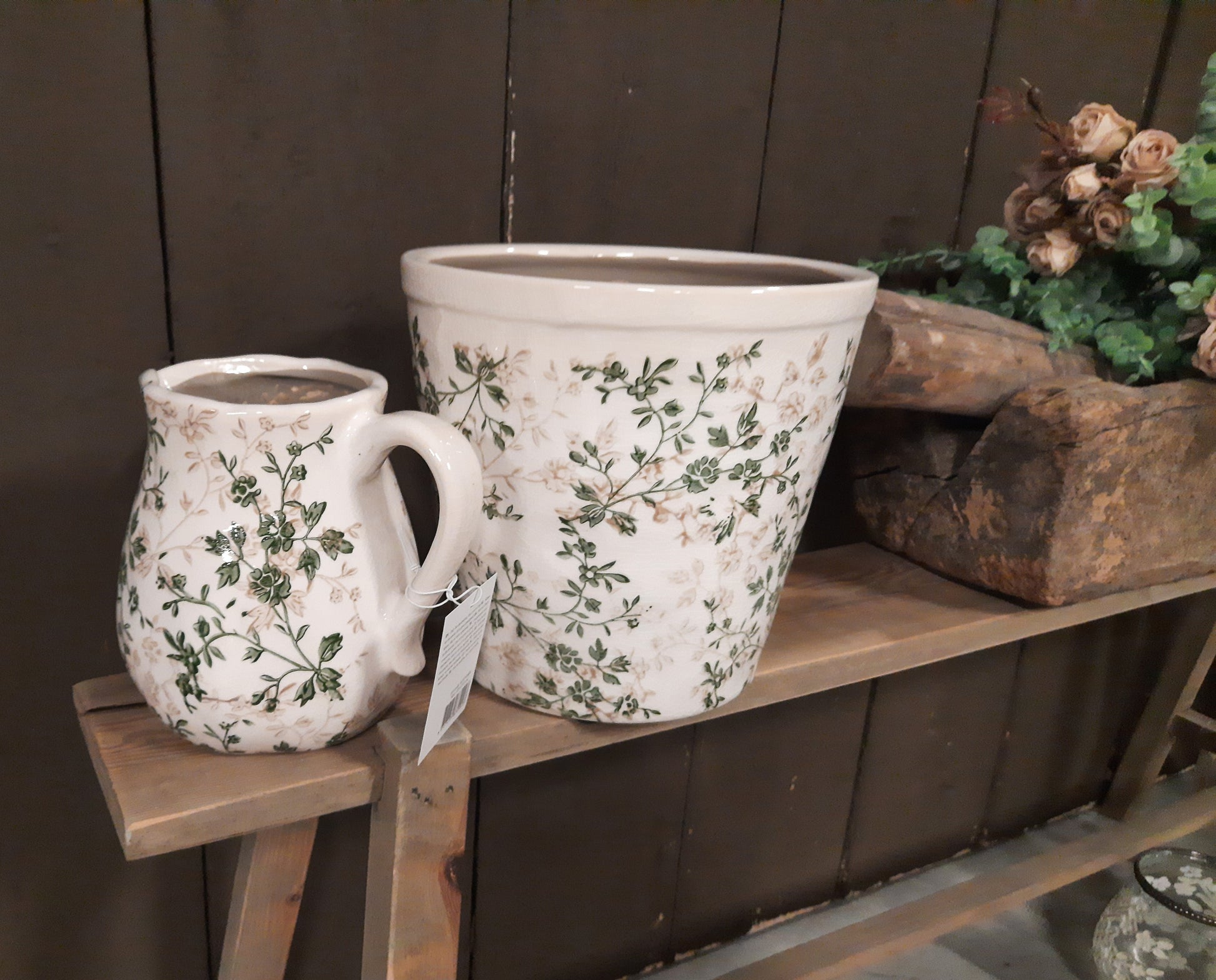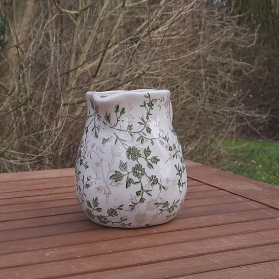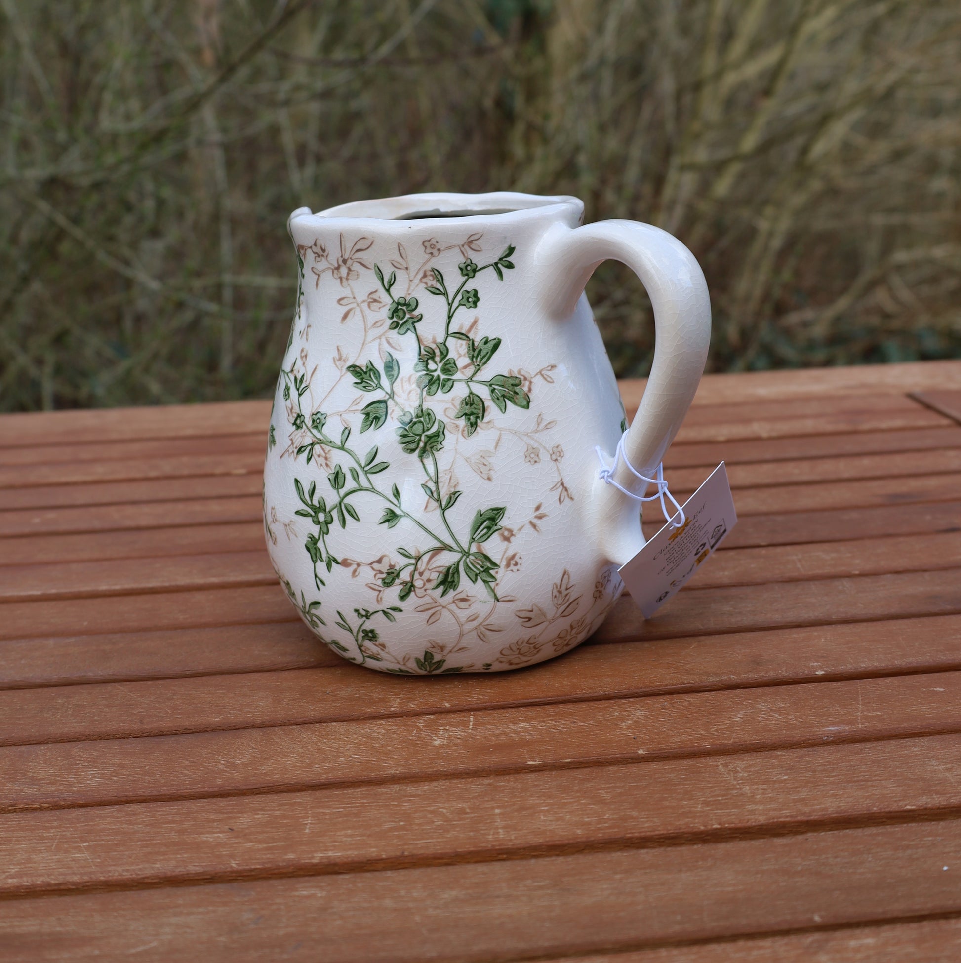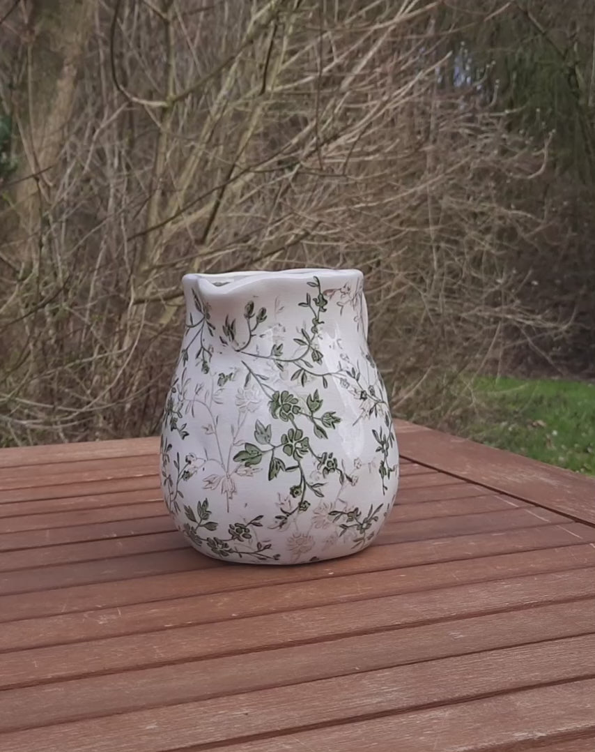 Keramikkrug mit Rankenmuster Beige-Grün - Dekorative Vase im Landhausstil
