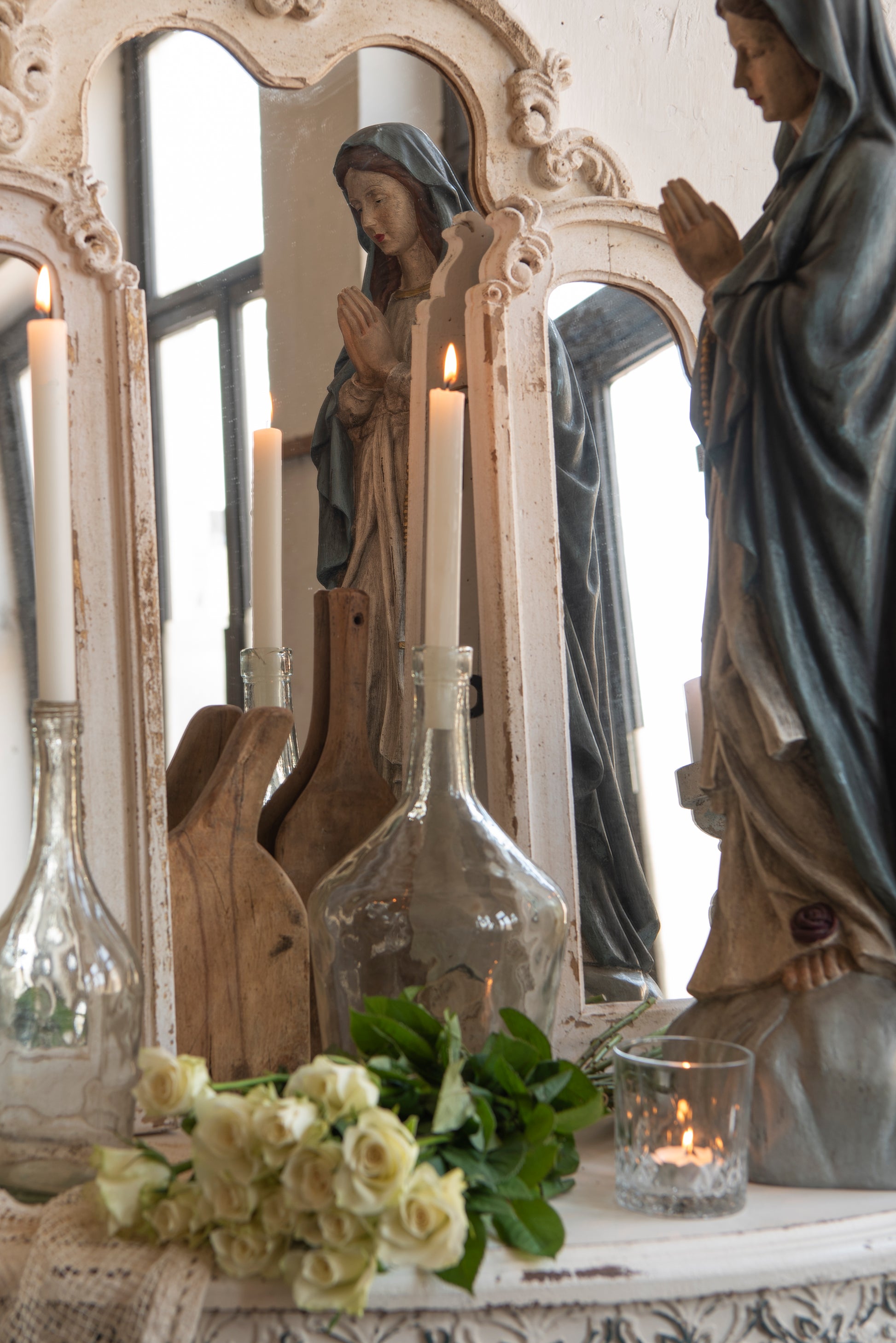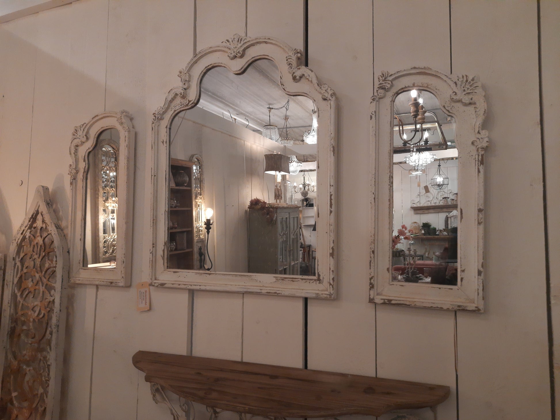 Ein wundervolles Stück für Träumer und Liebhaber des Vintage-Charmes: dieser dreiflügelige Spiegel im Barock-Stil. In zartem Weiß aus edlem Holz gefertigt, haucht er jedem Raum romantische Eleganz ein. Die großzügigen Abmessungen von 122 x 84 cm machen ihn zum Statement-Piece, das Schlafzimmer, Wohnzimmer und Flur gleichermaßen verzaubert. Mit seiner Shabby-Chic-Ausstrahlung erzählt dieser Spiegel Geschichten von vergangenen Zeiten und schafft eine Atmosphäre voller Poesie – perfekt für alle, die sich nach dem authentischen Landhaus- und Brocante-Flair sehnen.