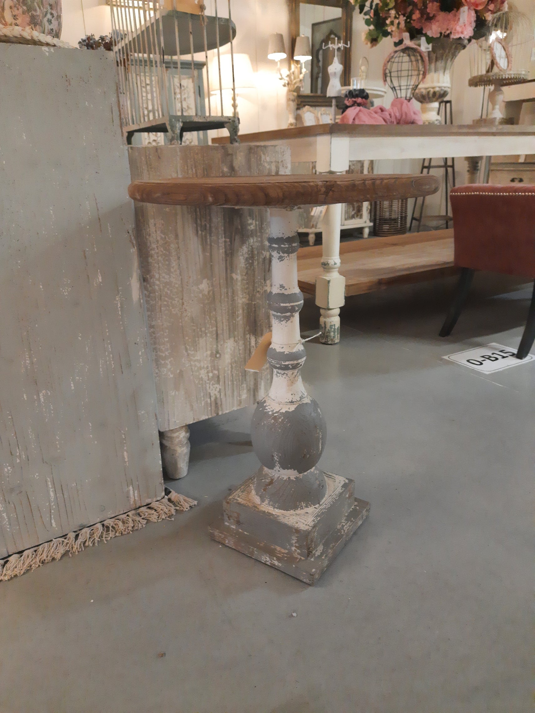 Beistelltisch Rund Shabby Chic Holz Ø 51 cm - Weiß-Grau/Braun