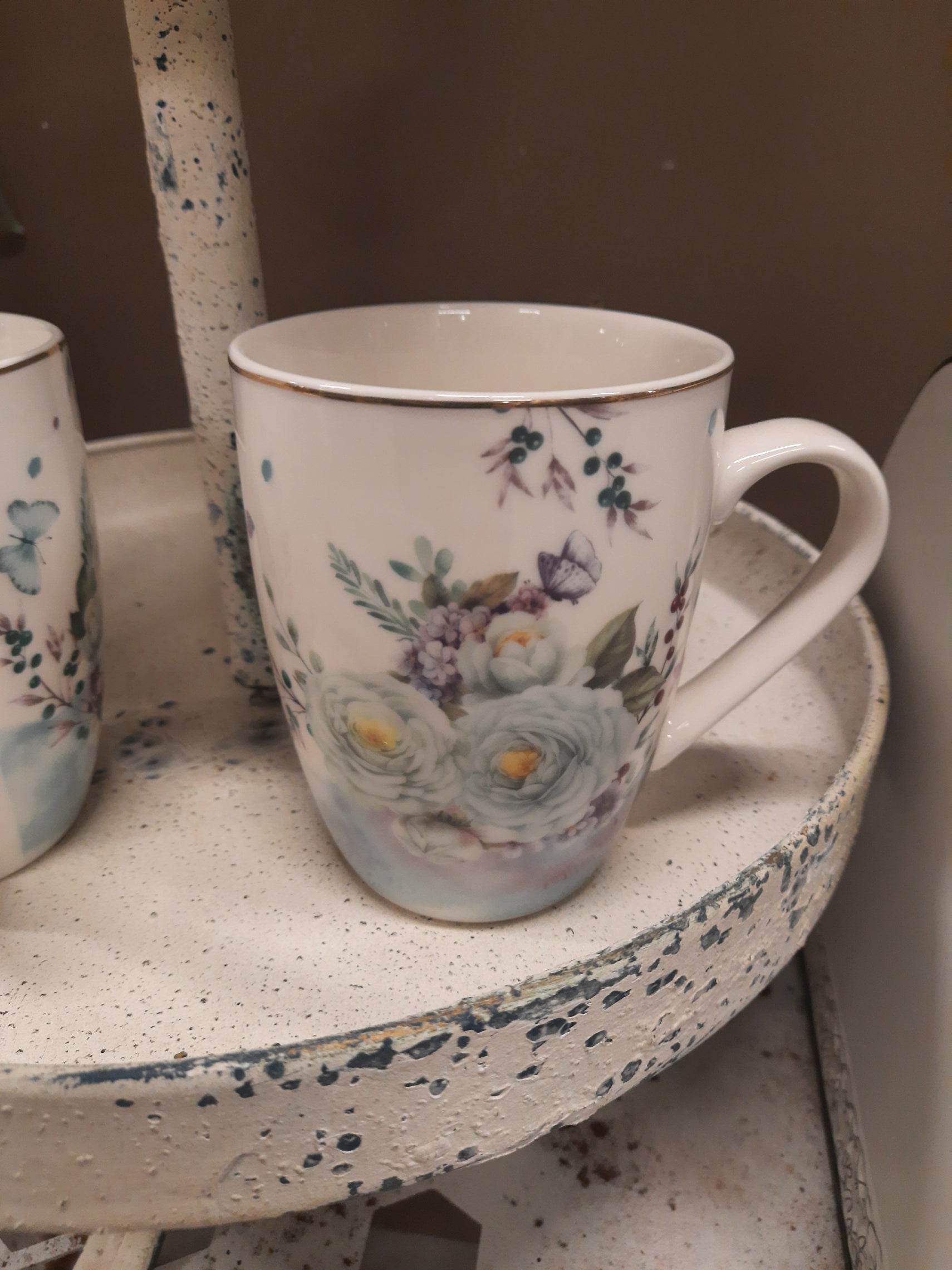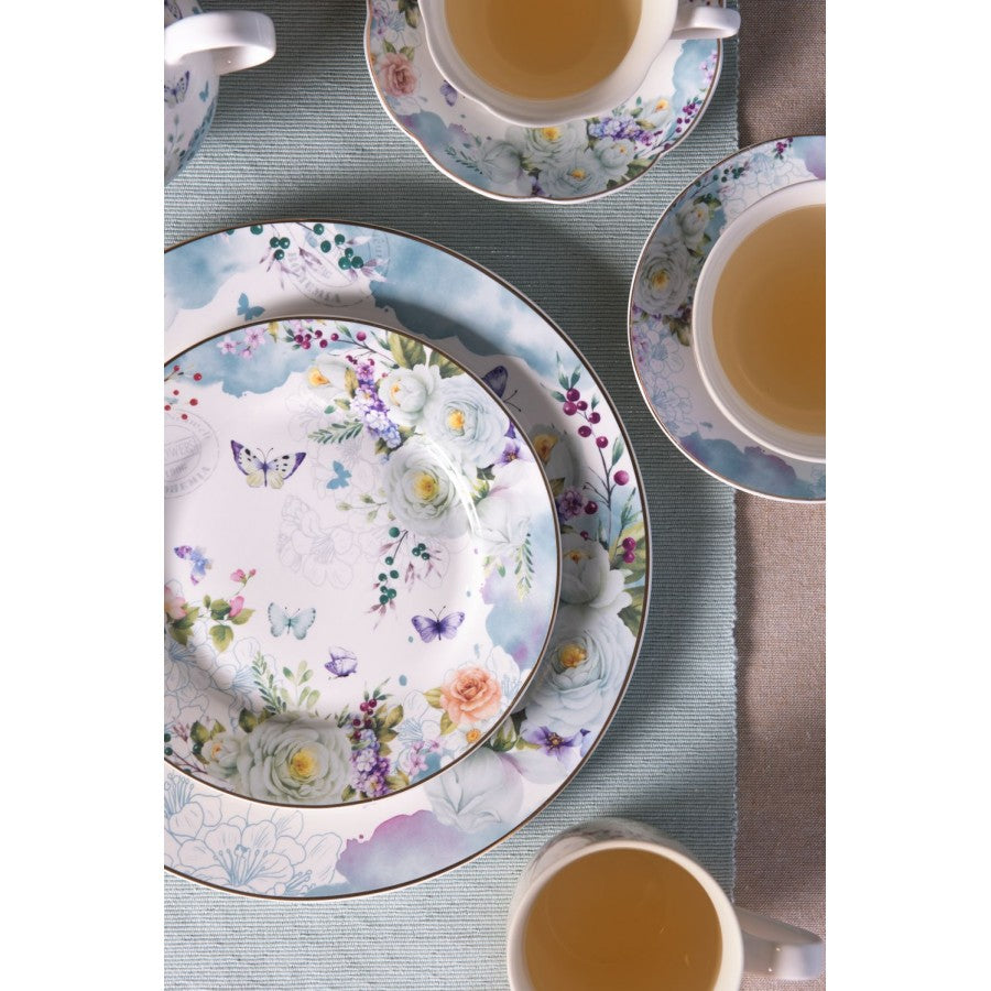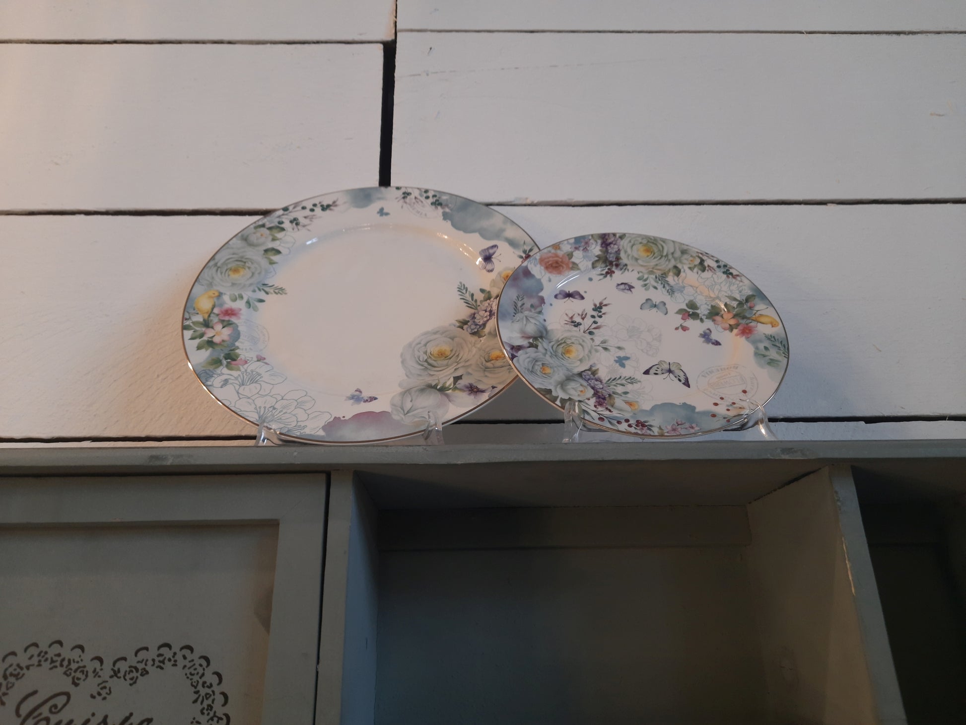Porzellan Geschirr Blumen & Schmetterlinge Blau-Weiß - Landhausstil Mix & Match