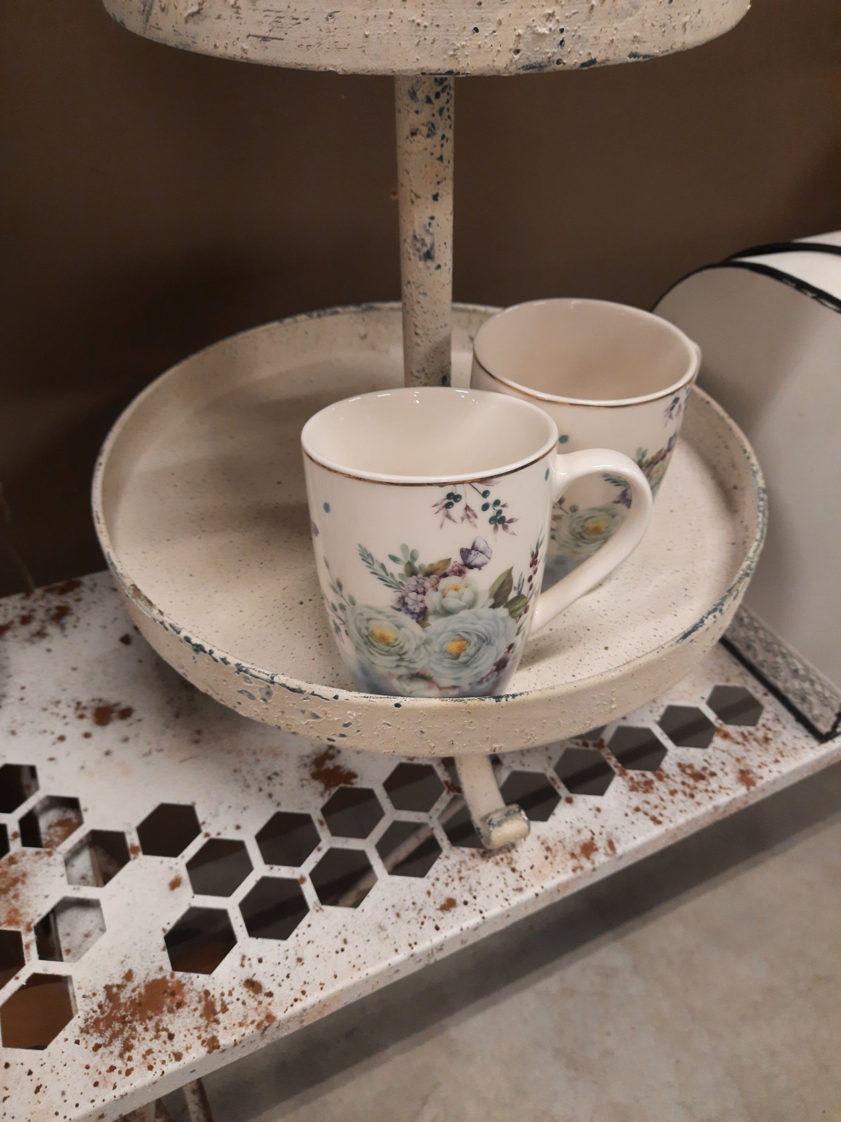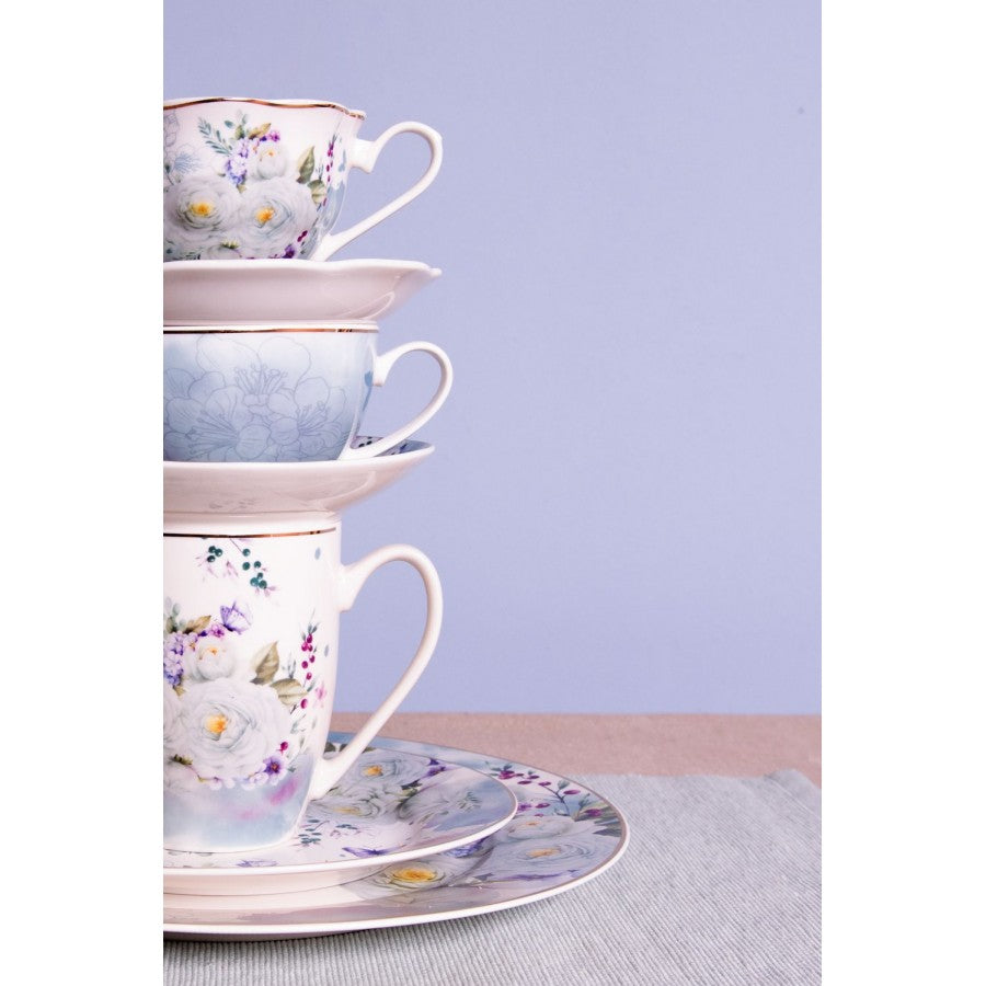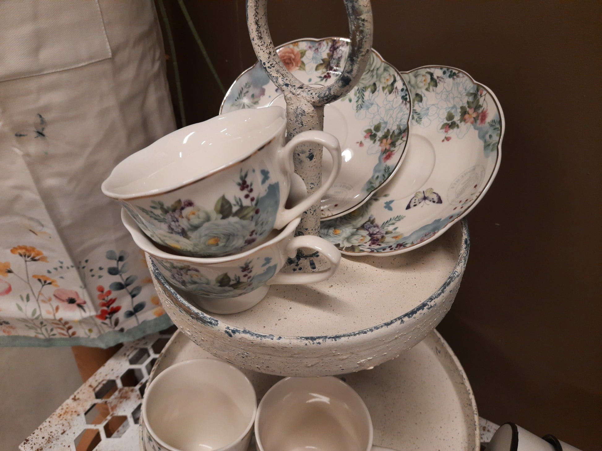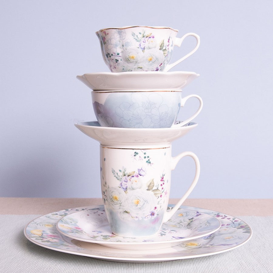 Porzellan Geschirr Blumen & Schmetterlinge Blau-Weiß - Landhausstil Mix & Match