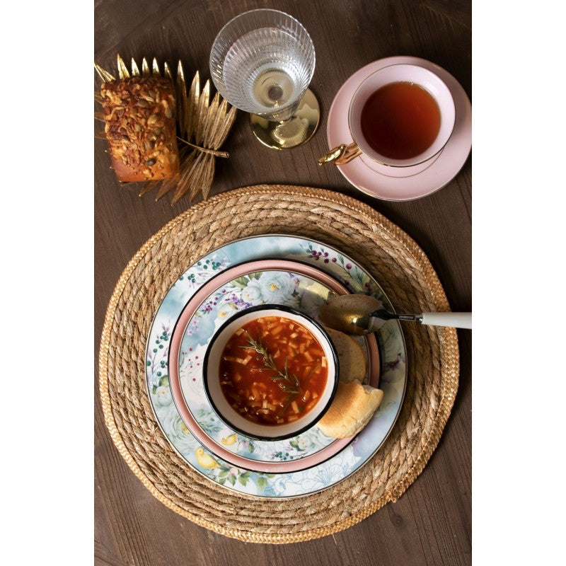 Verleihen Sie Ihrem Tisch ein Hauch von Eleganz und Natur mit dem exquisiten Geschirr aus Porzellan von Clayre & Eef. Dieses Kollektion bezaubert mit seinem blau-weißen Farbschema und den zarten Blumen- und Schmetterlingsmustern, die eine frühlingshafte Atmosphäre schaffen. Ideal für jegliche Anlässe, von Geburtstagen bis hin zu festlichen Dinners. Das Set umfasst Speiseteller, Teller, Becher, Kuchenteller und eine Teekanne, alles gefertigt aus hochwertigem Porzellan mit glatter Oberfläche, das sowohl für den täglichen Gebrauch als auch für die Spülmaschine geeignet ist. Runde Formen, kombiniert mit dem charmanten Landhausstil, machen dieses Ensemble zum Blickfang auf jedem gedeckten Tisch.