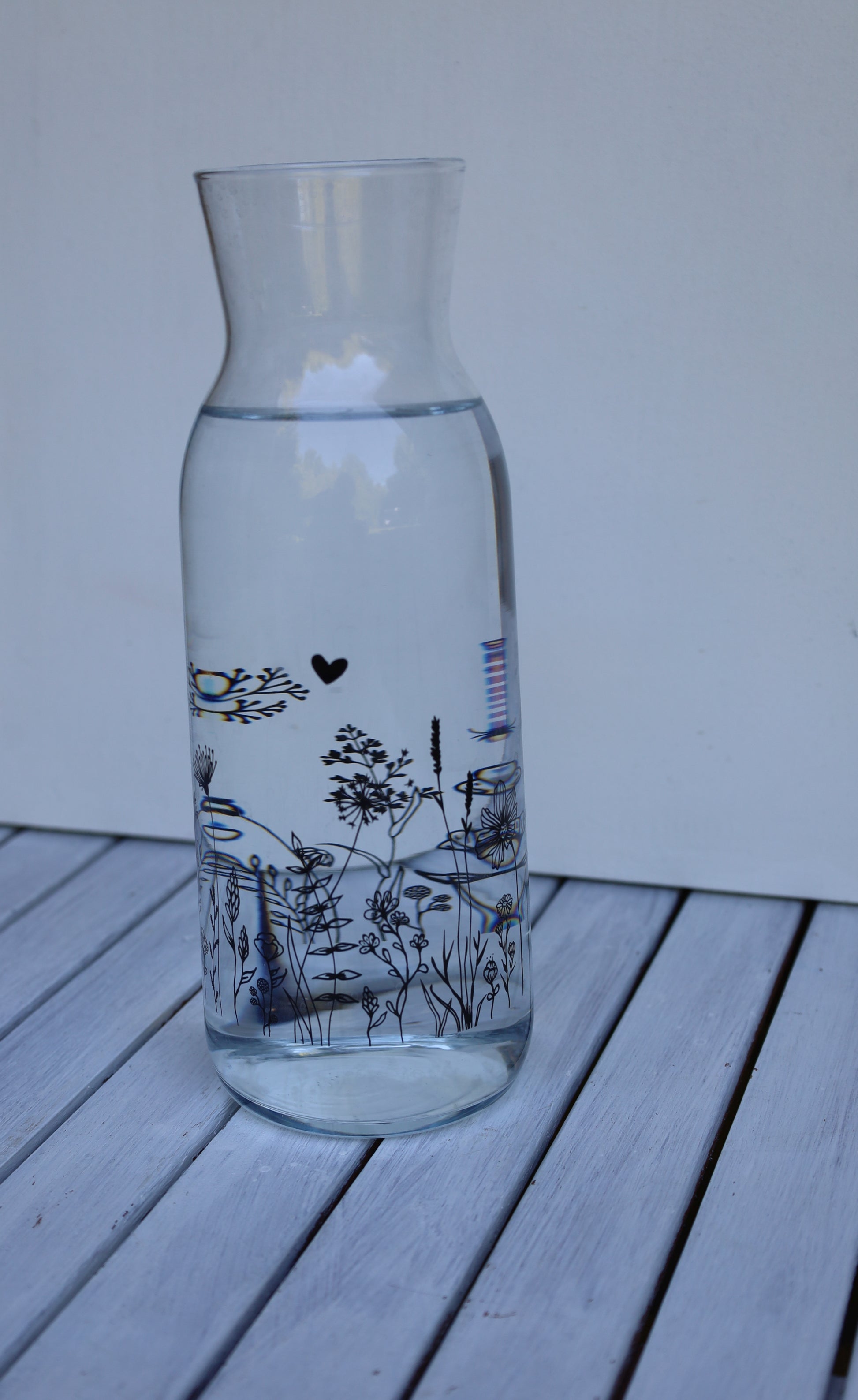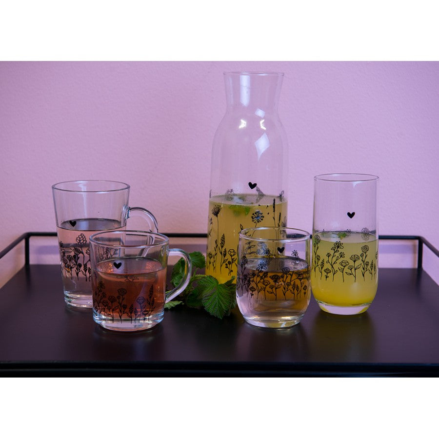 Glaskaraffe 1L Wiesenblumen Schwarz - Clayre & Eef Wasserkaraffe Landhaus
