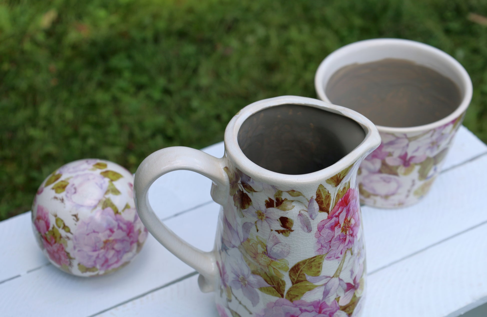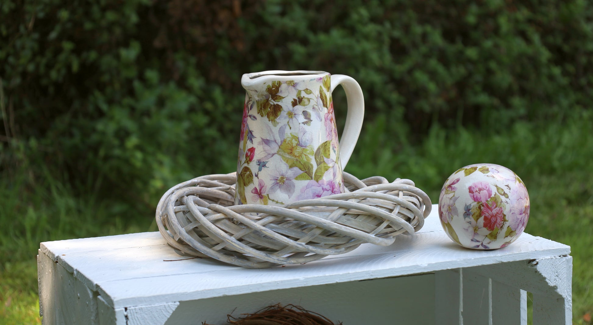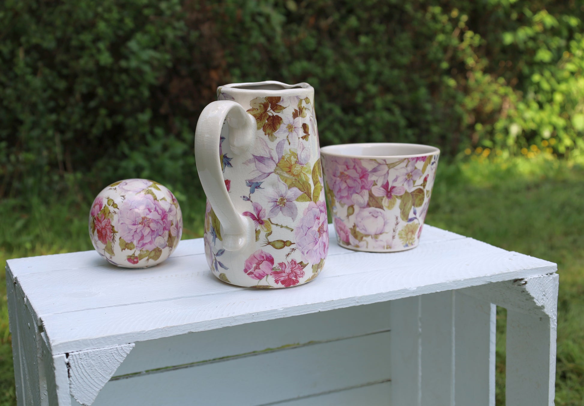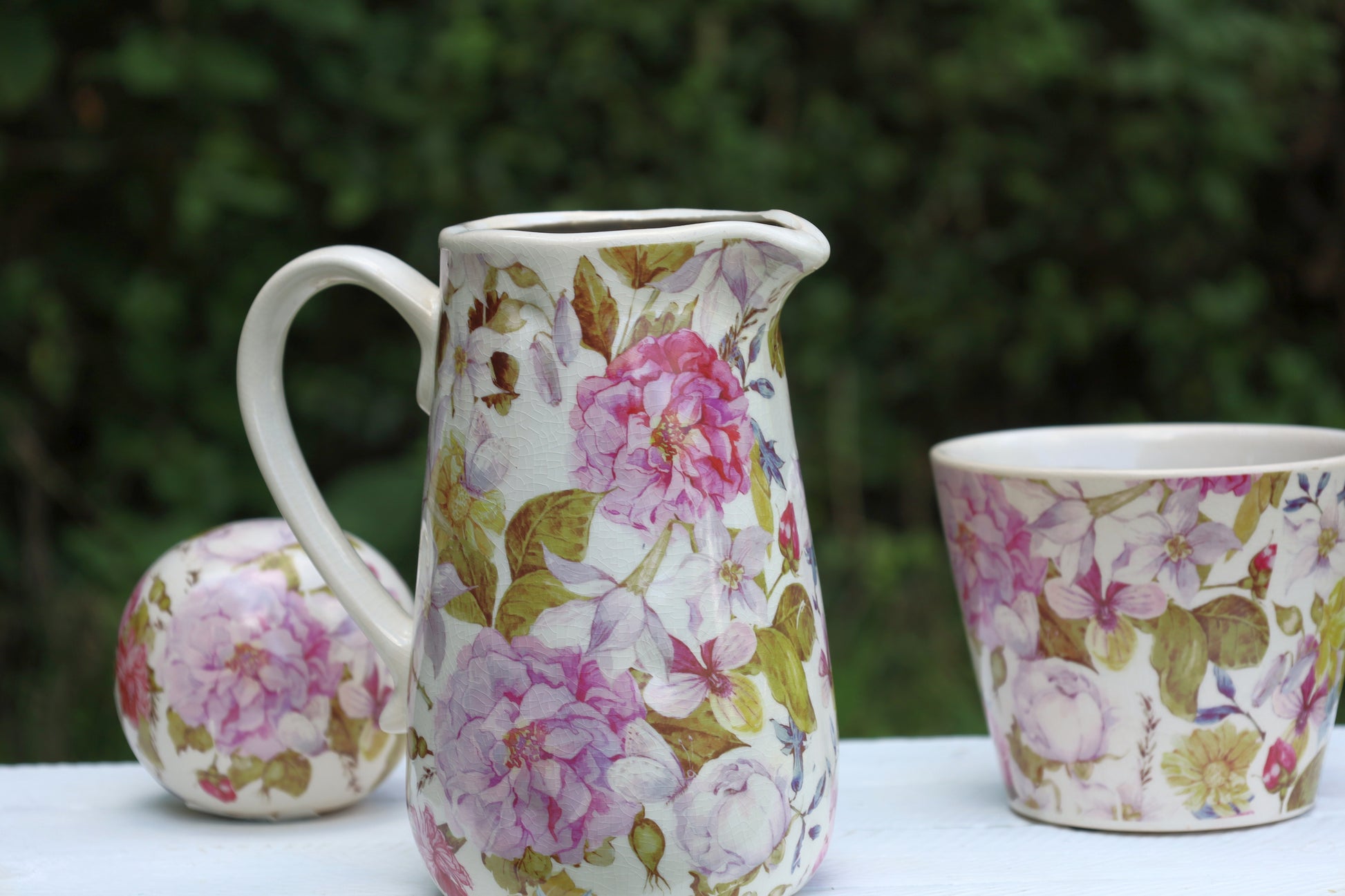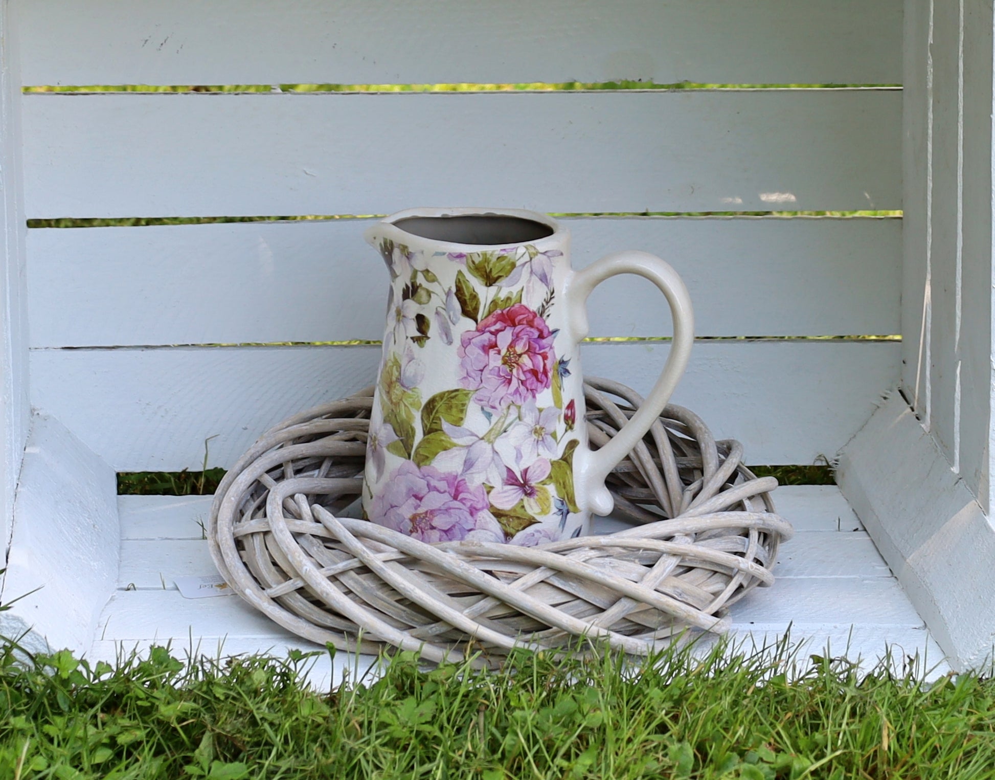 Keramik Krug Vase mit Pfingstrosenmotiv - Landhausstil Dekoration