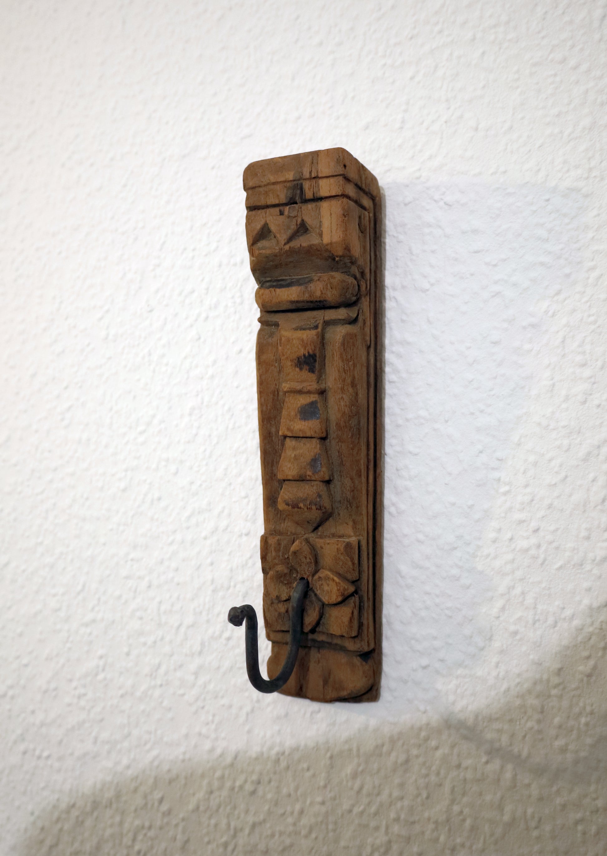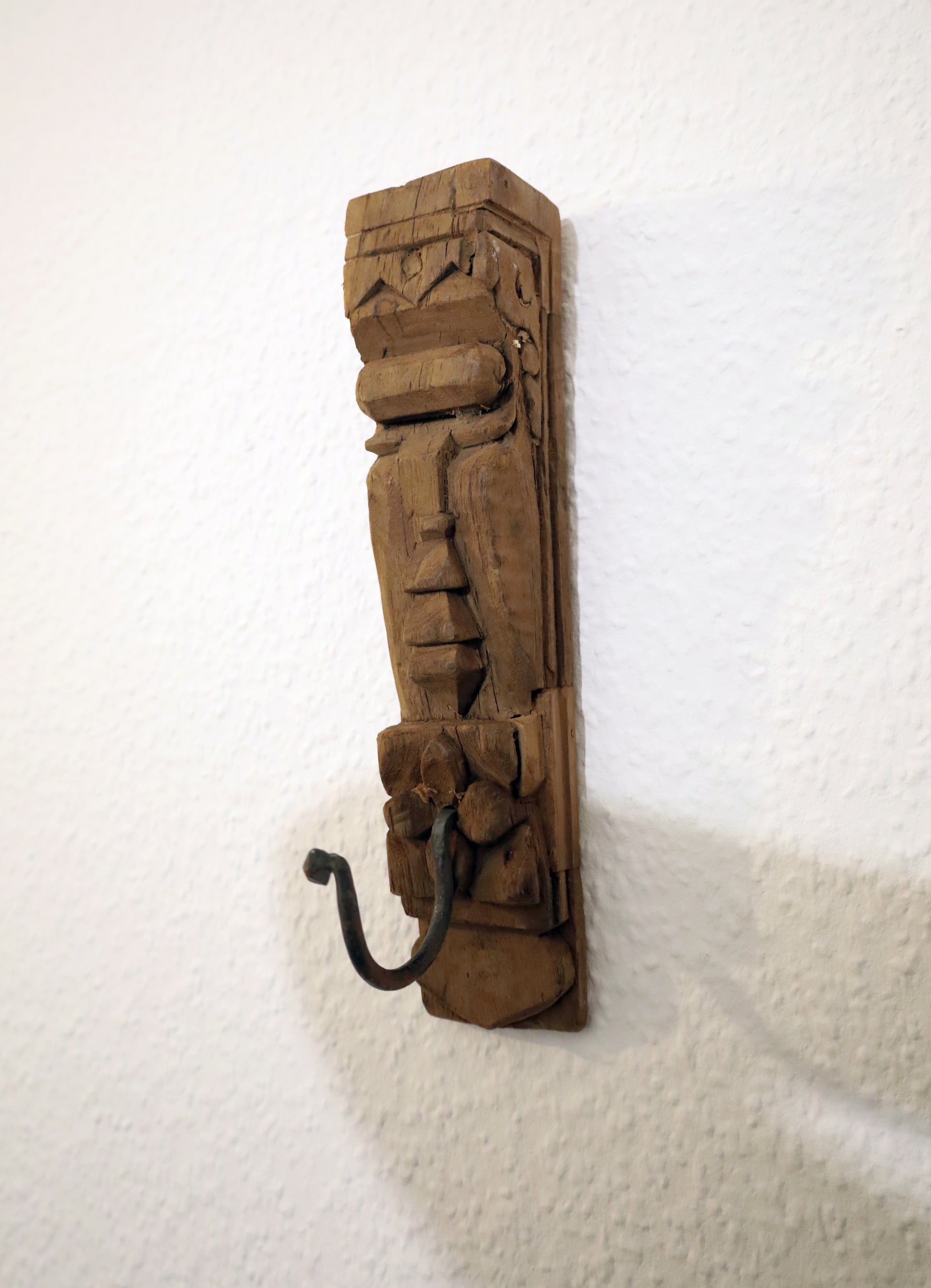 Dieser einzigartige Garderobenhaken wurde aus einem alten Zierbalken und schmiedeeisernen Haken gefertigt. Jedes Teil ist ein Unikat und etwas ganz Besonderes.