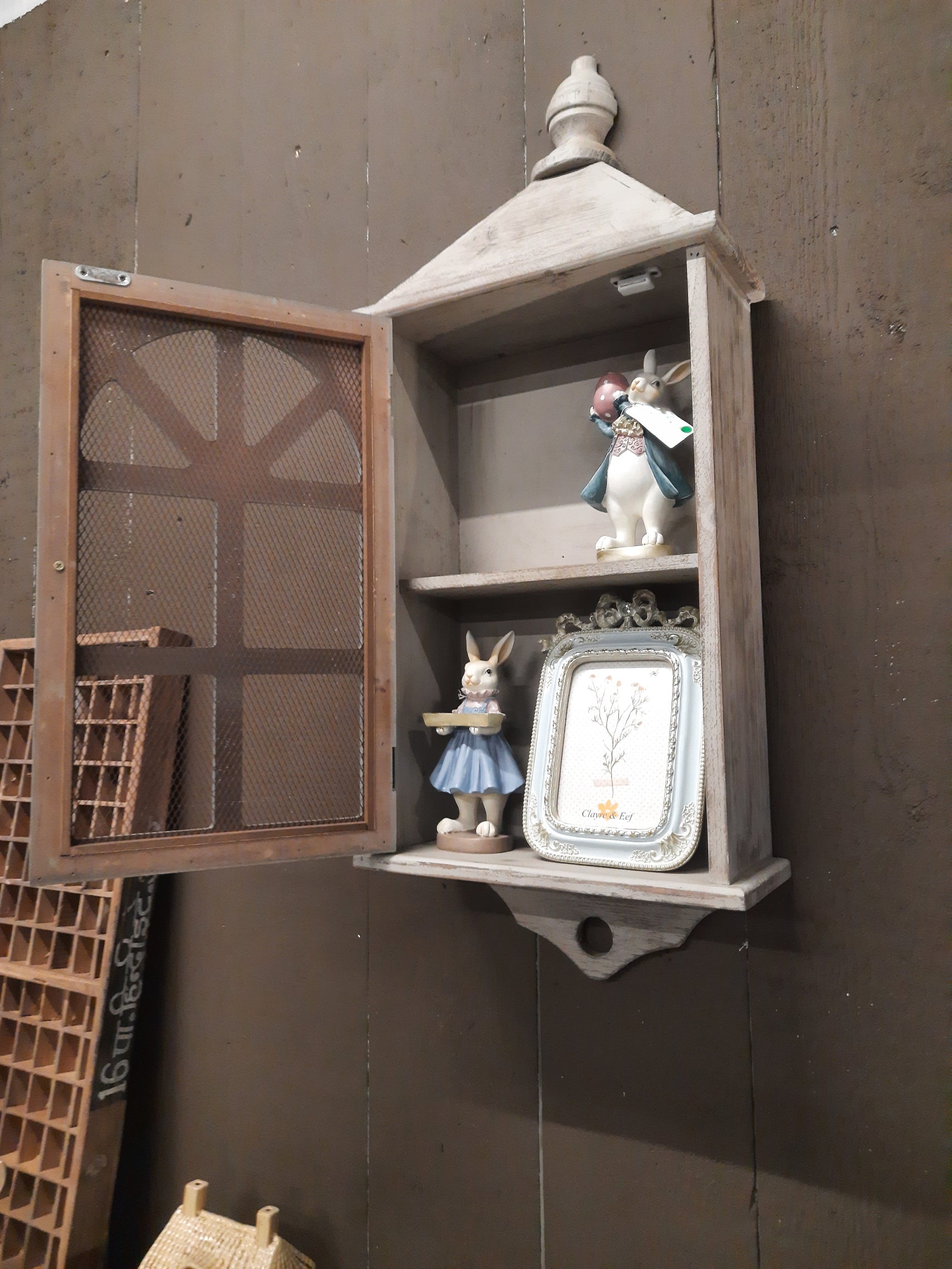Grau, grüner Wandschrank aus Holz im Landhausstil. Tür mit den Maßen 28x48 cm mit Magnetverschluss. Regal mit den Maßen 28x11 cm, Platz über und unter dem Regal ist 24 cm. Eignet sich hervorragend zur Aufbewahrung kleiner Gegenstände. Sie können es in jedem Raum wie Küche, Flur, Wohnzimmer, Schlafzimmer oder Arbeitszimmer verwenden.