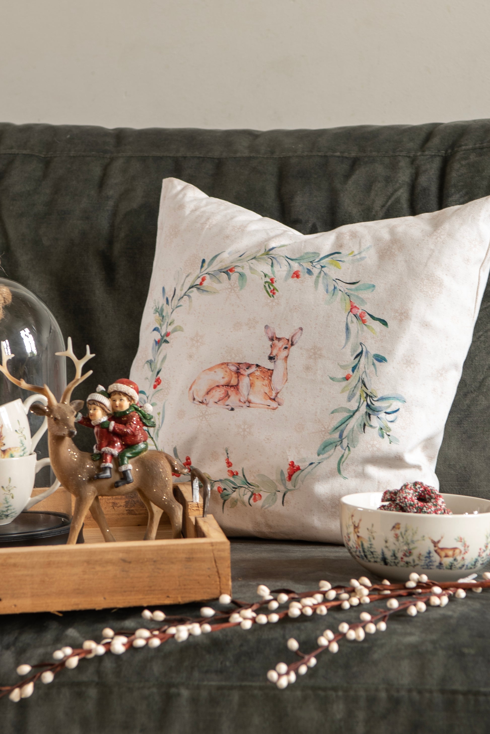 Kissenbezug Winterwald mit Reh-Motiv 40x40 cm - Baumwolle Landhaus-Stil