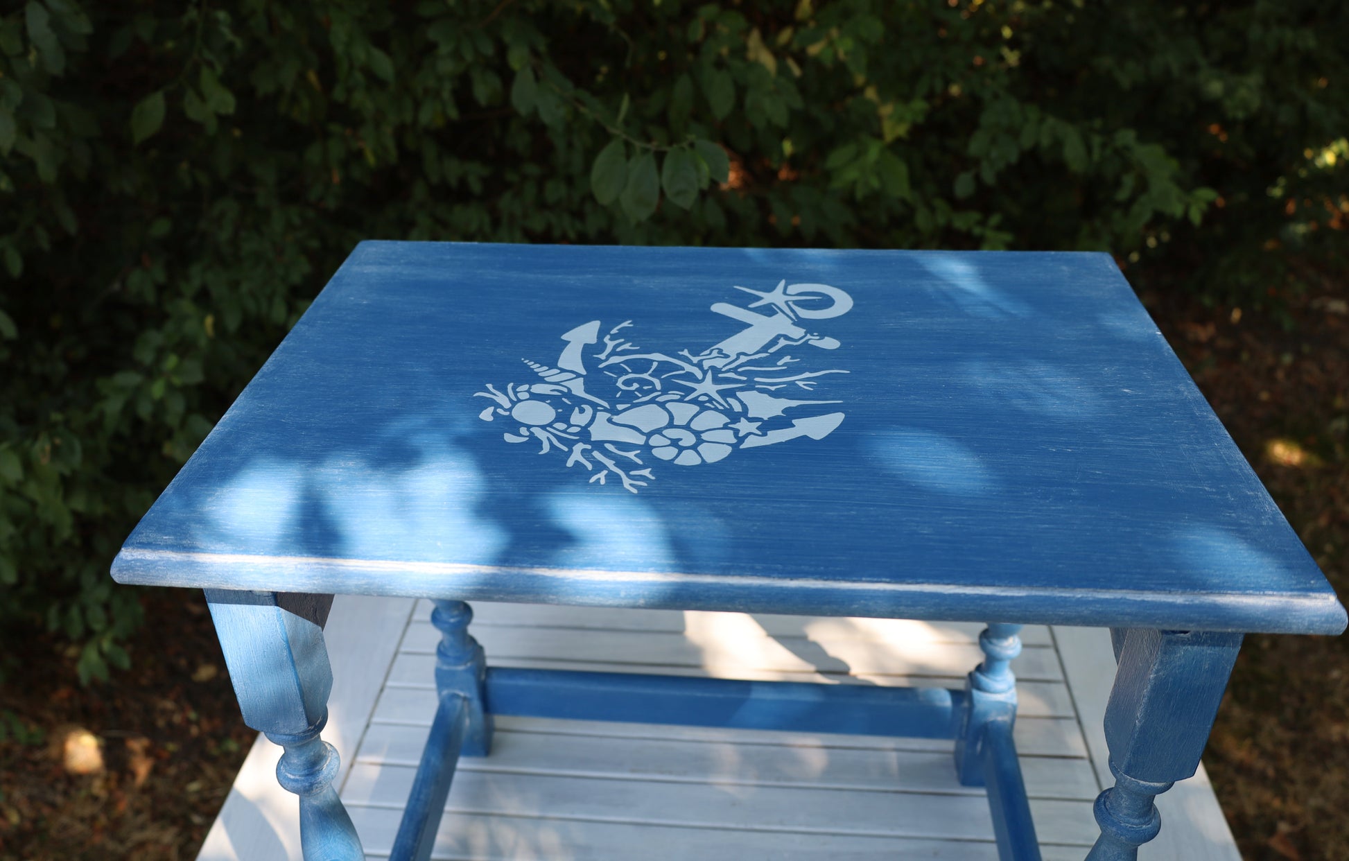 Dieses 3er Set aus blauen Holztischchen bringt mit maritimen Motiven wie Anker, Muschel, Fisch und Steuerrad frischen Charme in dein Zuhause. Die einzigartig, upgecycelten Tischchen sind gewachst und poliert, was ihre Oberfläche besonders schön macht. Praktisch und platzsparend lassen sie sich einfach zusammenschieben – perfekt für kleine Abenteuer und große Entdeckungen!