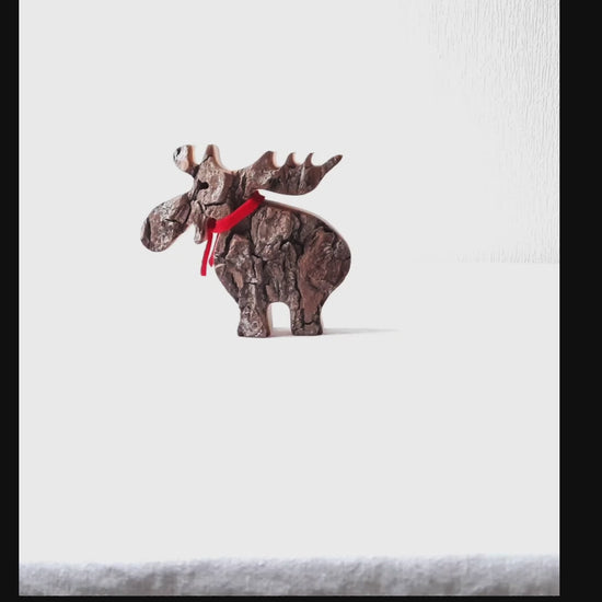 Charmante Elchfiguren aus naturbelassenem Rindenholz – gefertigt aus hochwertigen heimischen Holzarten mit authentischer Oberflächenstruktur. Schaffen Sie eine warme, winterliche Atmosphäre im Landhausstil, ob als Tischdeko zur Weihnachtszeit oder ganzjährig als rustikales Accessoire. Kombinieren Sie die Elche mit anderen Elementen aus derselben Kollektion für ein stimmiges, natürliches Gesamtbild.