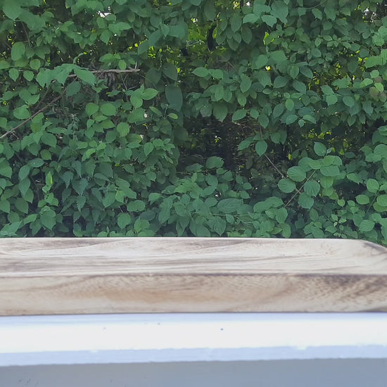 Diese schöne, robuste, rustikale Holzschale im Landhausstil eignet sich für vielerlei. Nutzen Sie dieses rechteckige Tablett zur Präsentation Ihrer Dekorationen oder servieren Sie darauf leckeres Obst. Jede Platte hat eine individuelle Holzmaserung, sodass jedes Teil einzigartig ist.