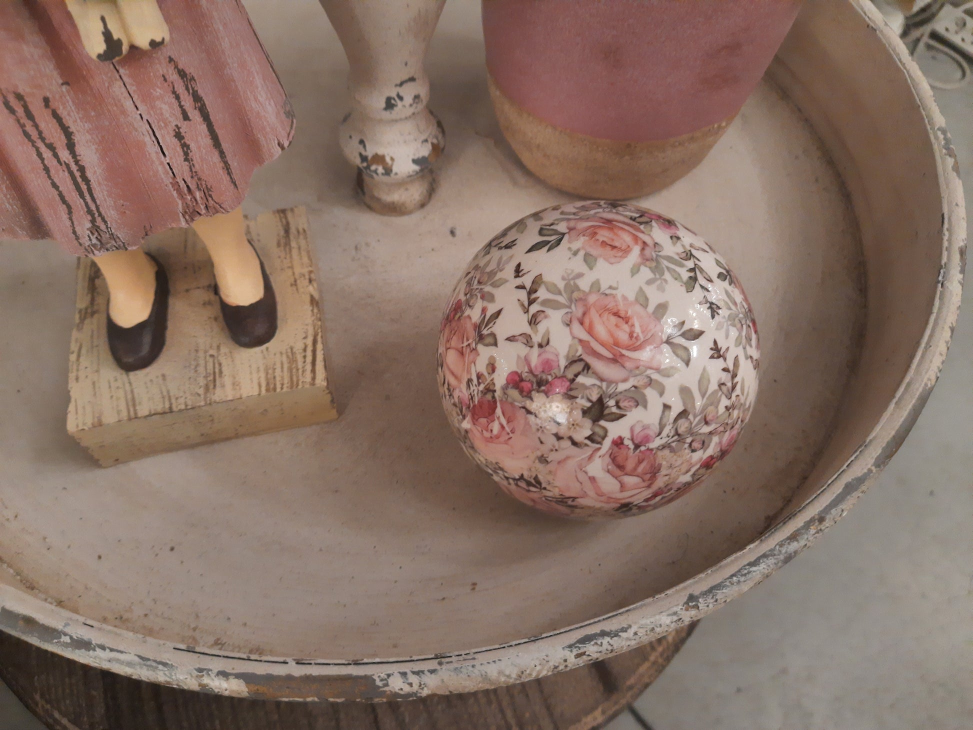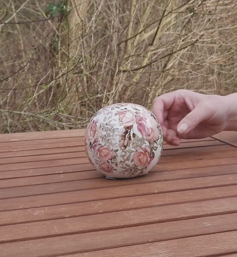Dekorative Keramik-Kugel mit Rosenmotiv - Shabby Chic Landhaus Deko