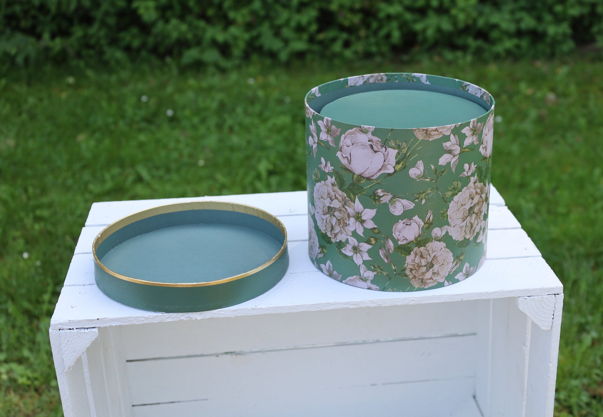Runde Aufbewahrungsschachteln mit Blumenmuster Grün - 3er Set Pappschachteln