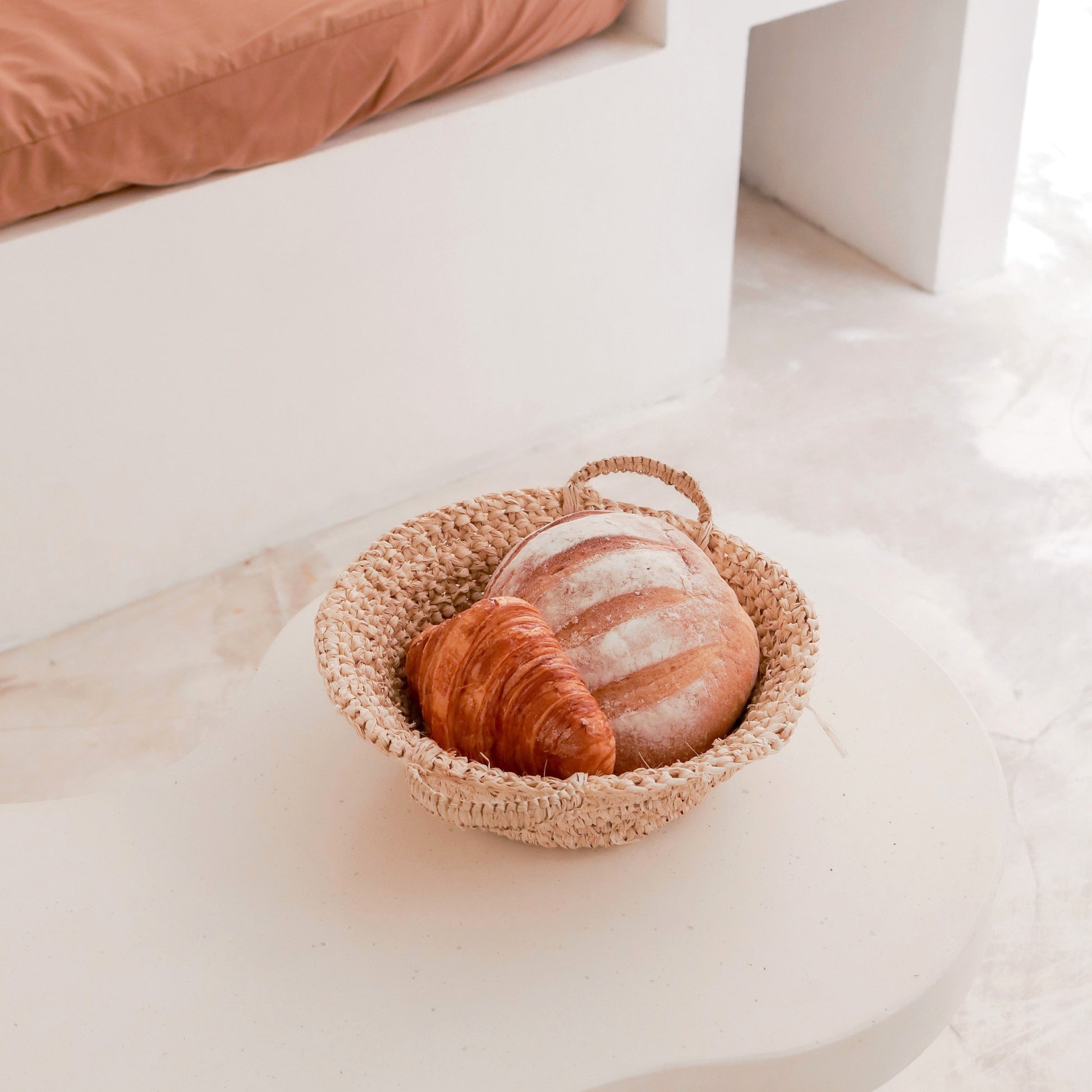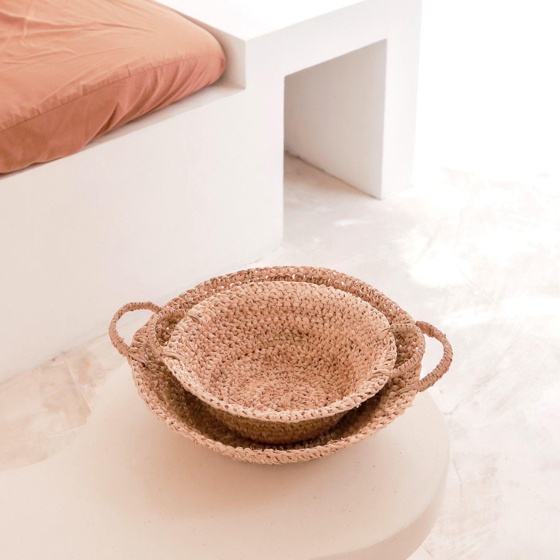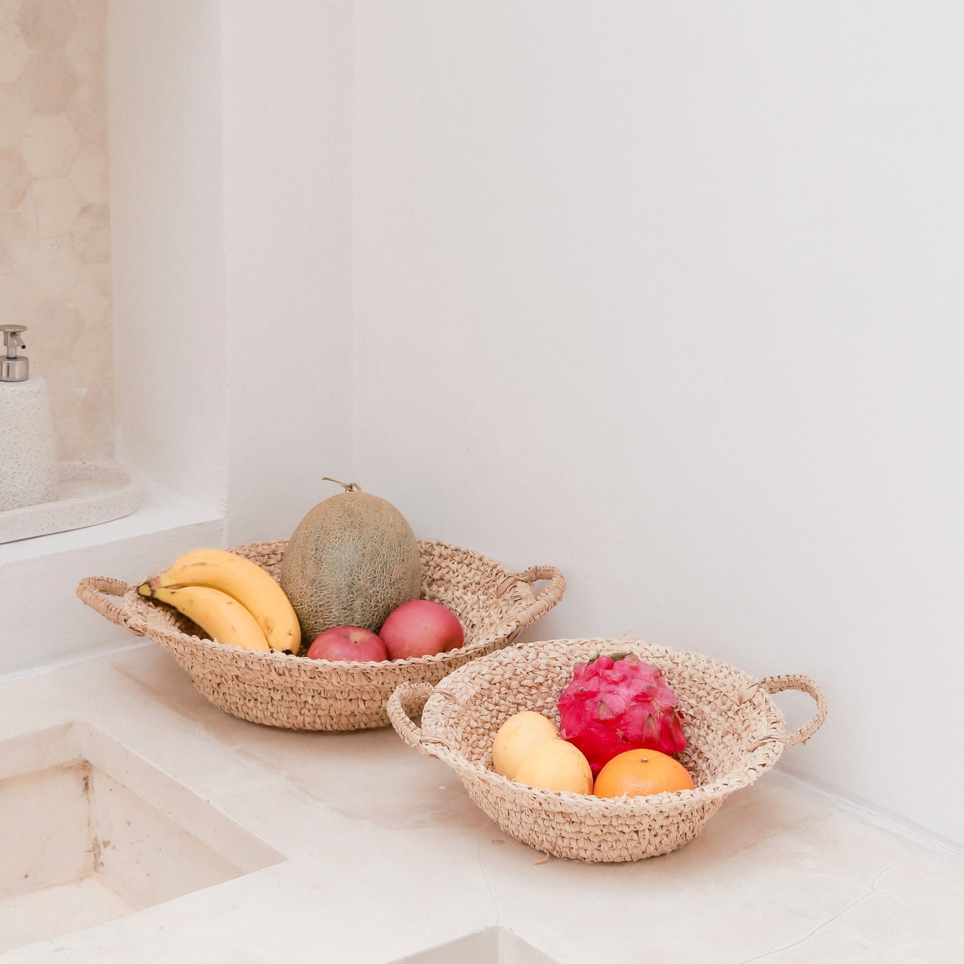 Obstkorb aus Bast Ø 28 cm - Handgeflochtenes Körbchen mit Griffen