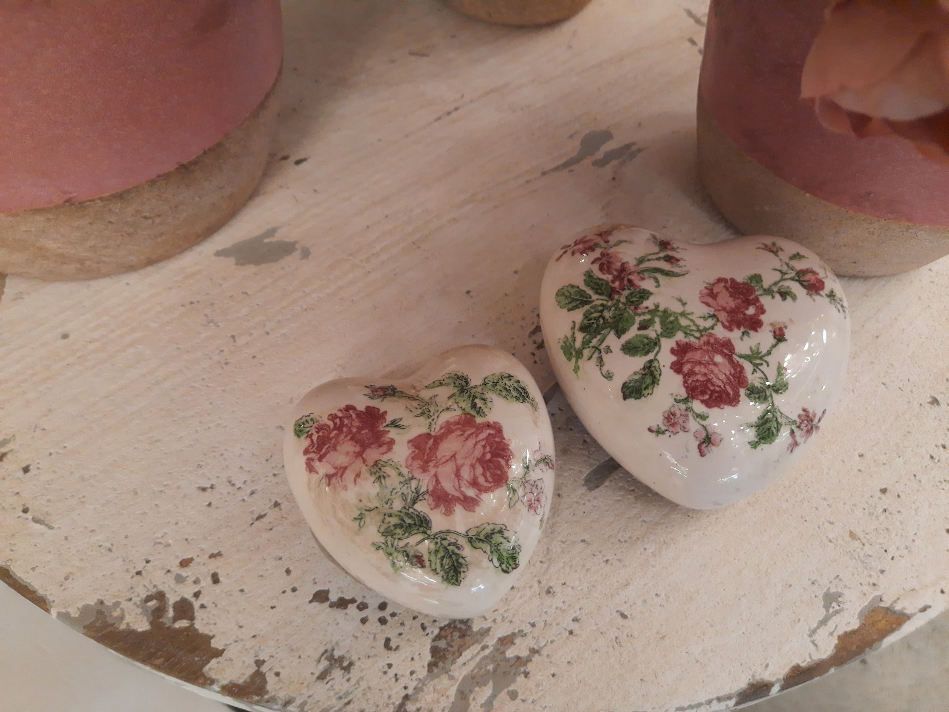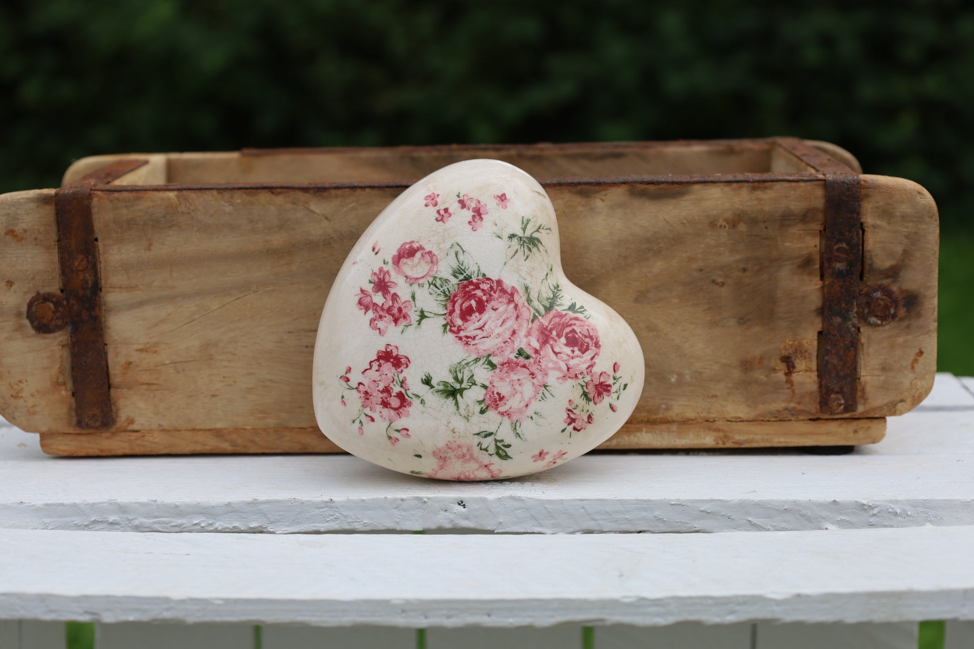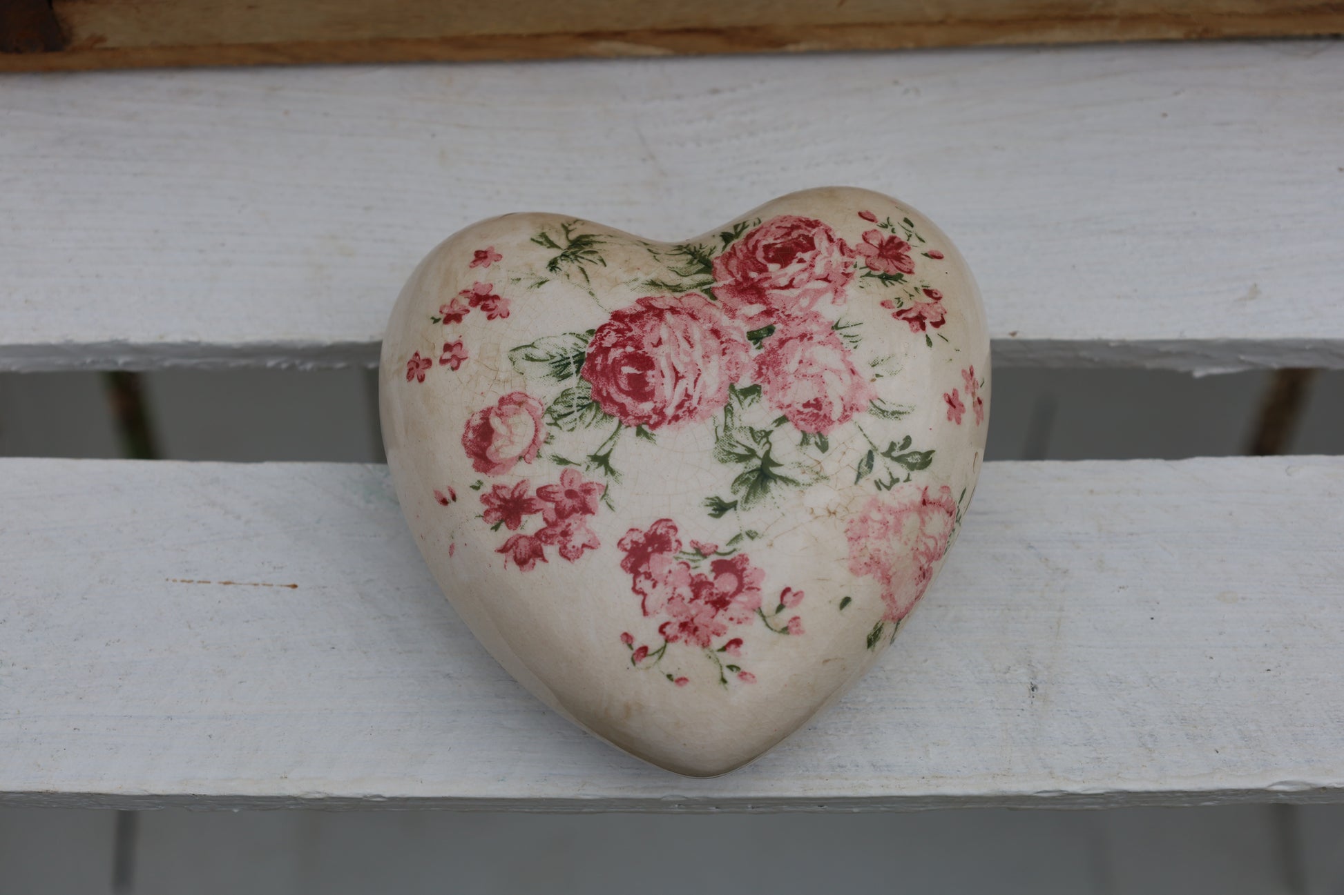 Keramik Herz Vintage Rosen Rosa - Clayre & Eef Deko Landhaus
