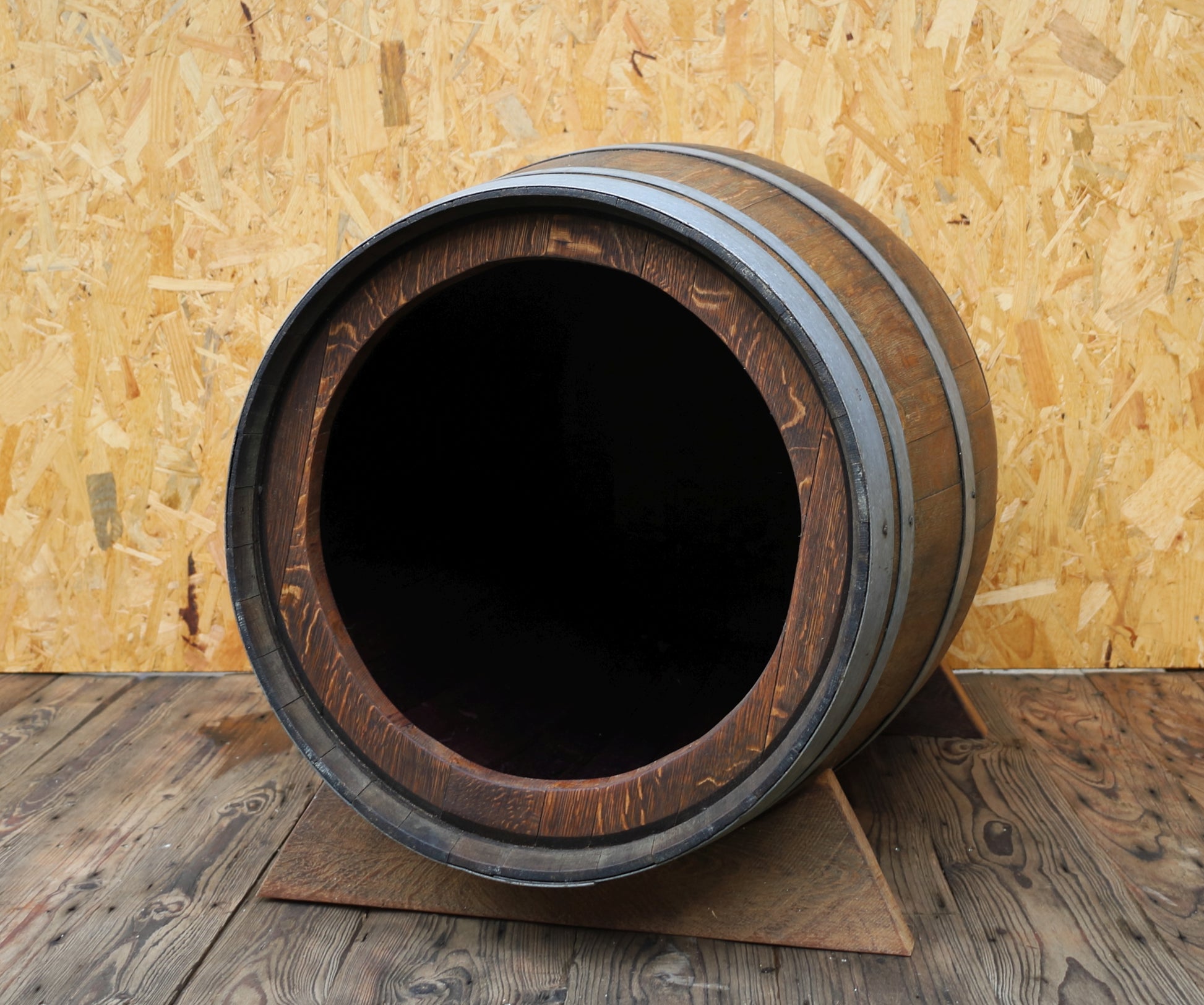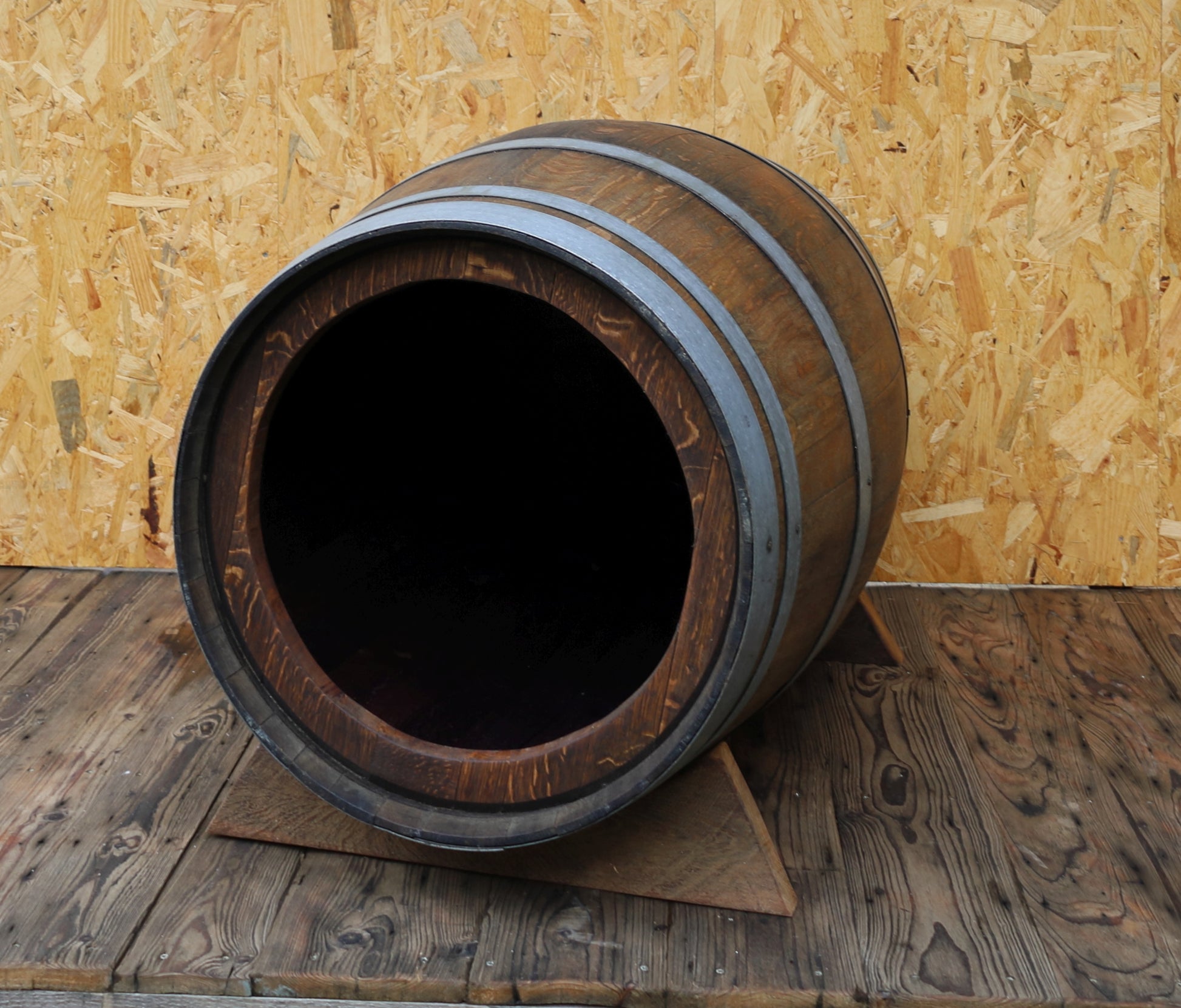 Hundehütte aus Eichenholz Weinfass - Upcycling Hundehaus Unikat