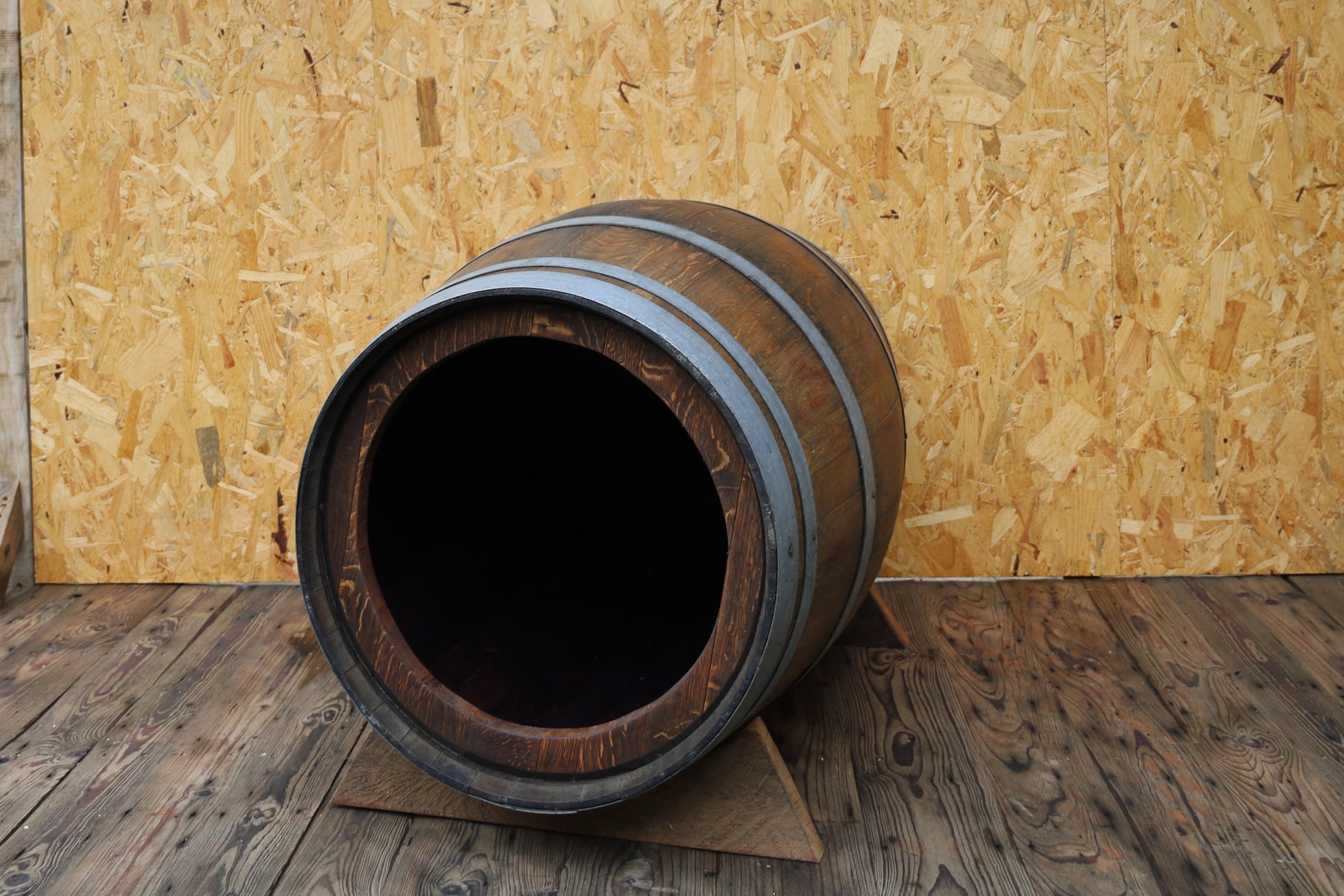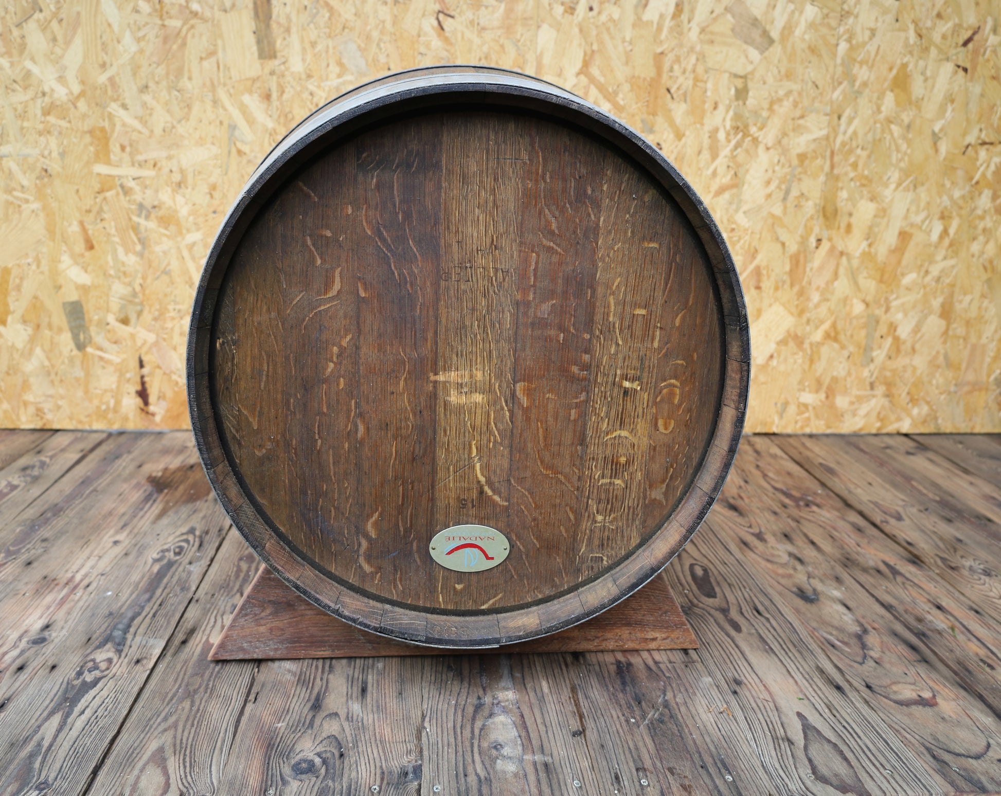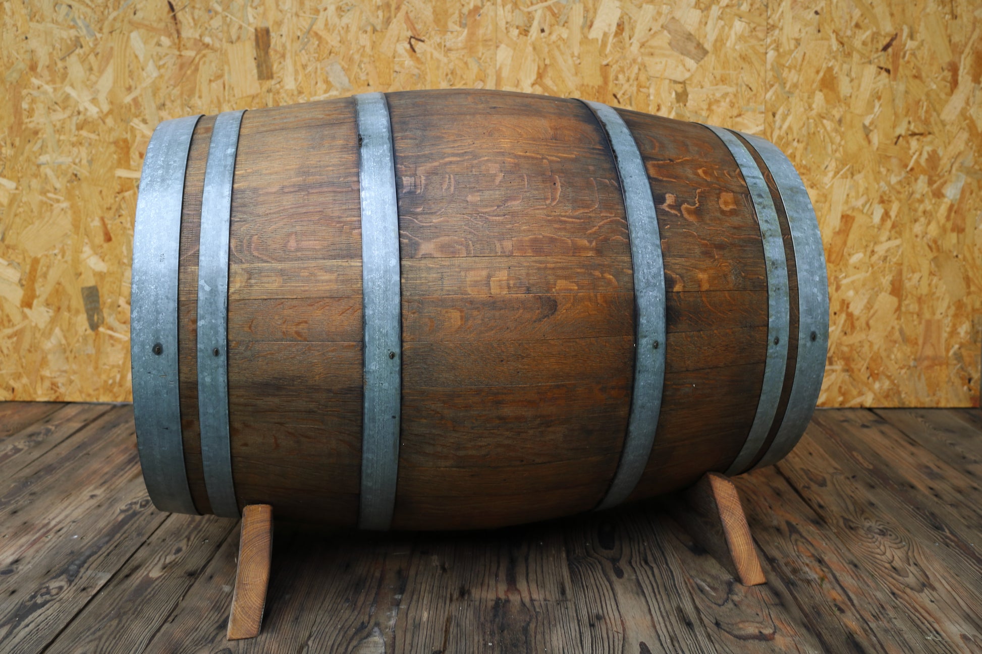 Jedes Fass ist ein Unikat mit unterschiedlicher Maserung und einzigartigen kleinen Gebrauchsspuren, wie Weinflecken oder minimalen Kratzern.
