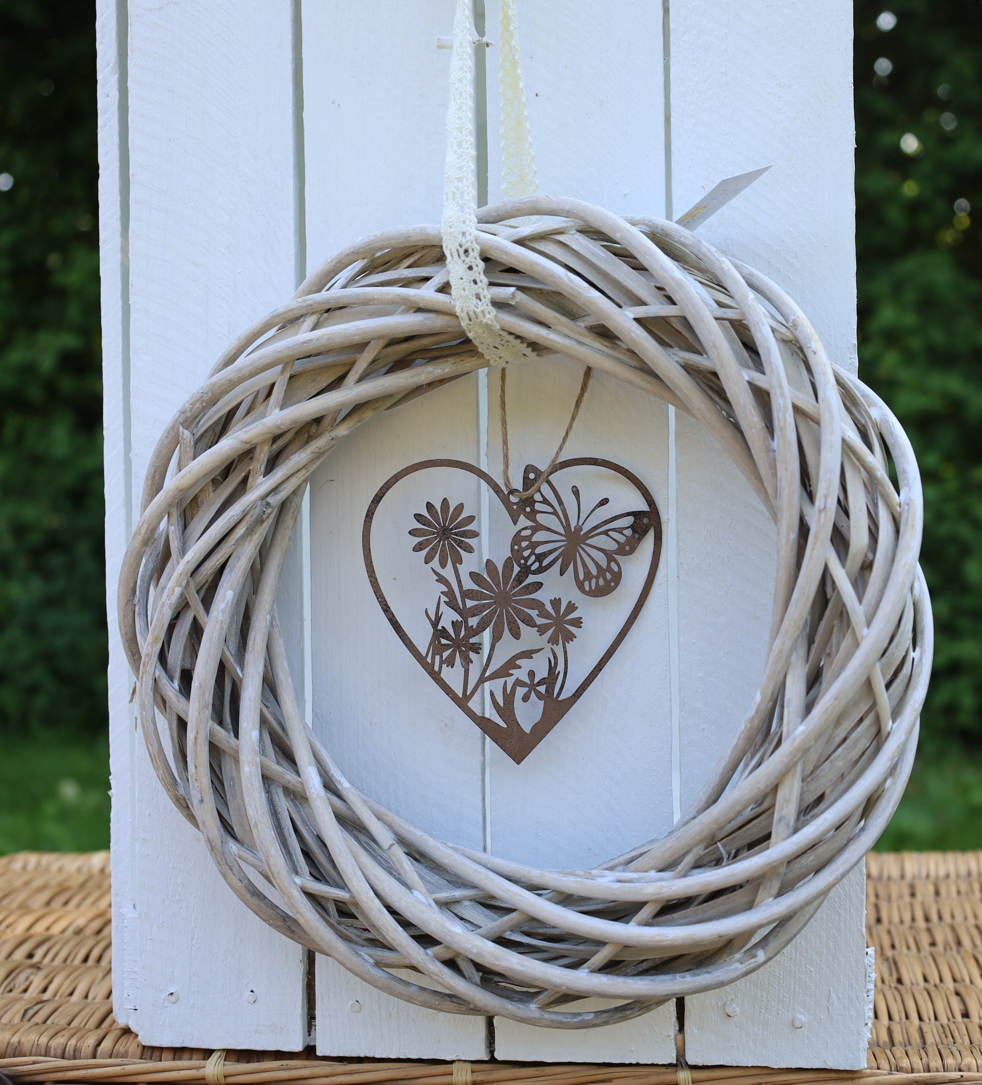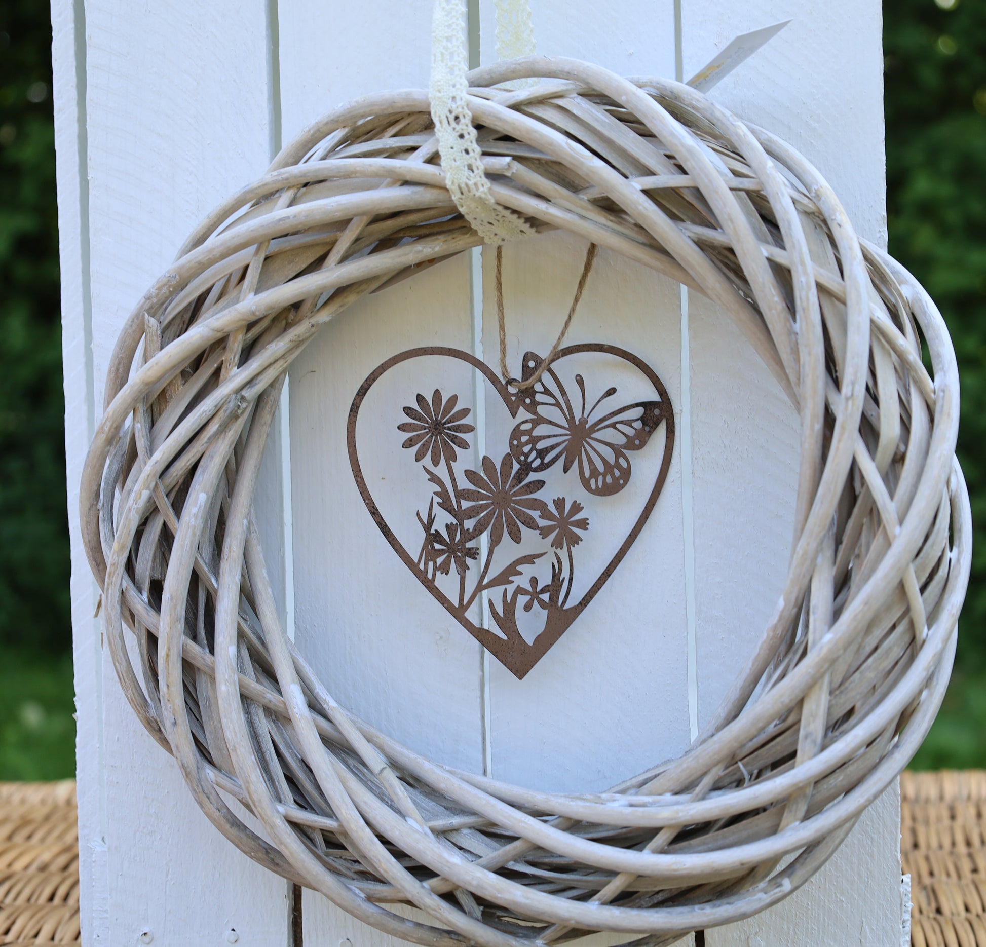 Herz-Anhänger Edelrost mit Schmetterling und Blumen - Deko Landhausstil
