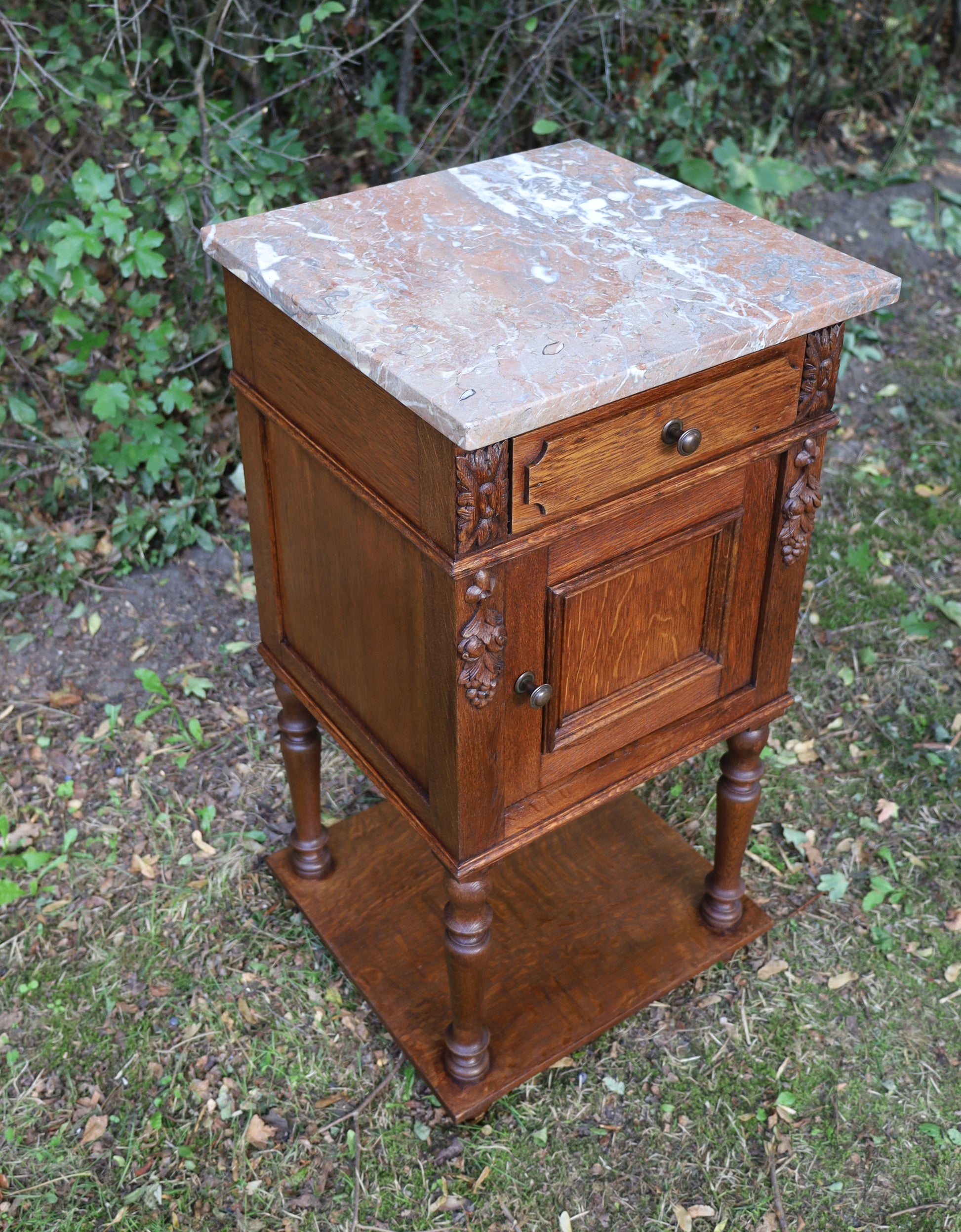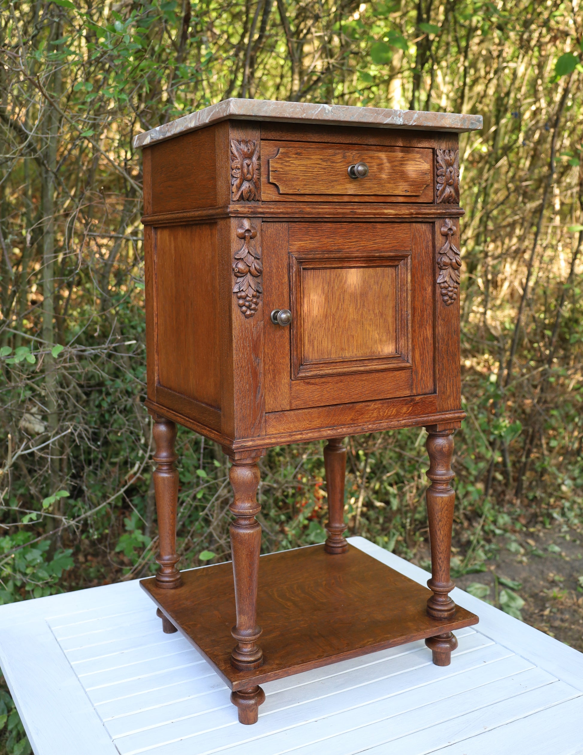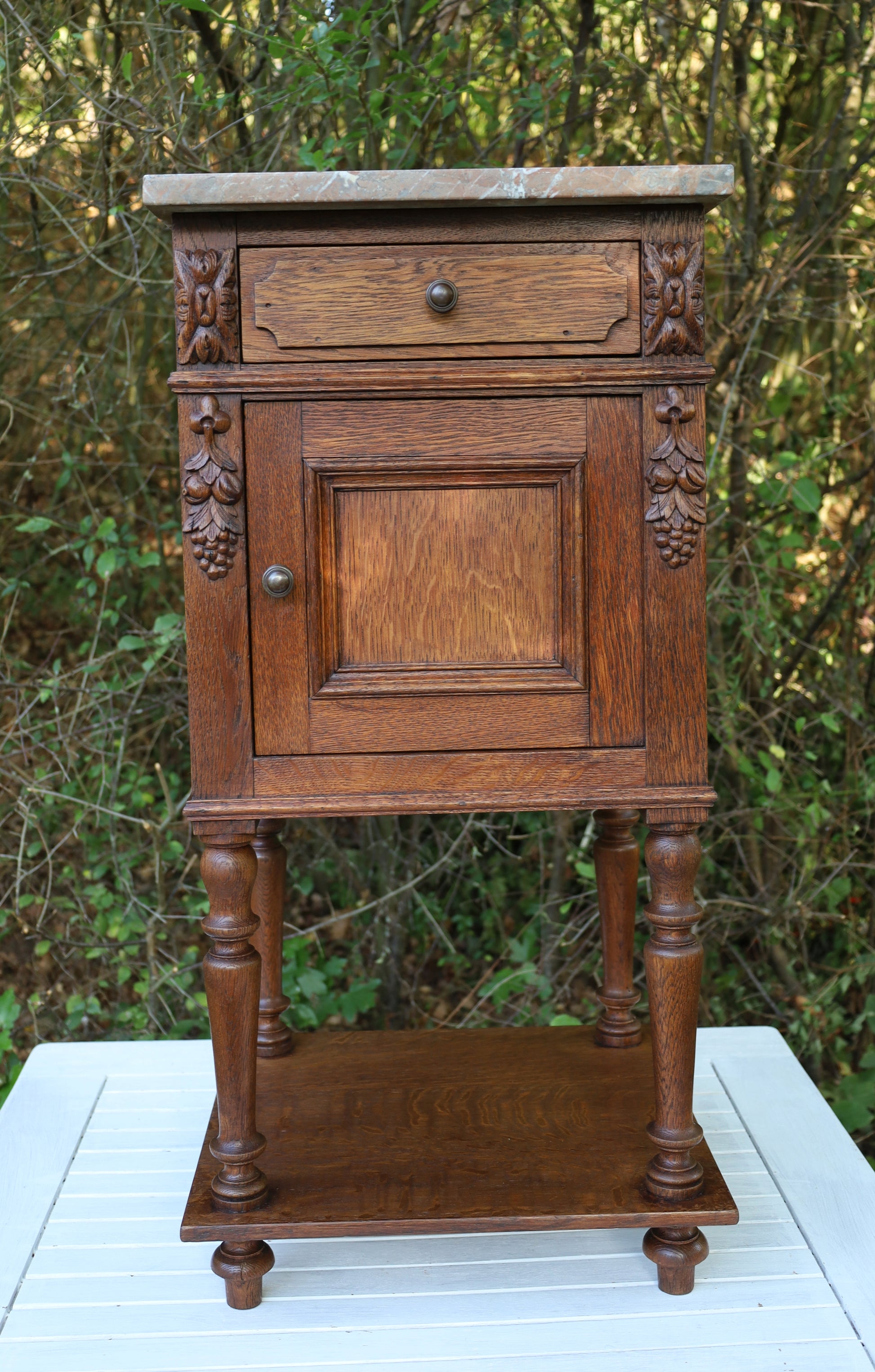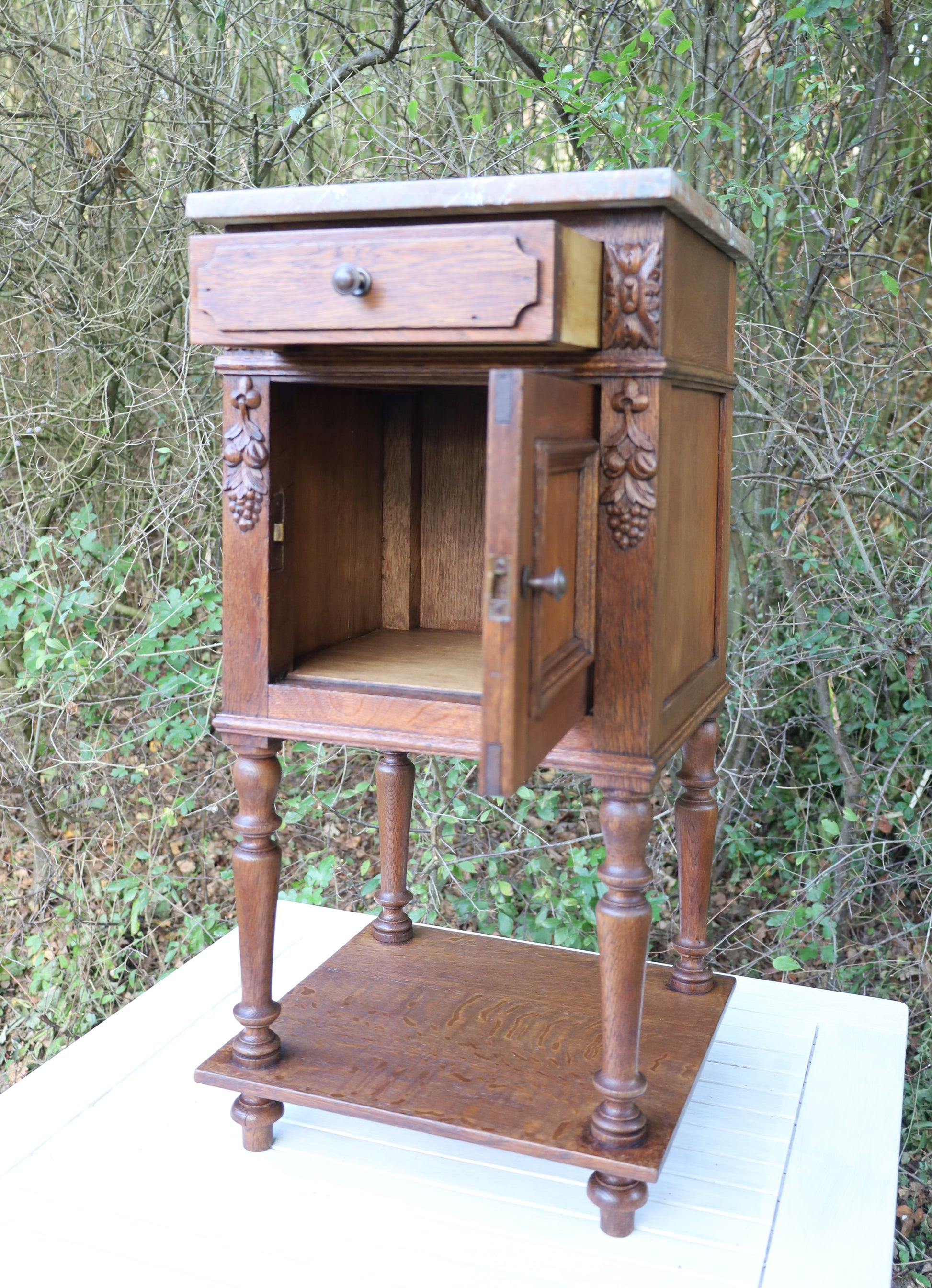 Antiker französischer Nachttisch Ende 19. Jh. - Eichenholz mit Marmorplatte