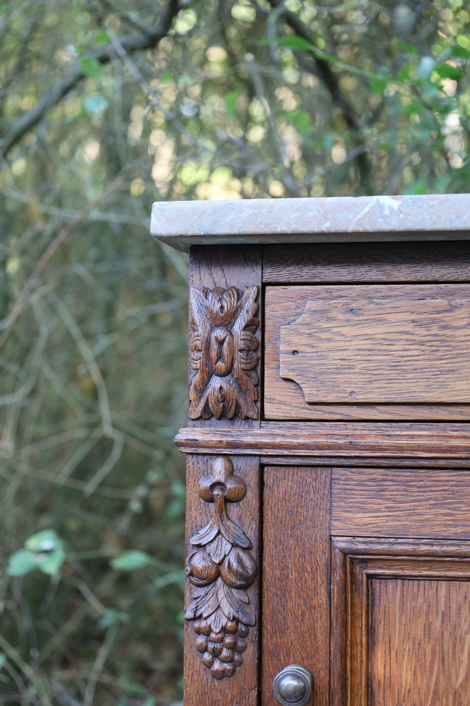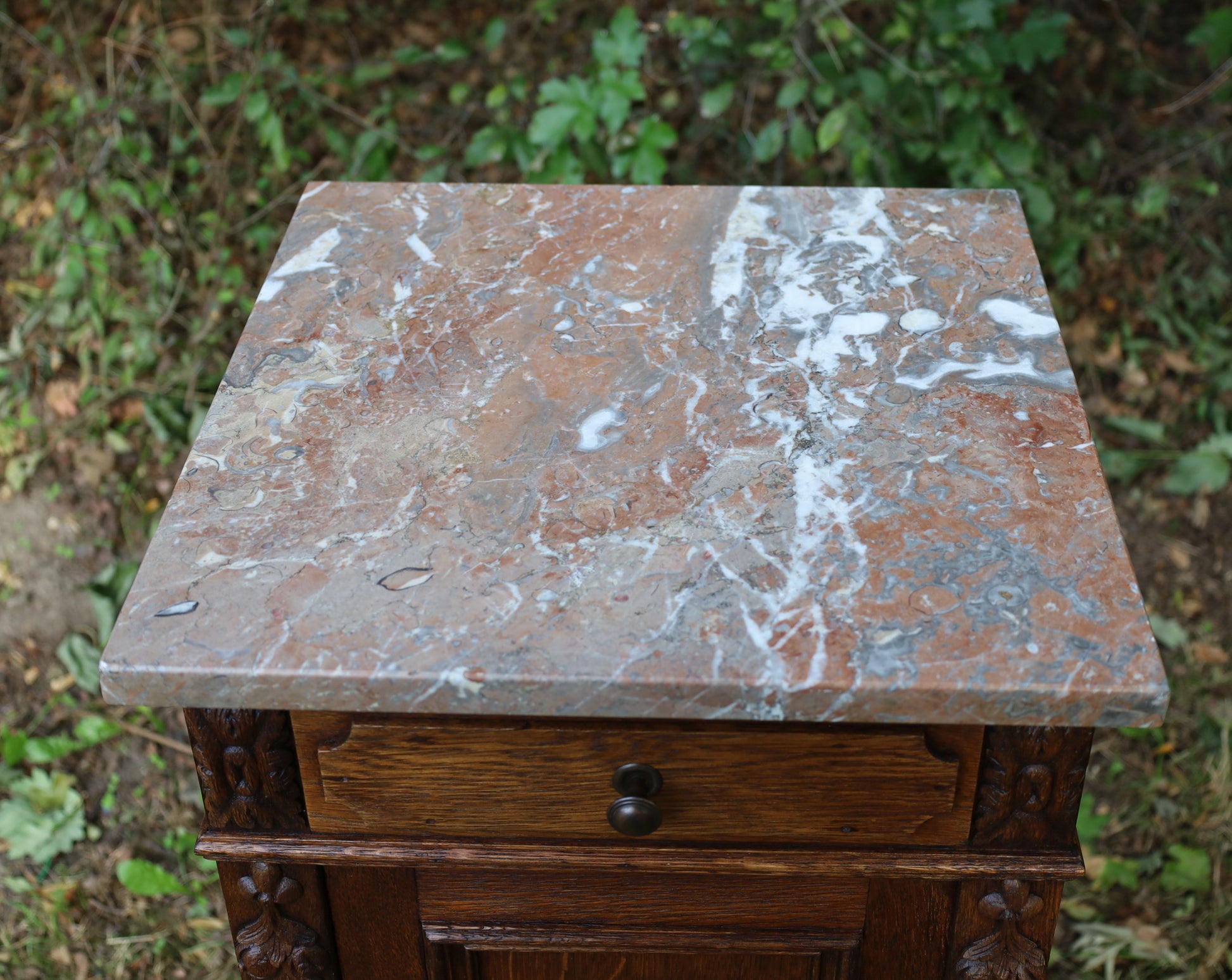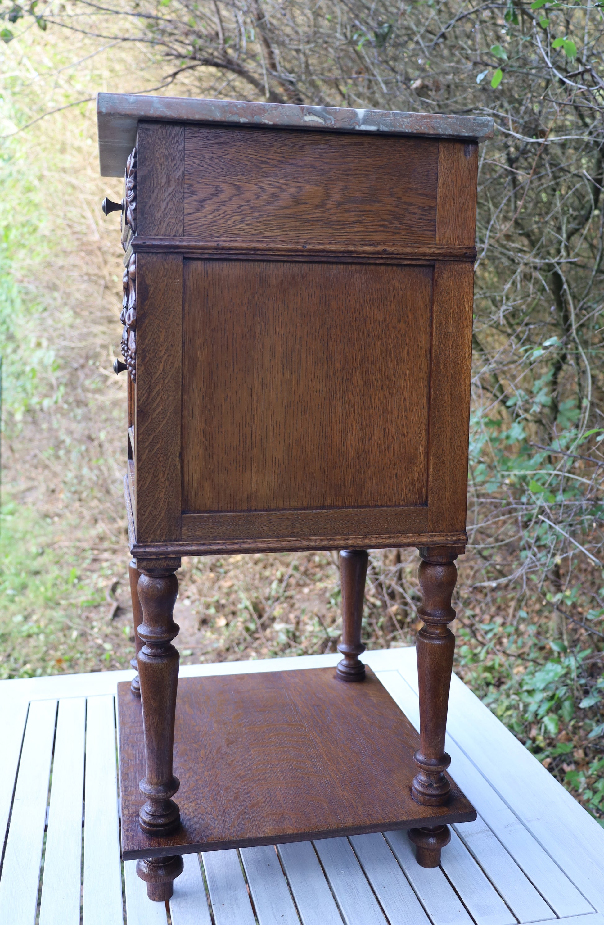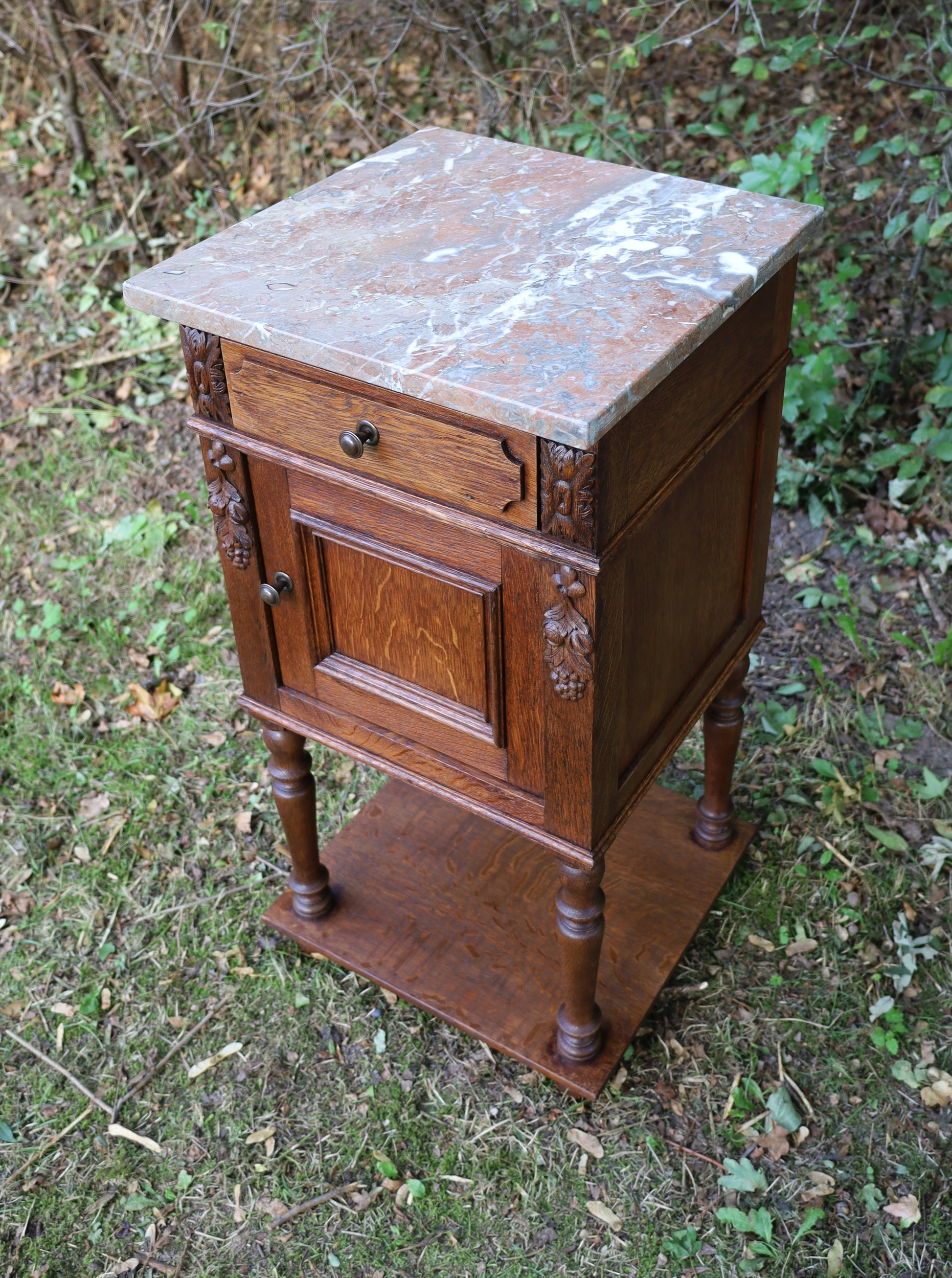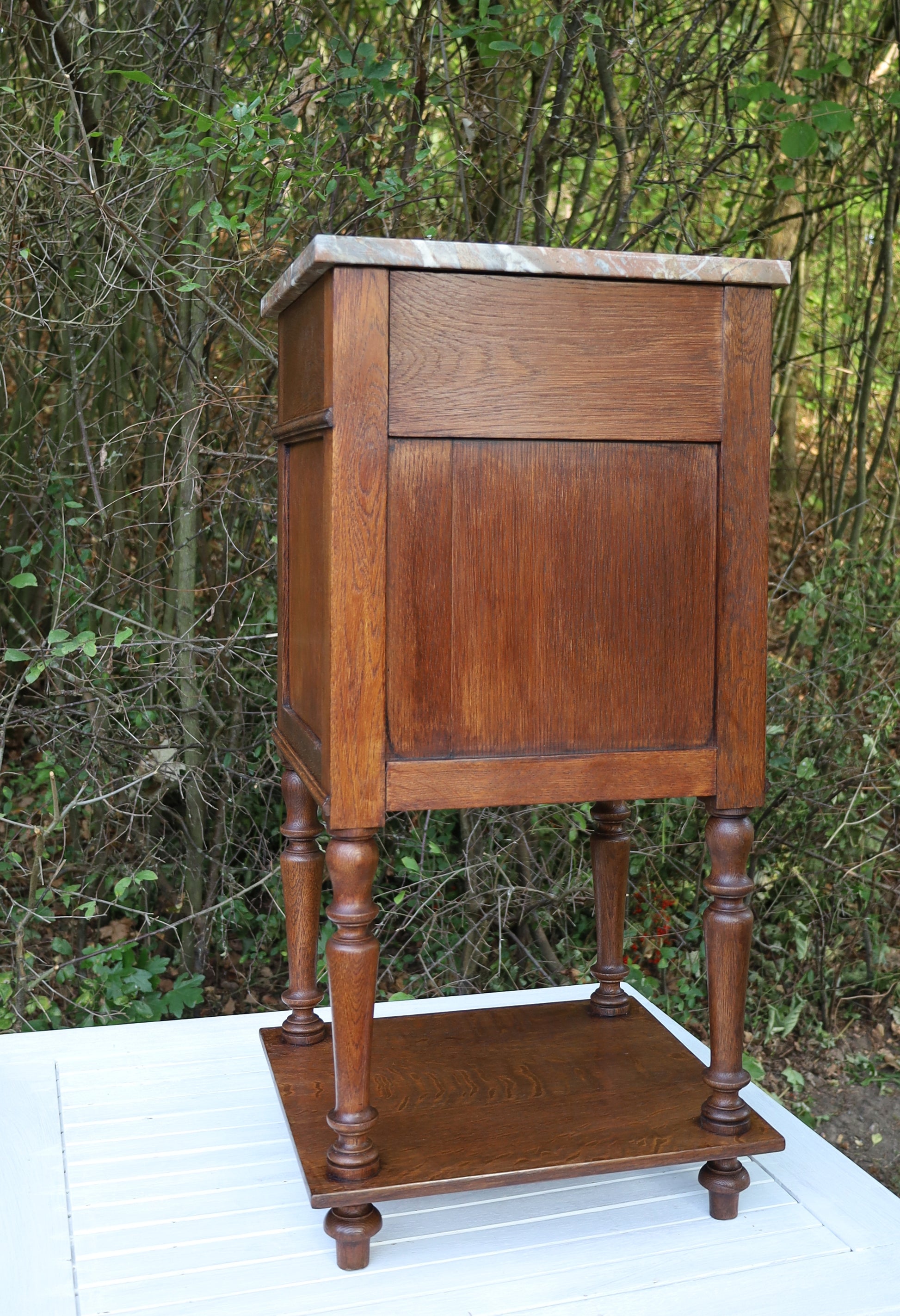 Antiker französischer Nachttisch Ende 19. Jh. - Eichenholz mit Marmorplatte