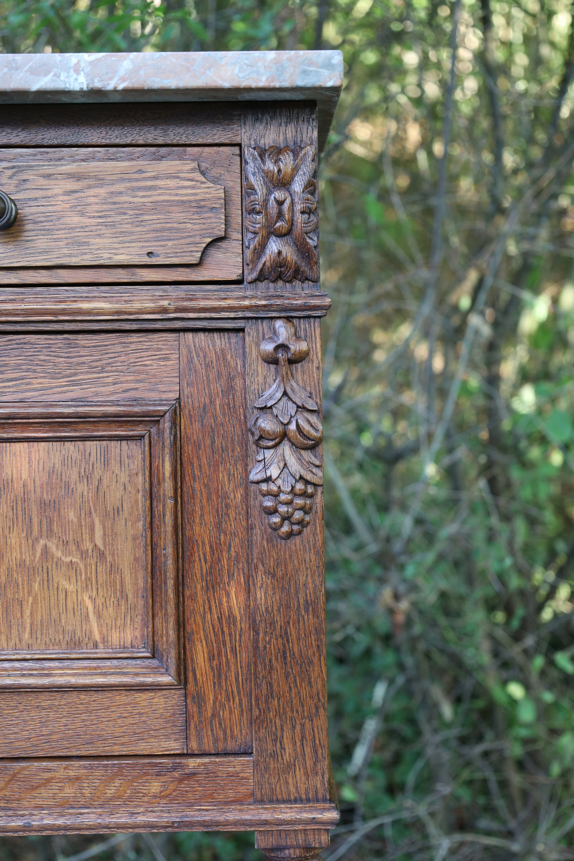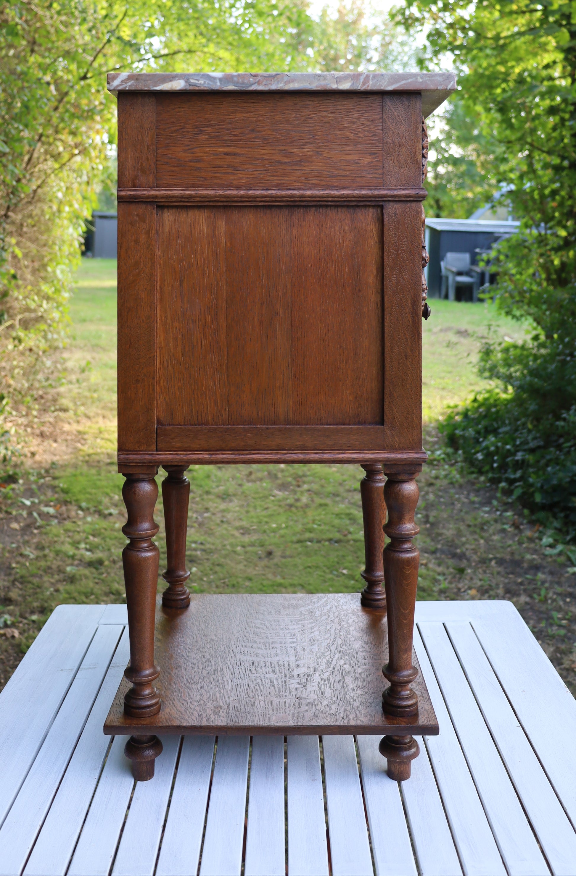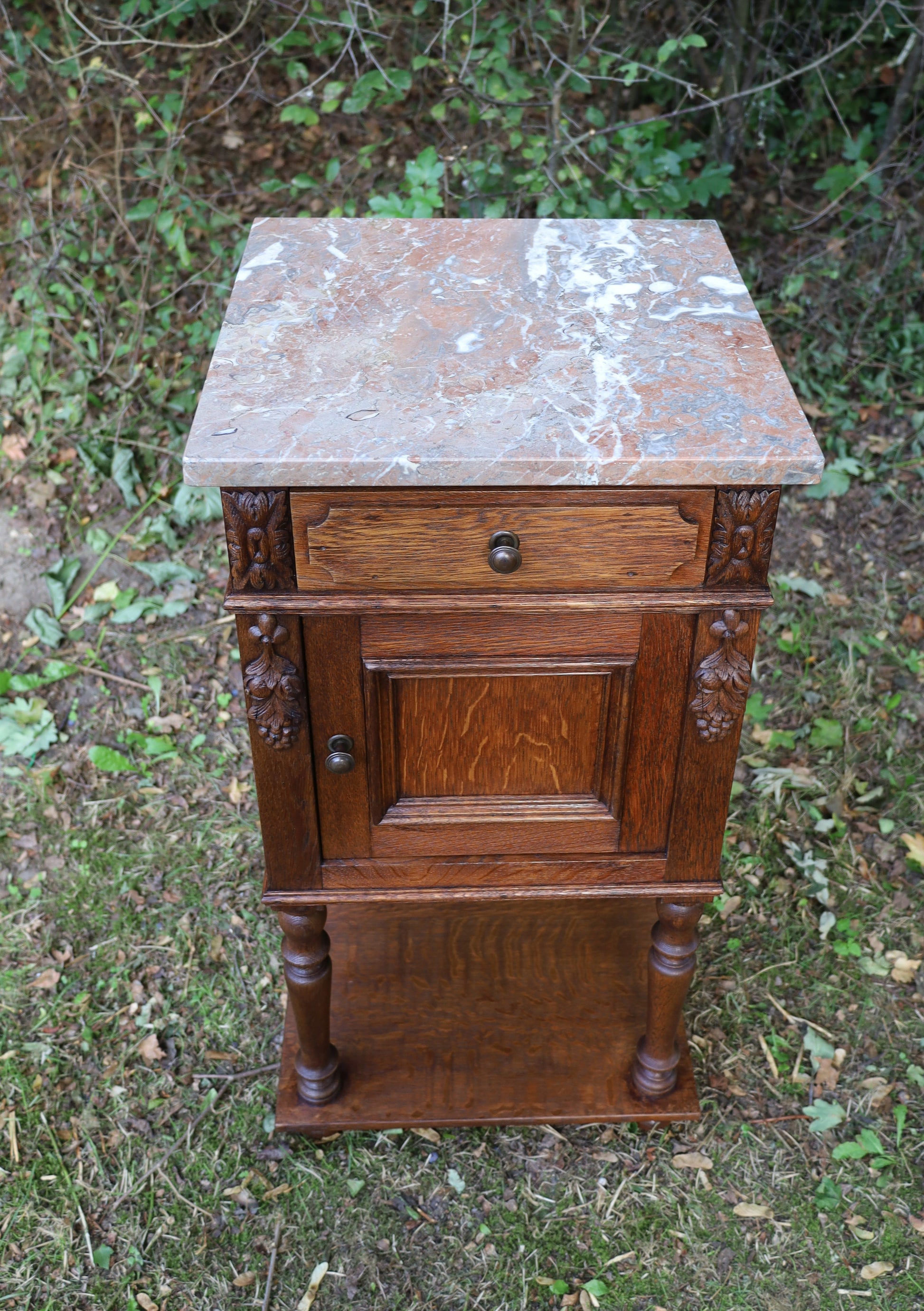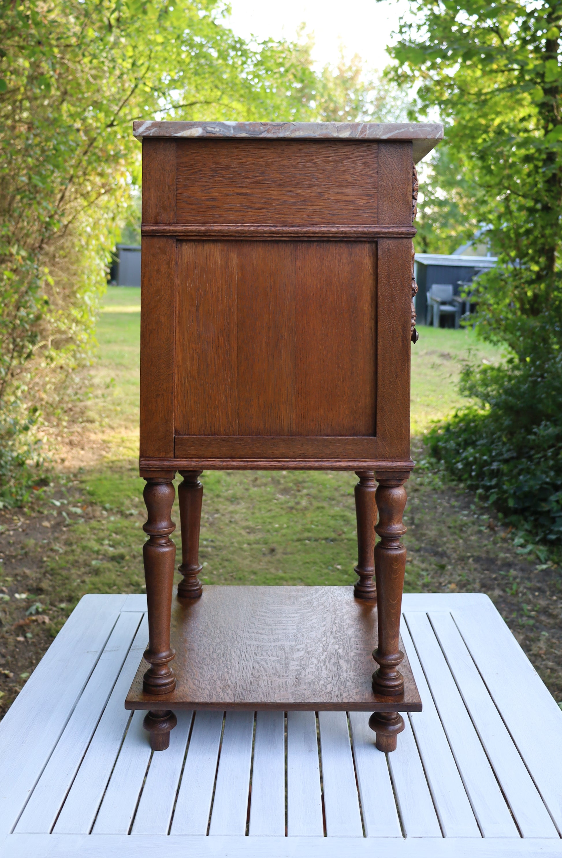 Antiker französischer Nachttisch Ende 19. Jh. - Eichenholz mit Marmorplatte