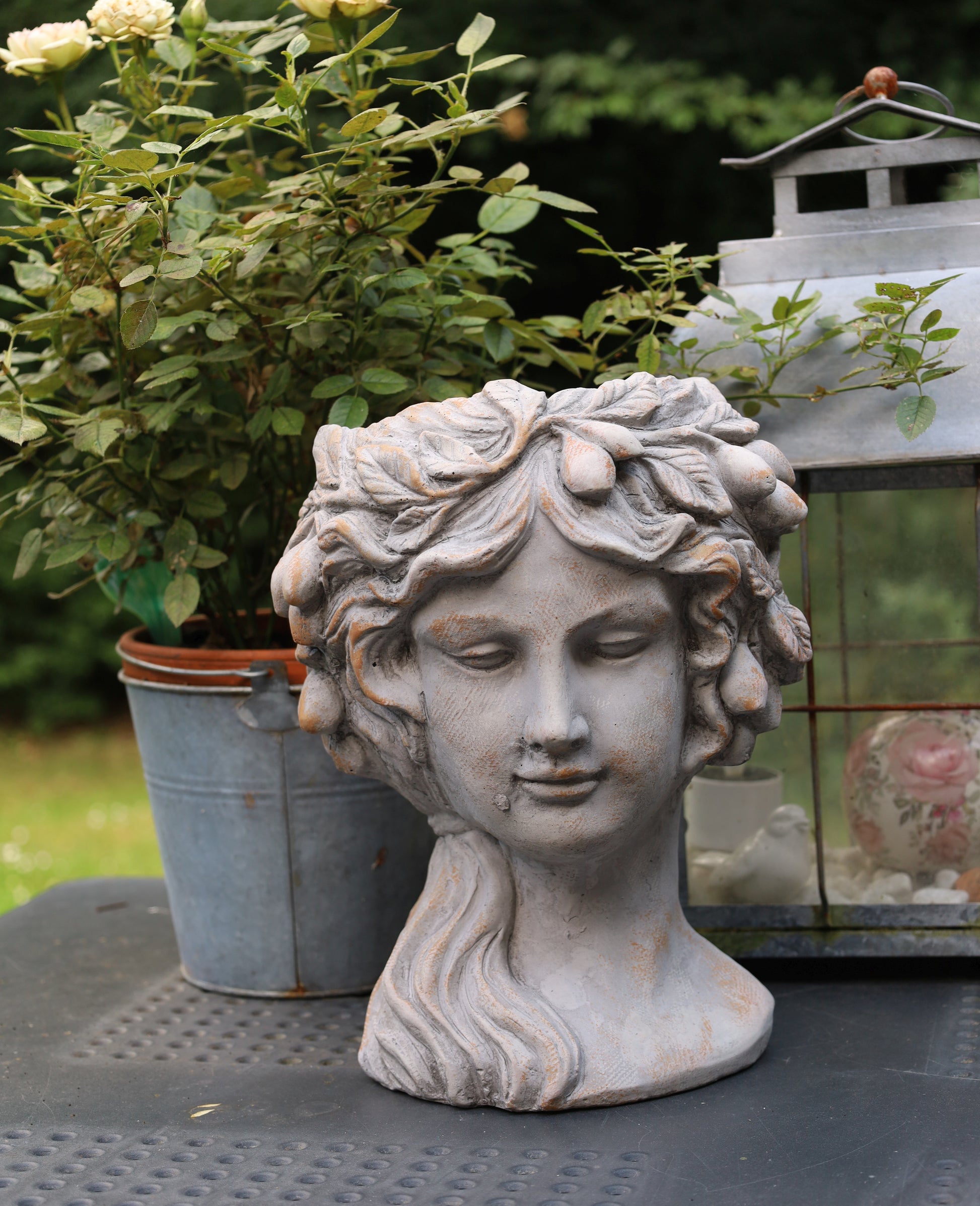 Pflanztopf Frauenbüste Steinguss 22x20x30 cm - Grau Shabby Chic Garten Deko