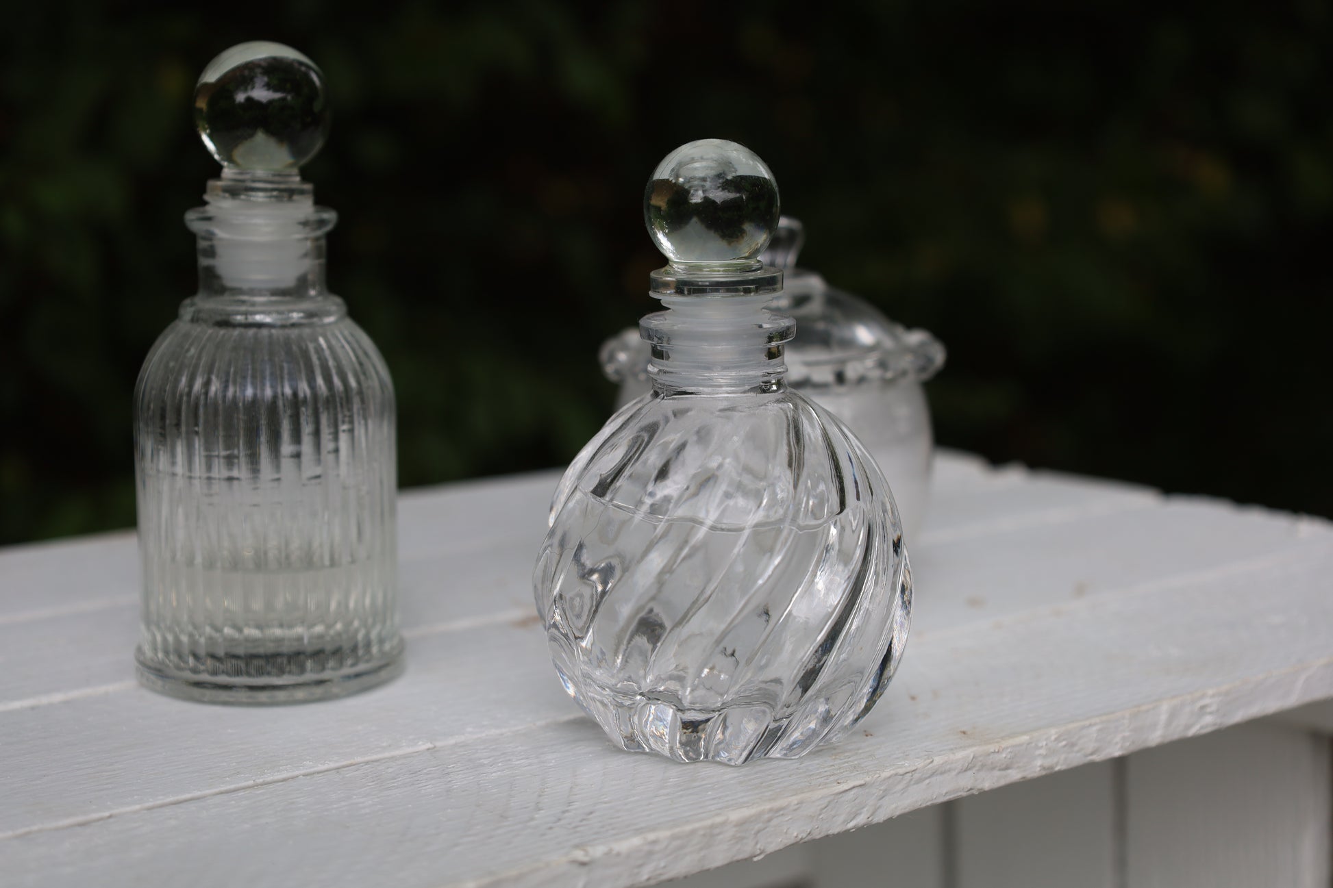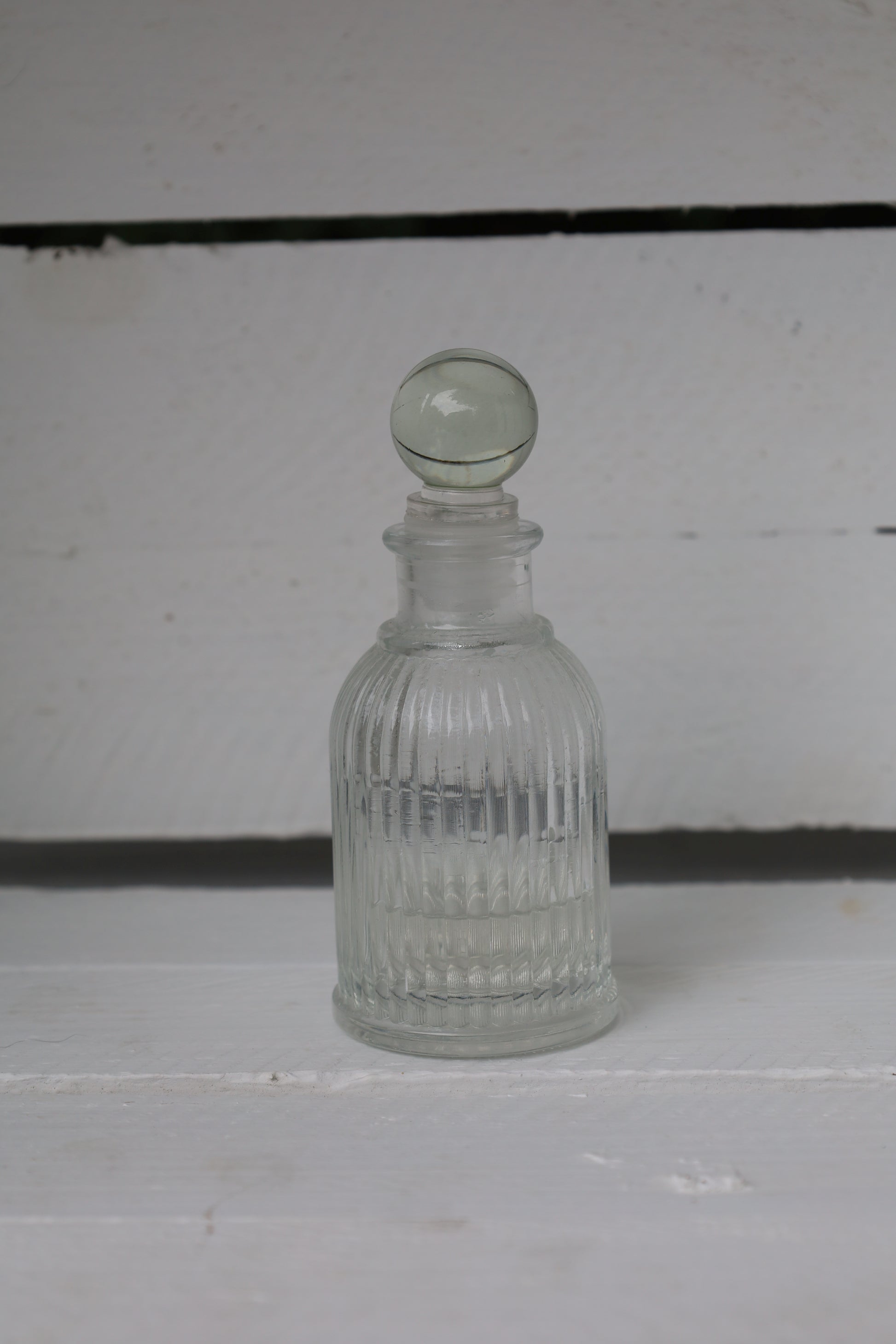 Diese zauberhafte kleine Flasche aus klarem Glas verleiht Ihrem Badezimmer eine romantische Note. Mit ihrem eleganten Verschlussstopfen schützt sie Ihre Lieblingsdüfte oder ätherischen Öle stilvoll und sorgt für ein liebevolles Ambiente. Ein dekoratives Accessoire, das Praktikabilität und Charme perfekt verbindet.