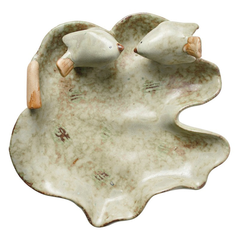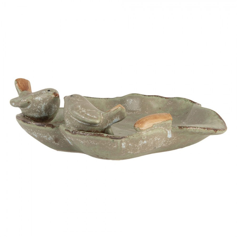 Keramik Schale Blattform mit Vögeln Grün - Clayre & Eef